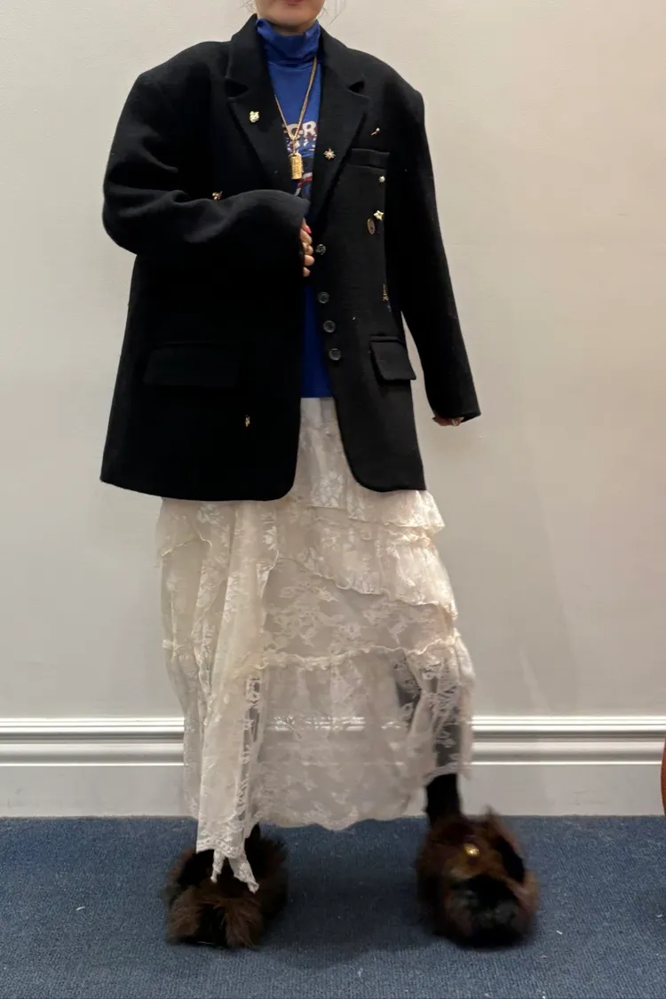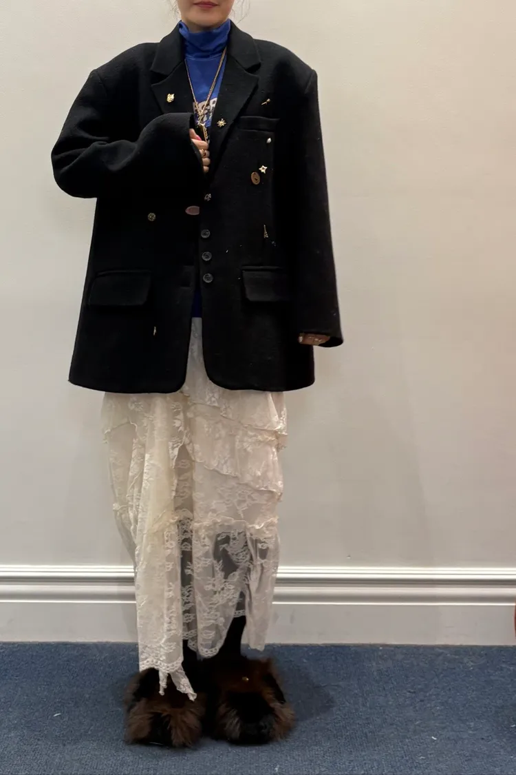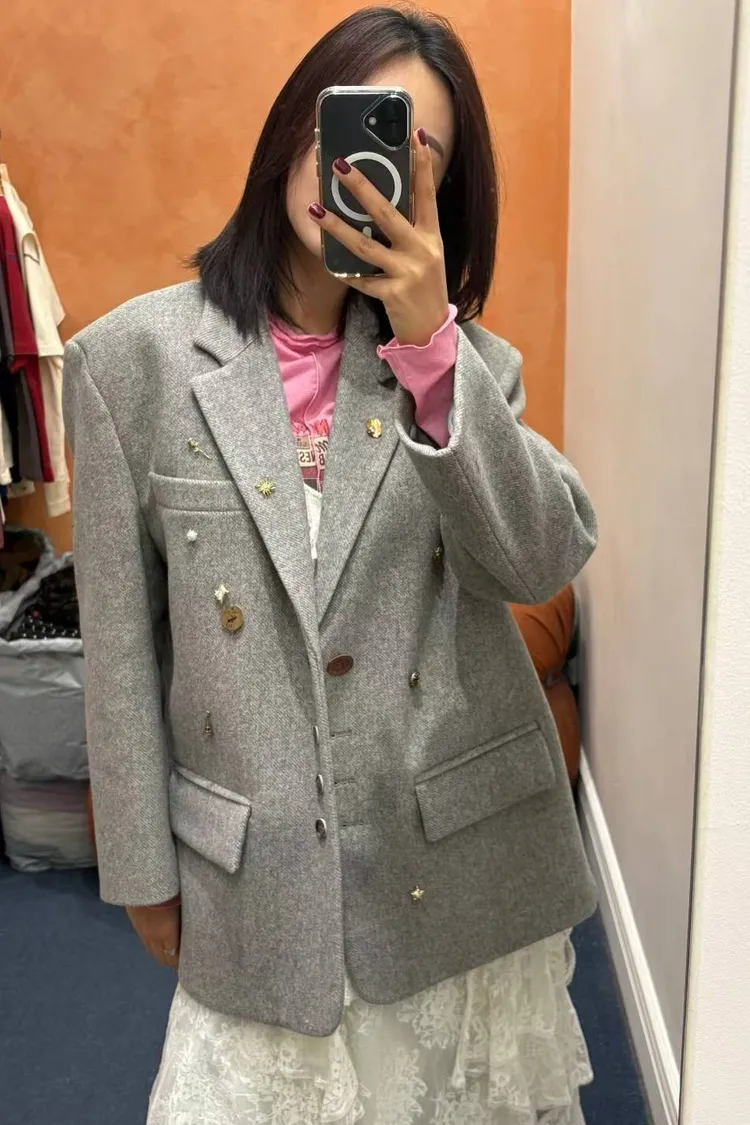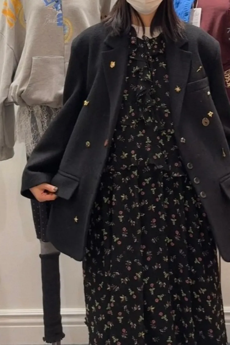外套上車縫著各種社長歐膩精選的金屬小吊飾