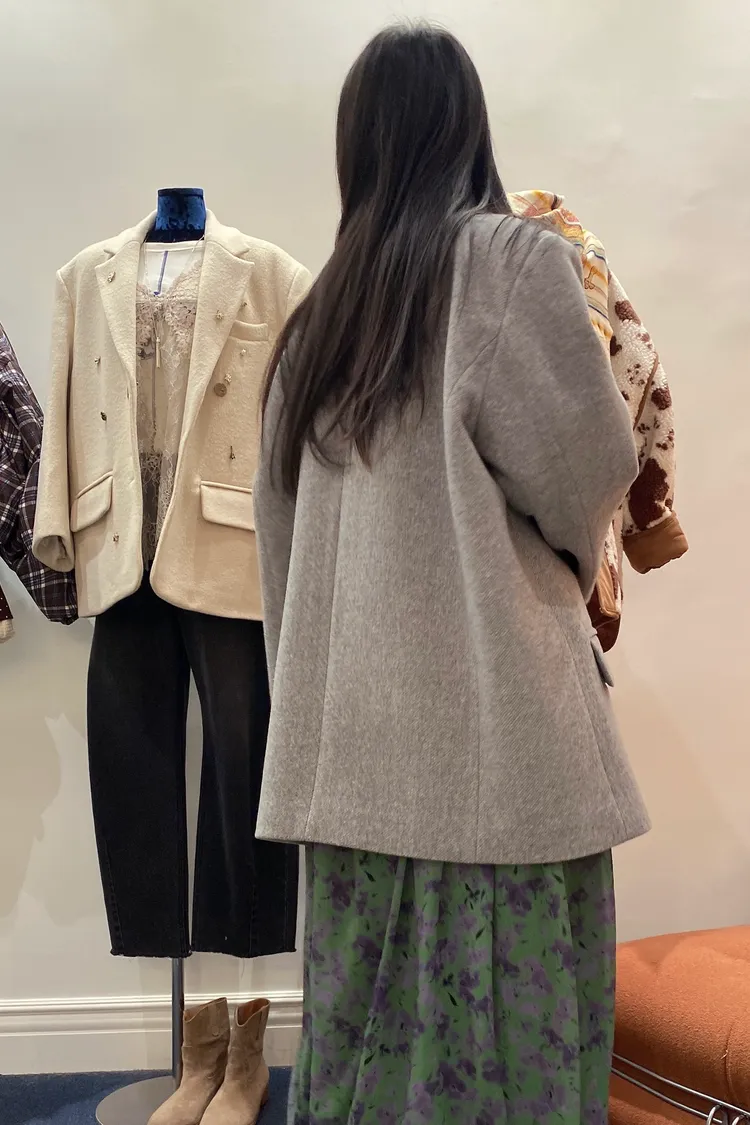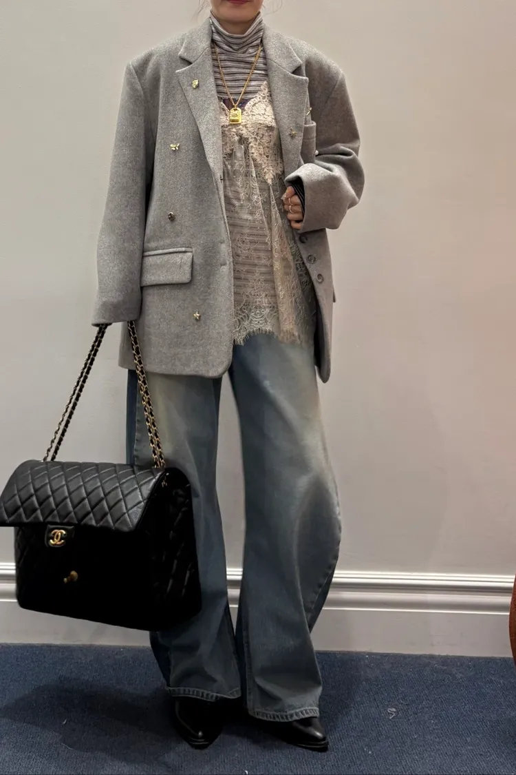 羊毛混紡材質,穿起來暖度剛好又有挺度