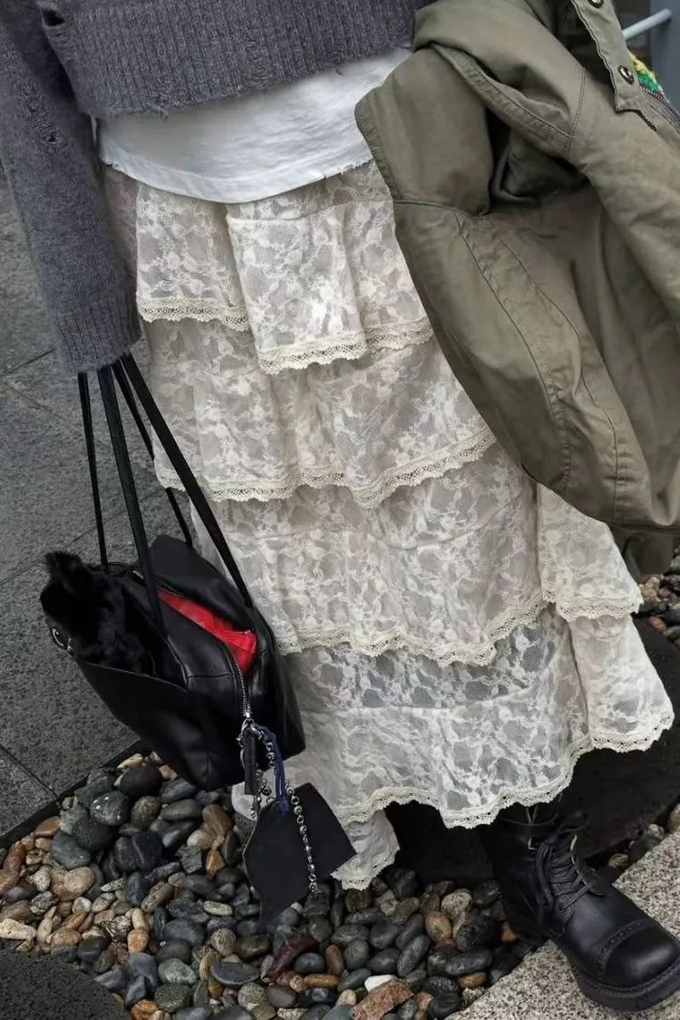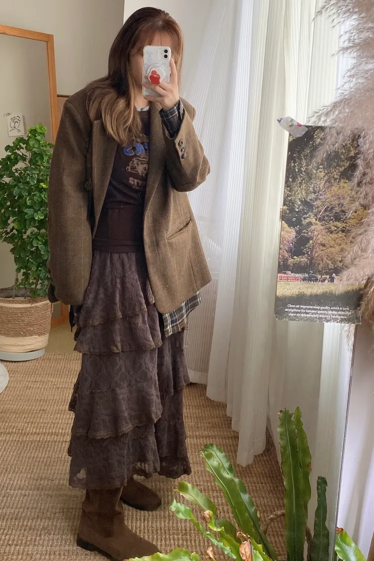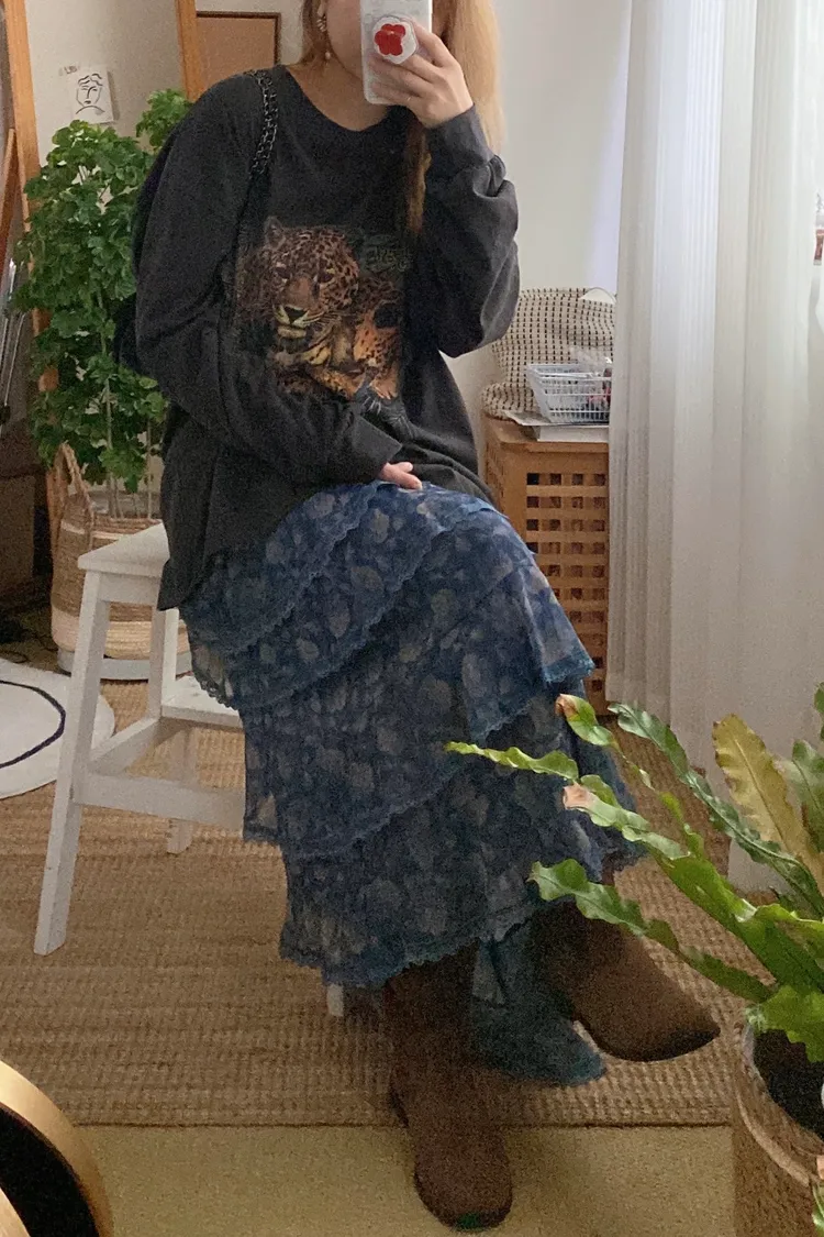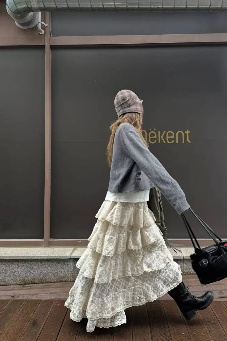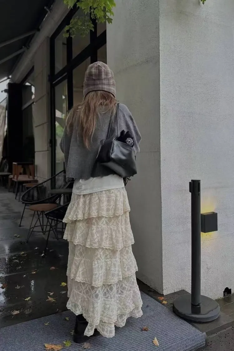夢幻又實穿的長裙來啦~ 相同版型,兩種面料 米白和棕是有磨毛的蕾絲面料,氣質溫柔藍印花是雪紡面料,帶點俏皮清新 腰部整圈彈性鬆緊,裙襬拼接緞帶蕾絲不對稱蛋糕層疊一走路就超飄逸 S-XL妞都可以穿不管日常穿搭還是約會小心機,一件搞定 💕