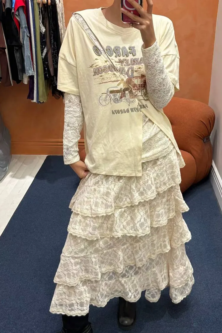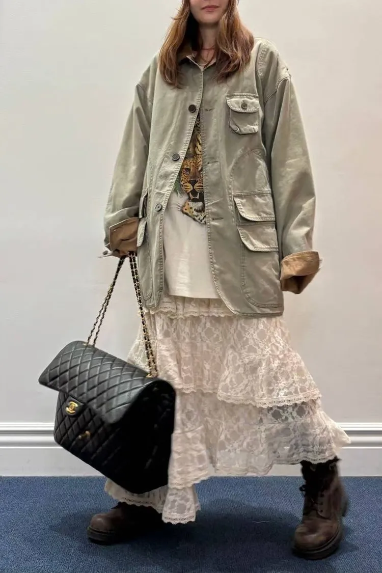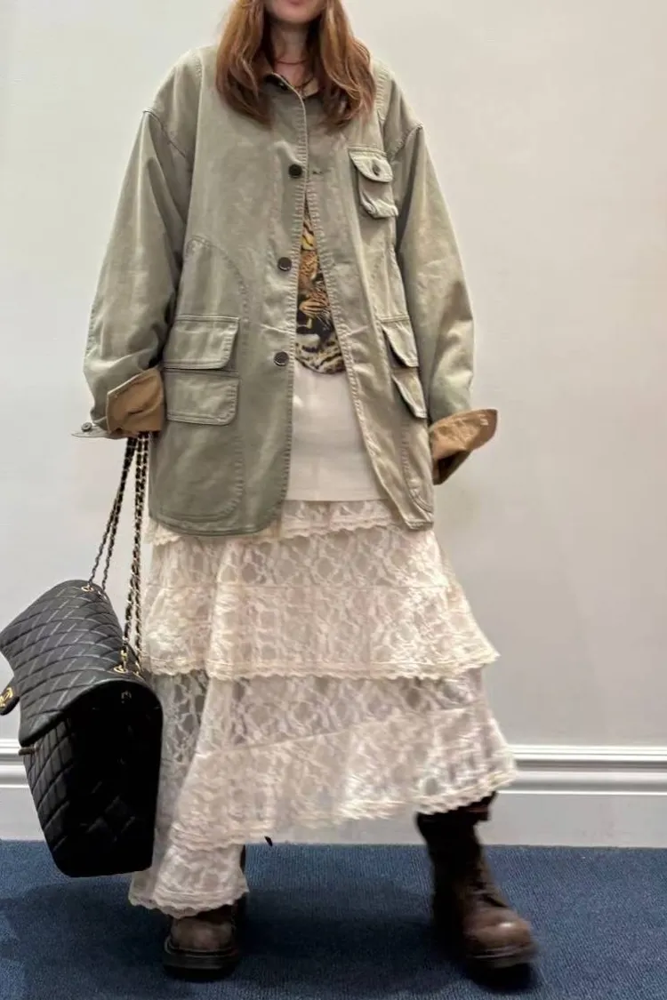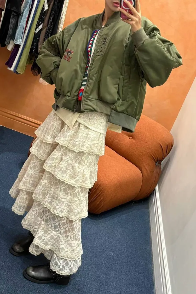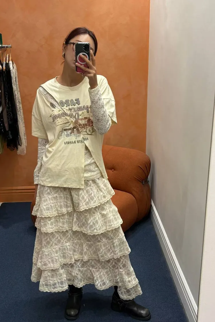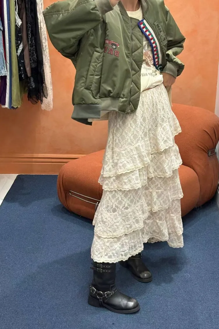 夢幻又實穿的長裙來啦~ 相同版型,兩種面料 米白和棕是有磨毛的蕾絲面料,氣質溫柔藍印花是雪紡面料,帶點俏皮清新 腰部整圈彈性鬆緊,裙襬拼接緞帶蕾絲不對稱蛋糕層疊一走路就超飄逸 S-XL妞都可以穿不管日常穿搭還是約會小心機,一件搞定 💕