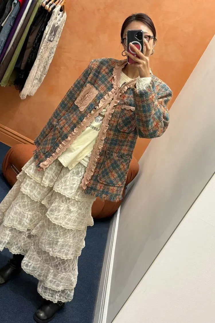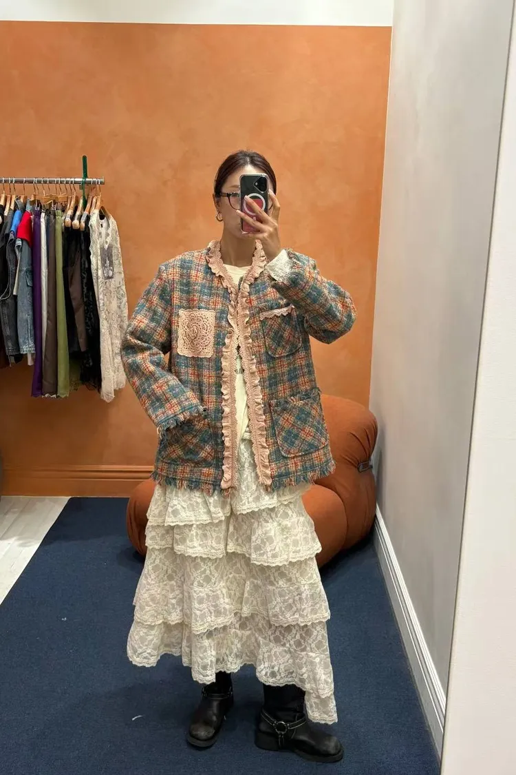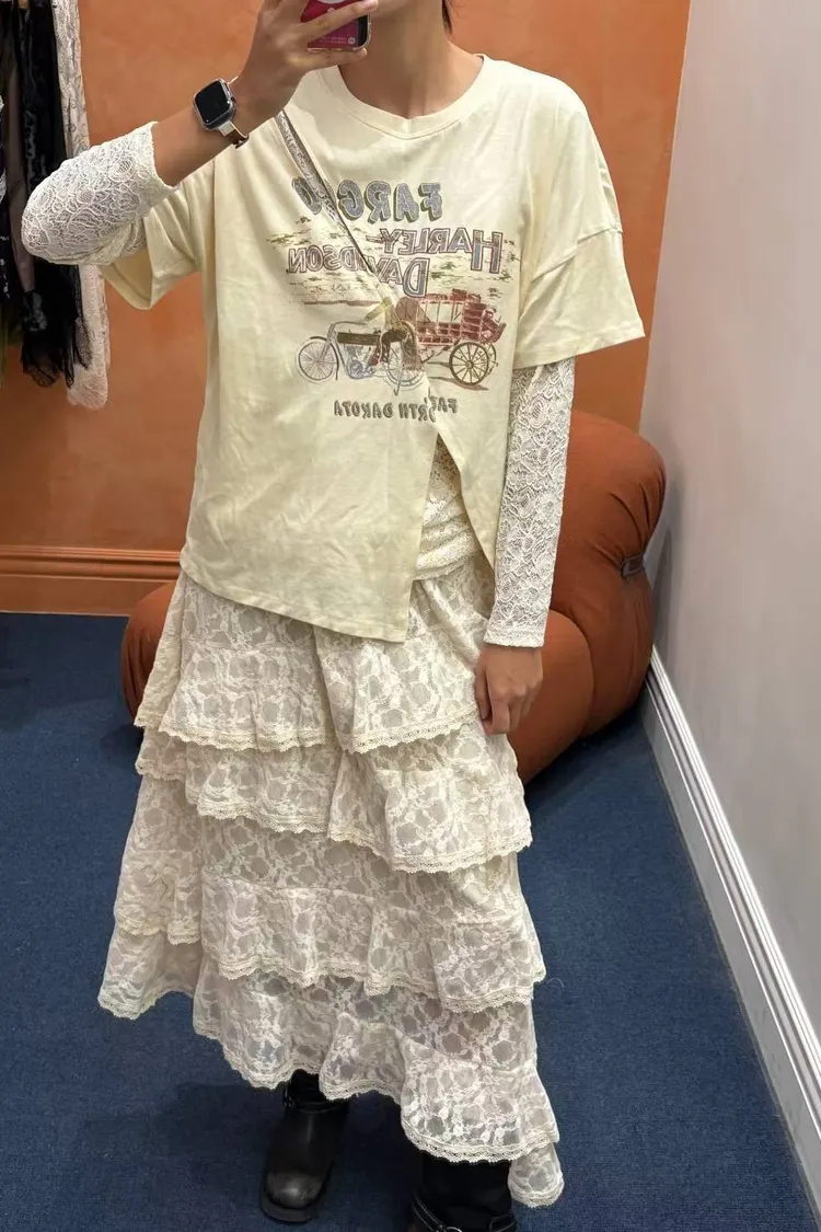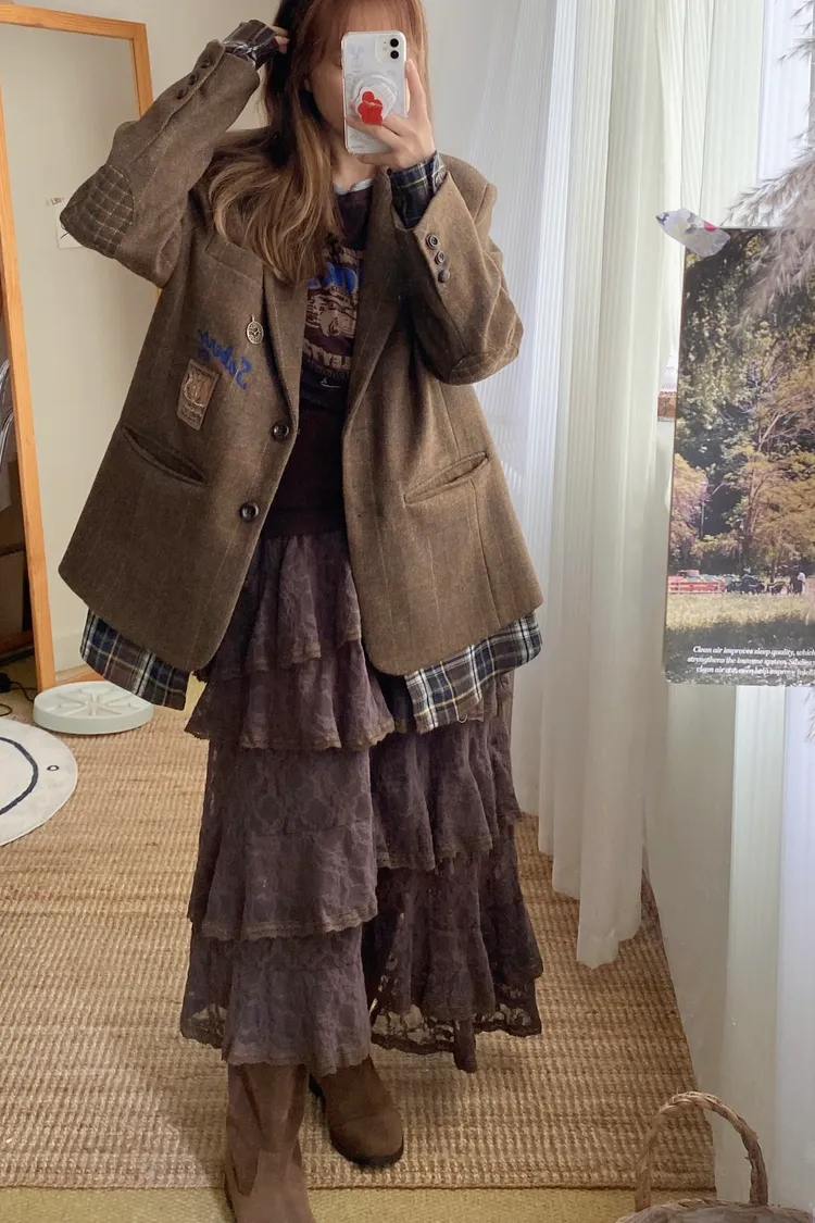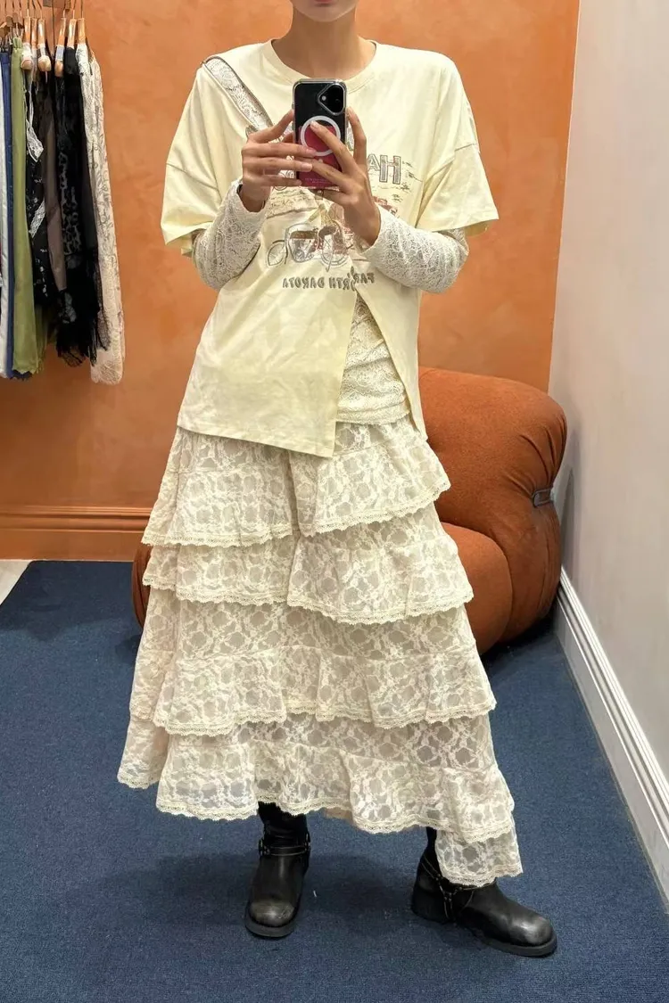 夢幻又實穿的長裙來啦~ 相同版型,兩種面料 米白和棕是有磨毛的蕾絲面料,氣質溫柔藍印花是雪紡面料,帶點俏皮清新 腰部整圈彈性鬆緊,裙襬拼接緞帶蕾絲不對稱蛋糕層疊一走路就超飄逸 S-XL妞都可以穿不管日常穿搭還是約會小心機,一件搞定 💕