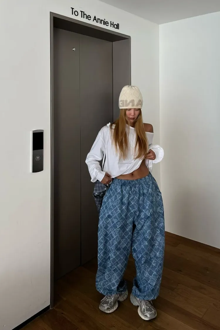 腰部整圈彈性鬆緊,S-XL妞都可以穿,隨性中透出不羈時髦感