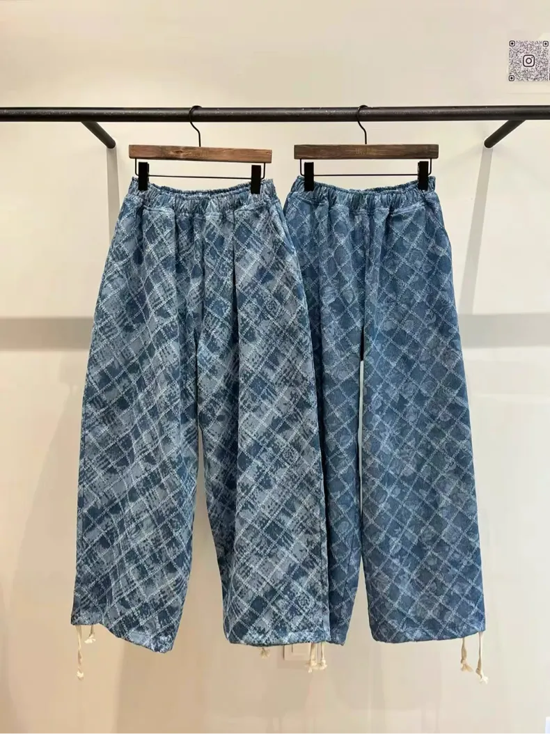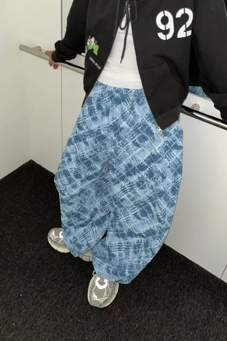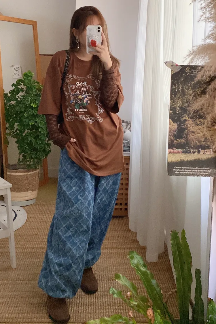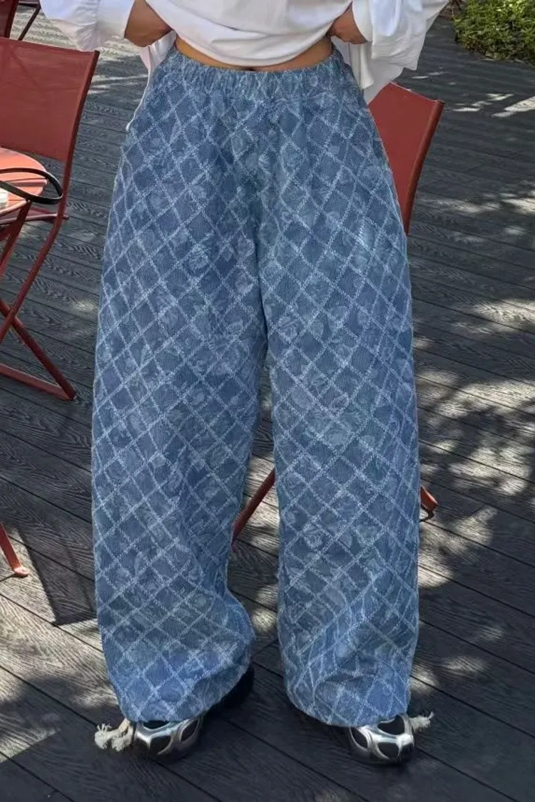 OTB12塗鴉格調玫瑰菱格牛仔休閒褲