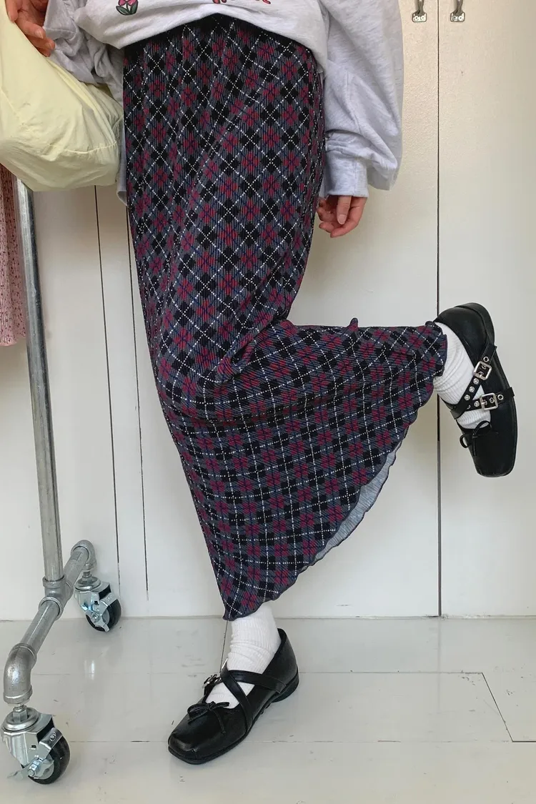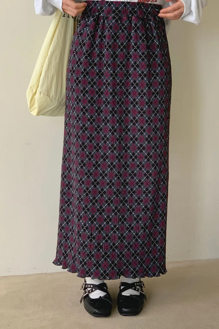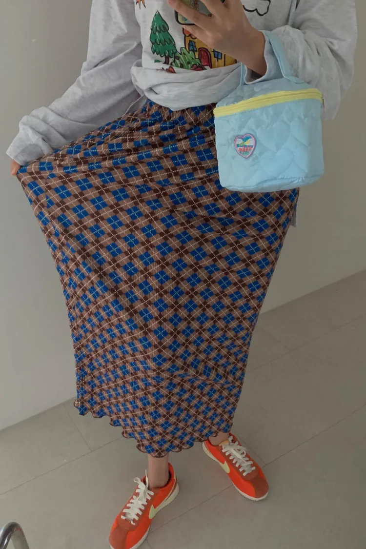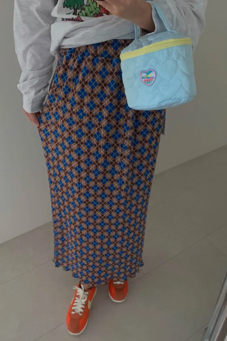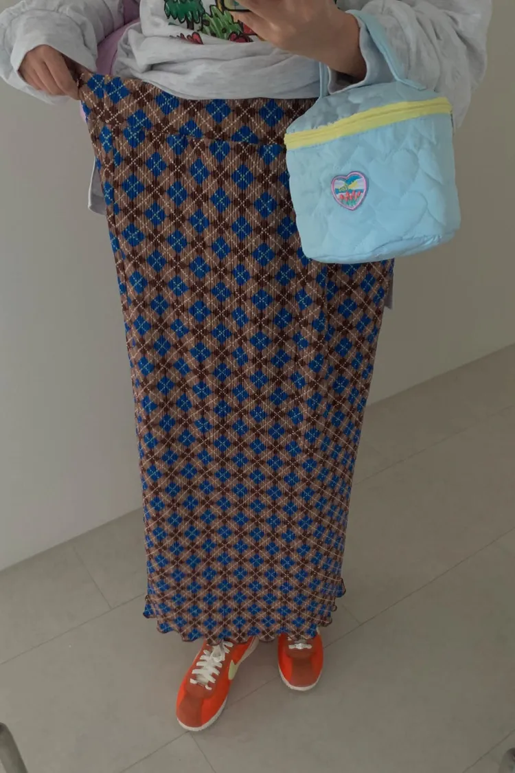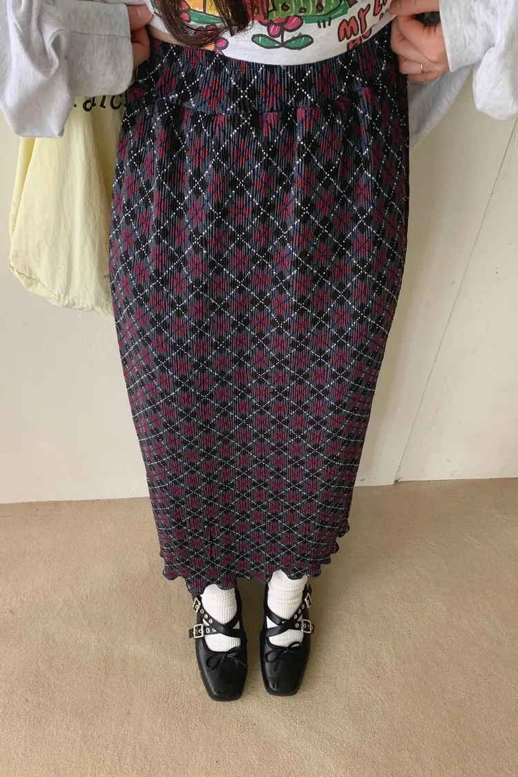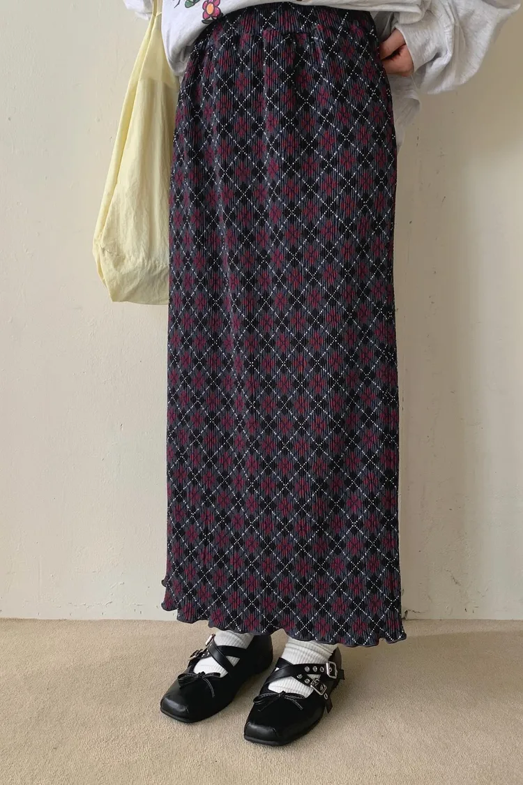 復古撞色菱格紋充滿文藝感,一年四季都能穿 彈力很大的聚脂纖維面料穿起來舒適自在 束條壓折設計增添立體層次感 裙擺捲捲邊更添俏皮精緻感 腰部整圈彈性鬆緊,S-XL妞都可以穿 直筒版型,非常藏肉顯瘦 很適合秋冬搭配長版毛衣大學T是秋冬甜酷學院風必備單品