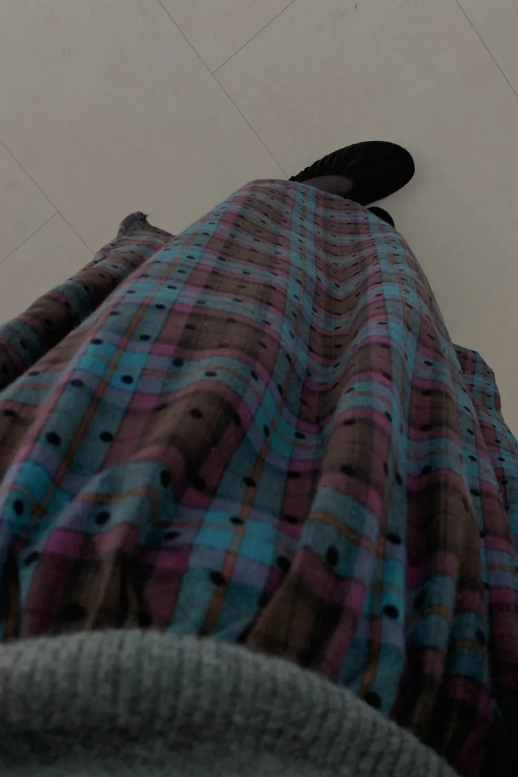 帶有植絨點點的格紋棉料材質細膩柔軟,不是厚款