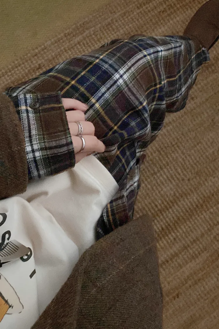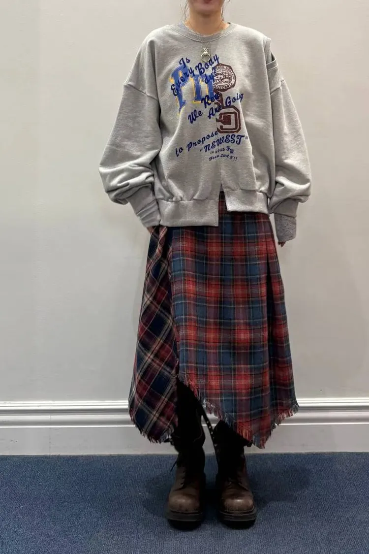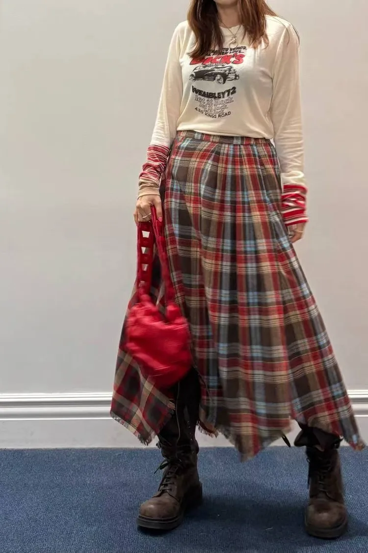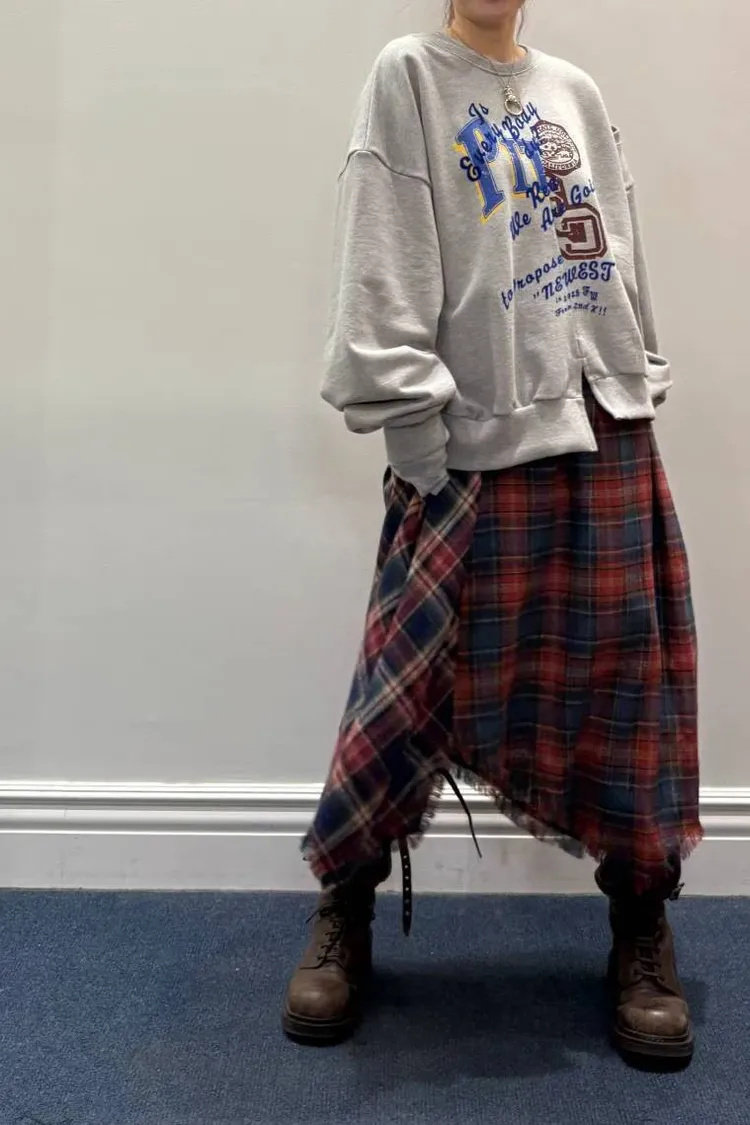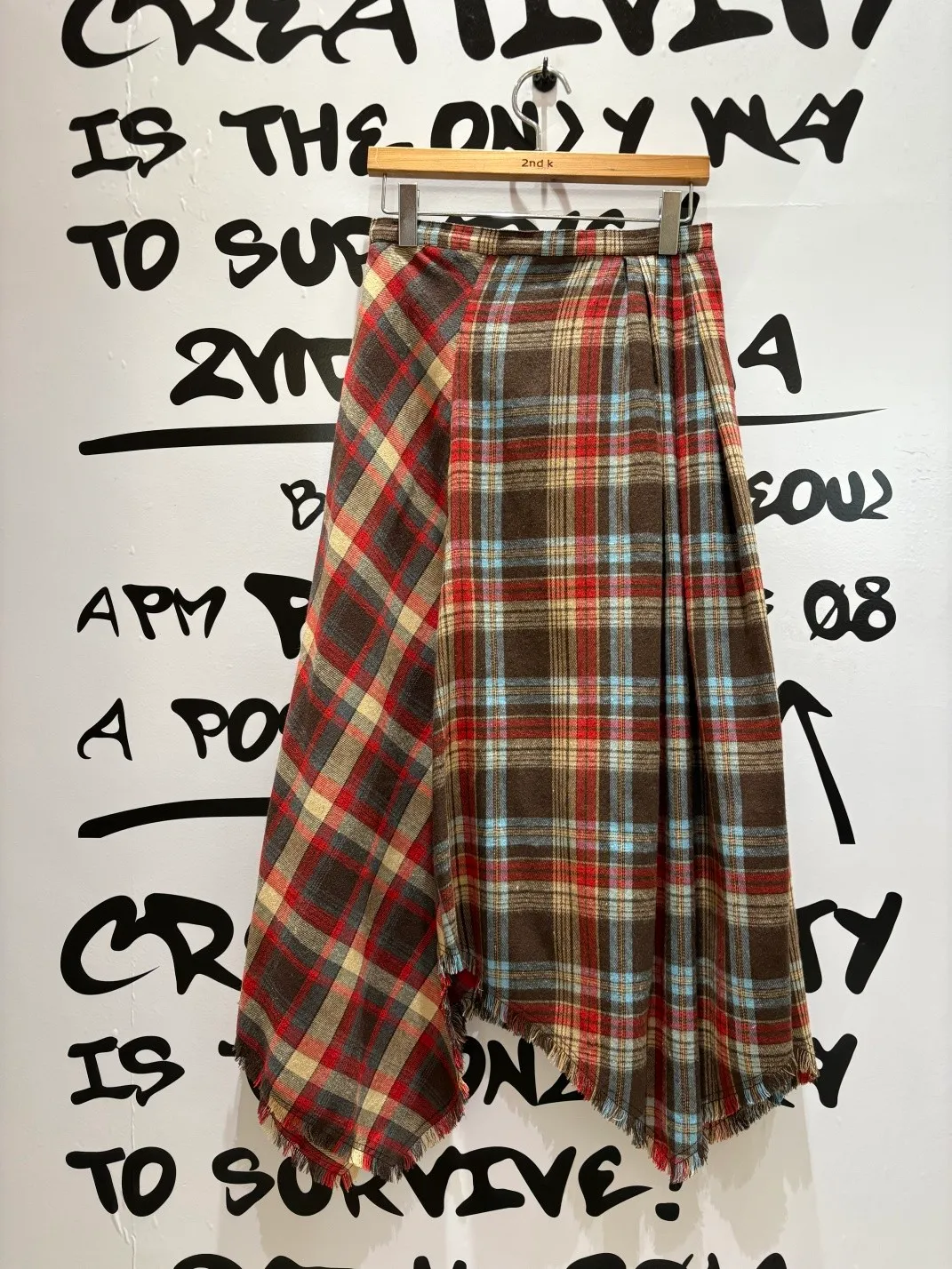 把秋冬常見的格紋圍巾,變成長裙來穿,隨性的復古感性