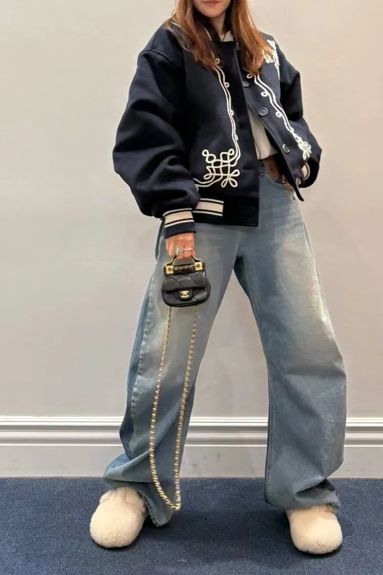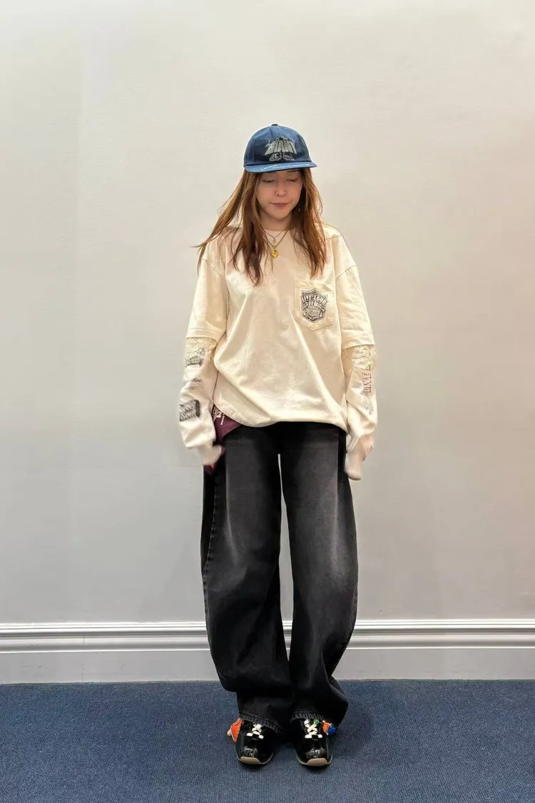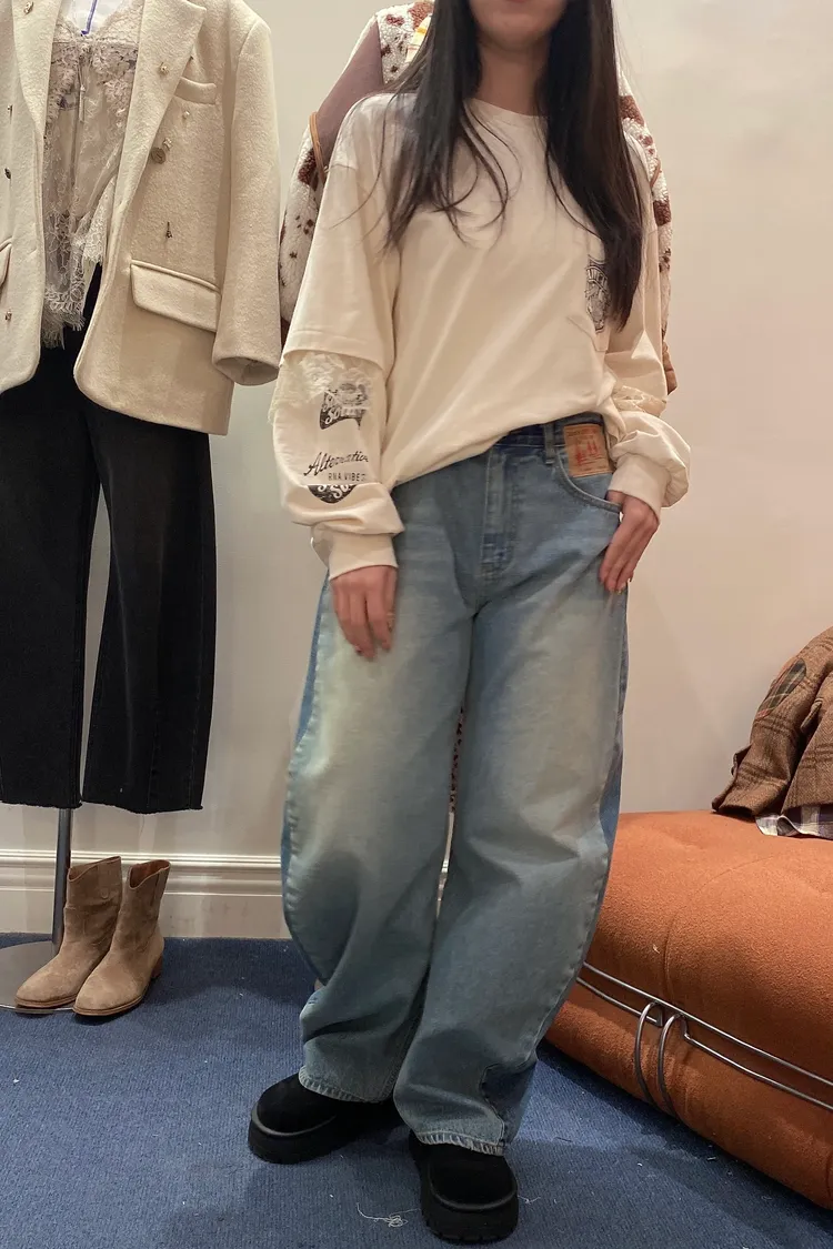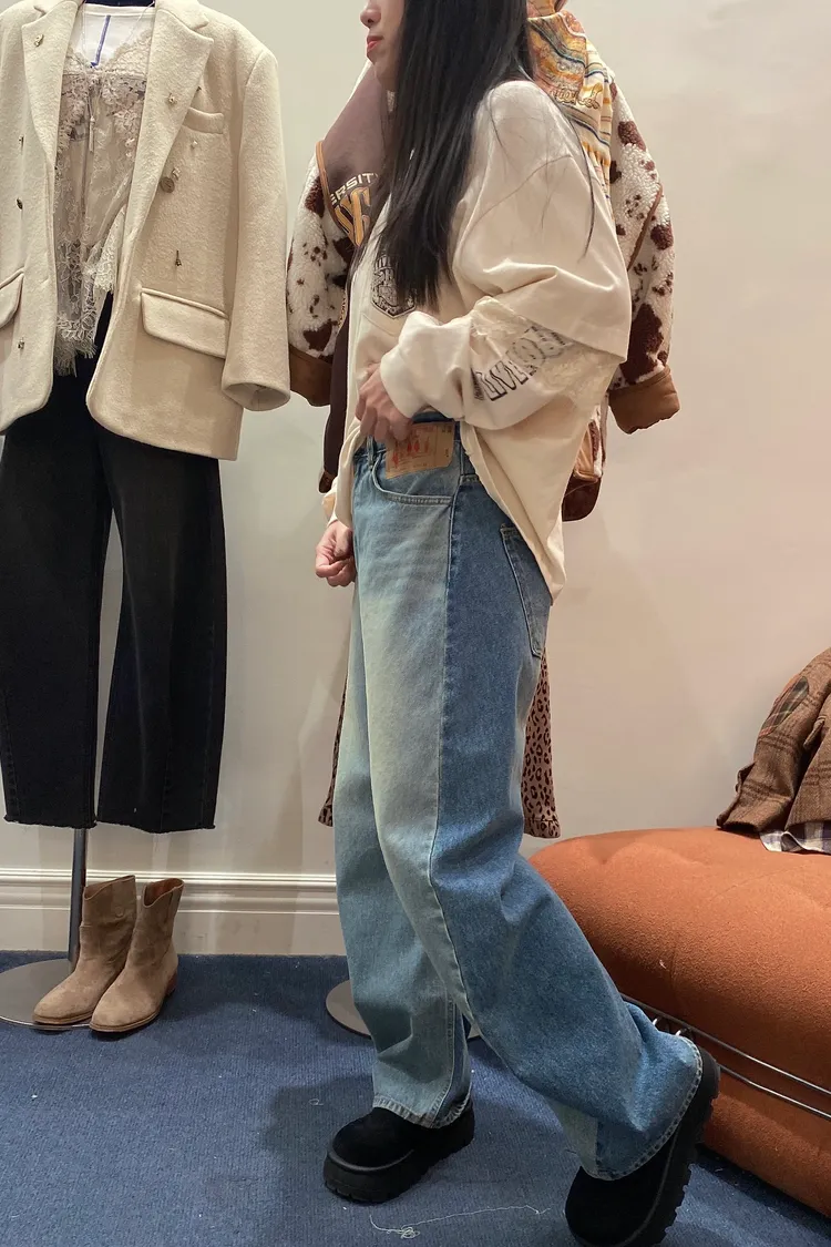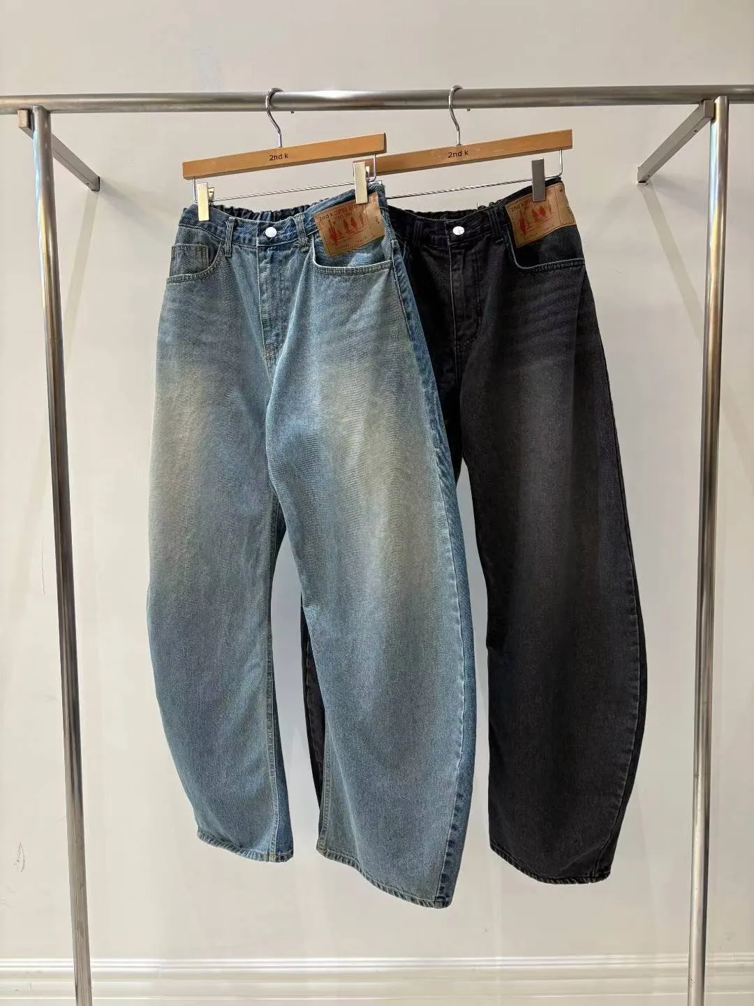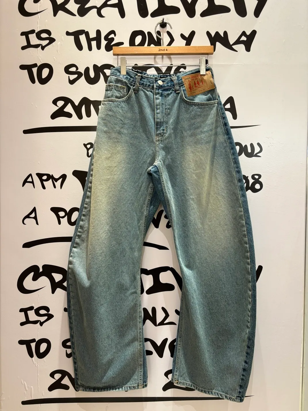 上身就知道不一樣 水洗牛仔面料,正面和背面的顏色不太一樣! 正面淺一點、背面深一些,走動的時候光影感超漂亮 是很自然、很耐看的那種復古味 彎刀褲版型把腿型修得又直又俐落,後腰彈性鬆緊,S-L妞都可以穿 以往都在背面的標籤,這次刻意放在正面 歐膩說經過清洗後,標籤會變得更有自然的復古風格 日常輕鬆搭一件白T、針織或外套,就能是很會穿的女生