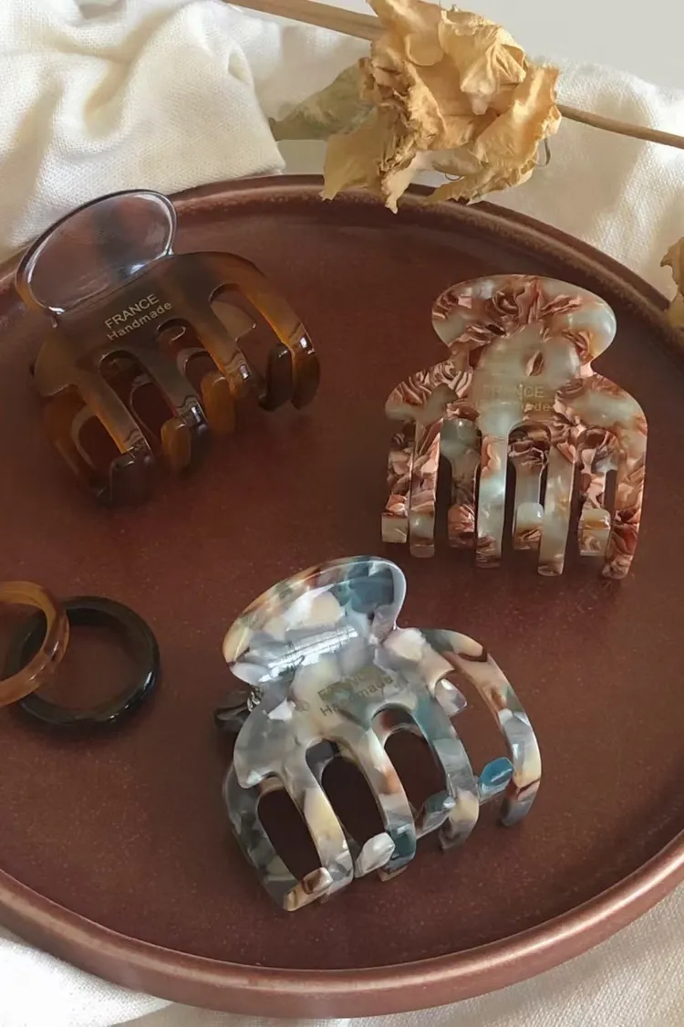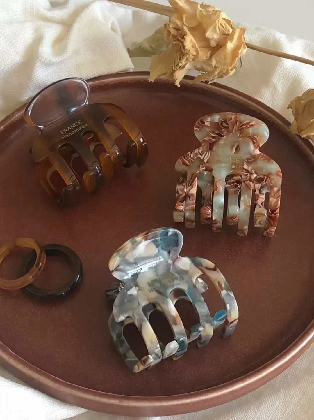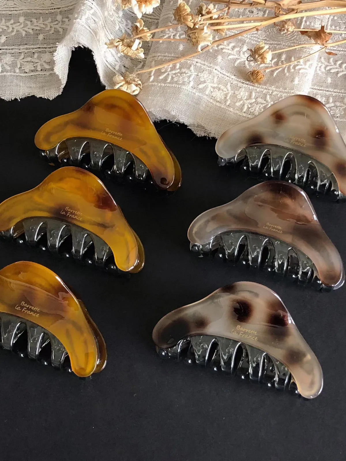 A_復古水滴髮夾/棕/大理石可可/海藍_4.2*3.9cm B_摩登長方髮夾/水藍/紅/綠黑_2.6*5.2cm C_新月弧線髮夾/斑點/焦糖_9*4.7cm D_玳瑁斑紋髮夾/暖黃/奶茶_5.5*3.4cm