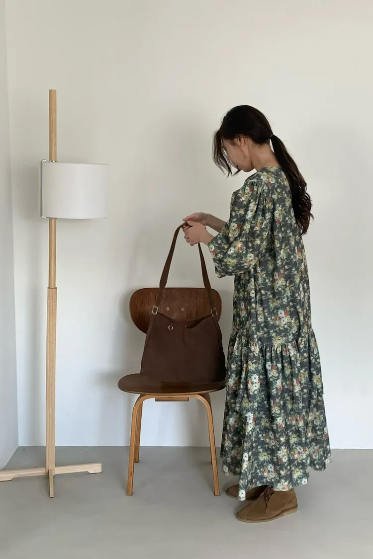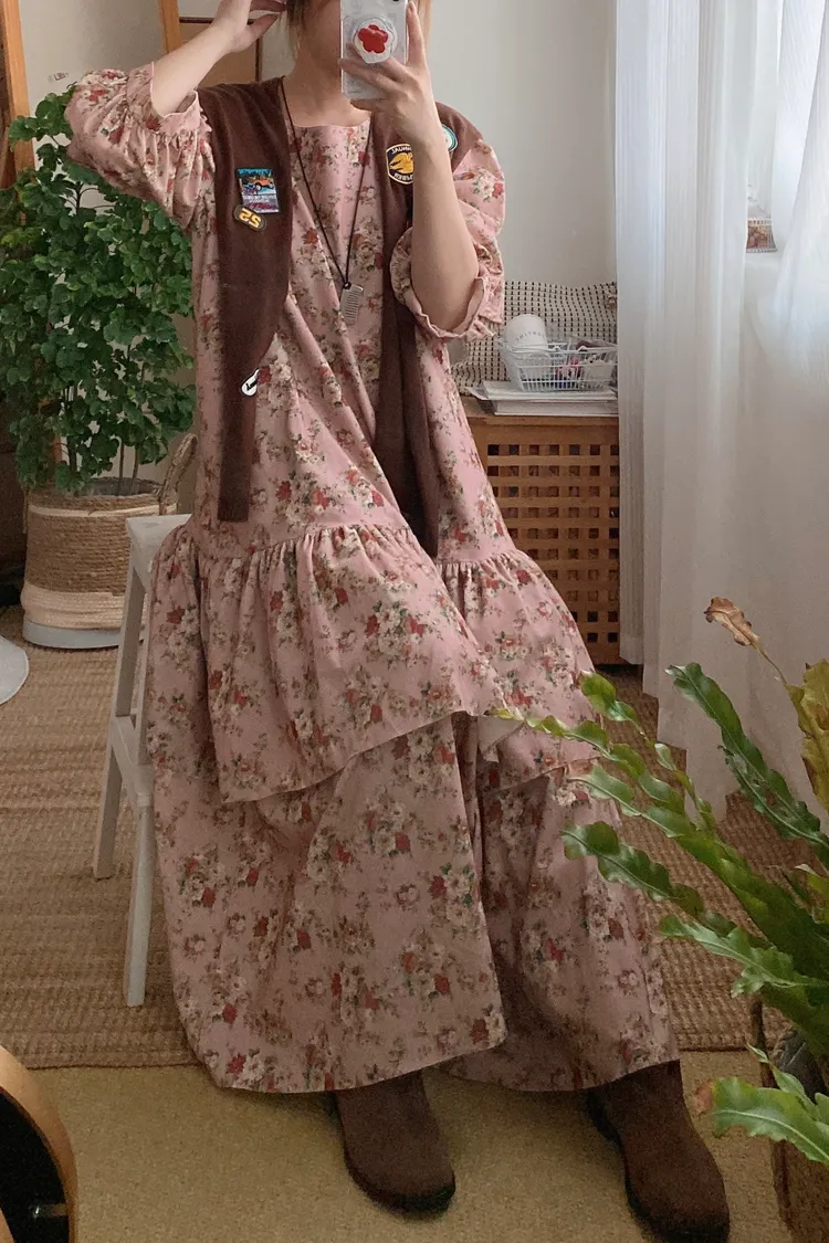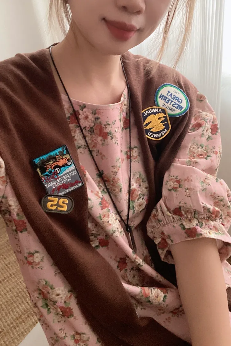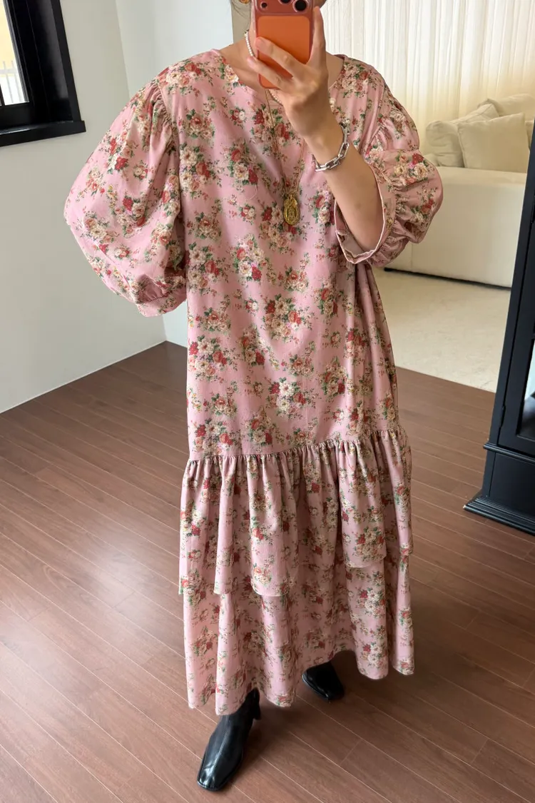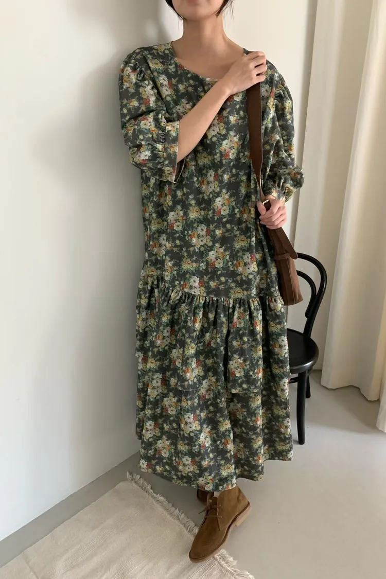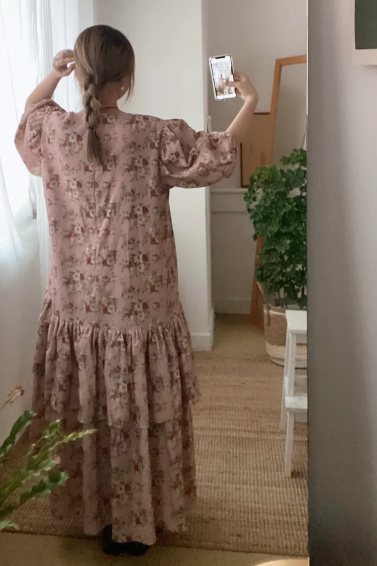 整件繽紛花束印花超吸睛,搭配寬鬆七分蓬蓬袖和低腰線設計