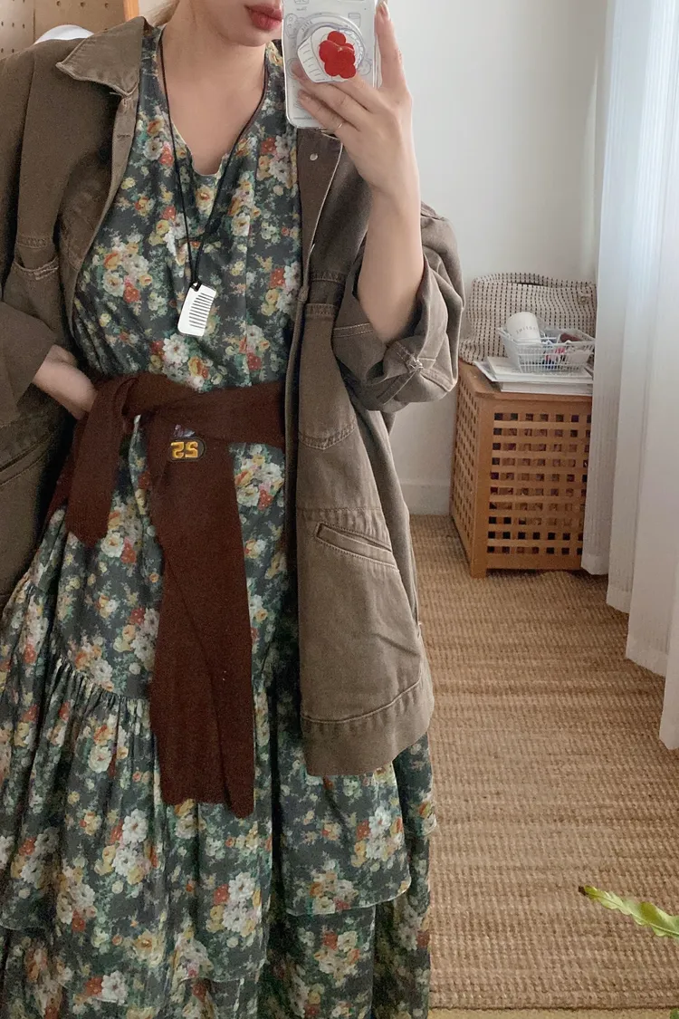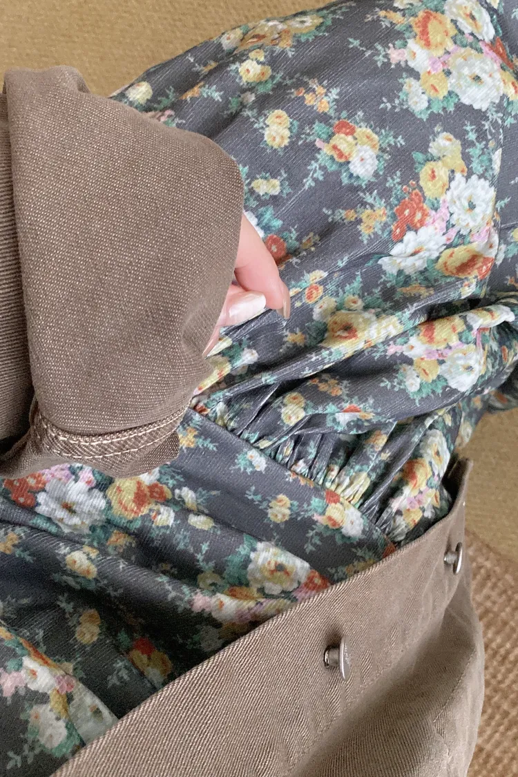 OTD02繽紛花束坑條燈芯絨蛋糕連身洋