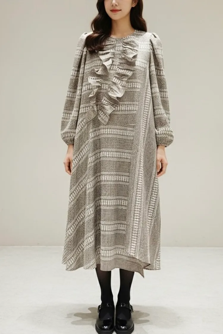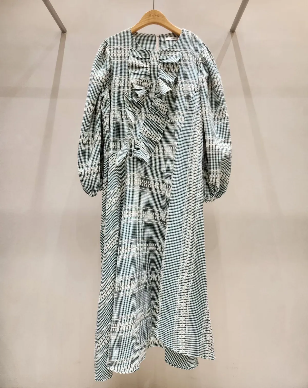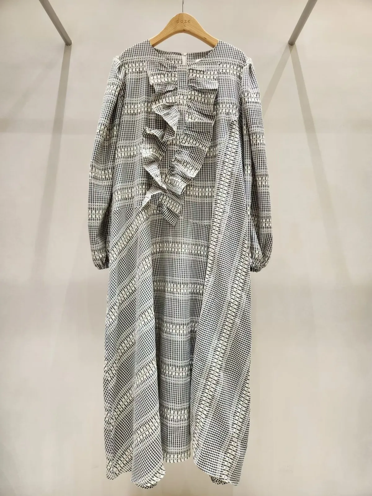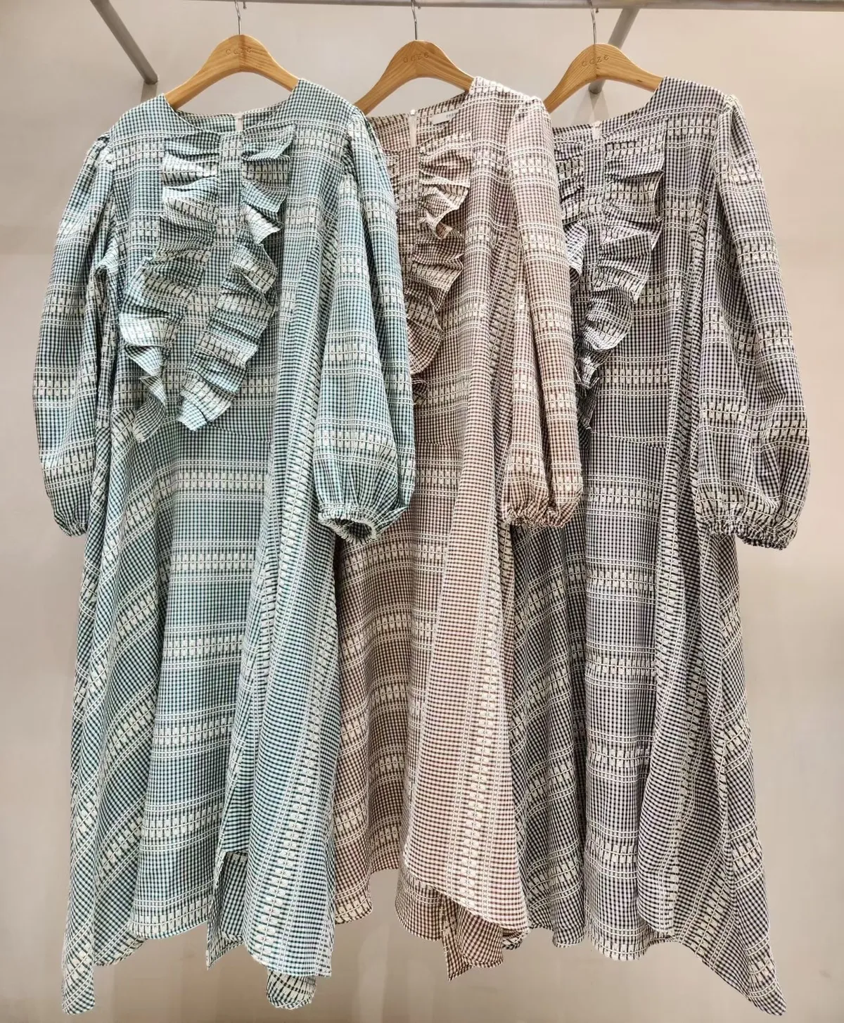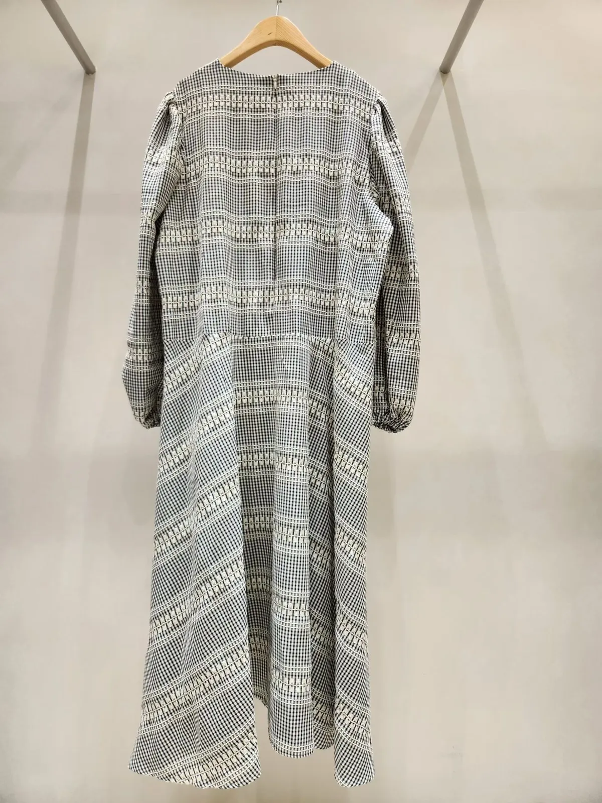 聚脂纖維和棉料混紡,穿起來柔軟又有質感 變化型格紋印花巧妙拼接,不同方向的格紋讓視覺更有層次感✨ 胸前寬版斜型拼接抓折設計,小巧思增加立體感與時尚度 寬鬆版型,S-XL妞都可以穿,展現微甜巧妙設計的高級日常look 背面有拉鍊好穿脫、袖口彈性鬆緊