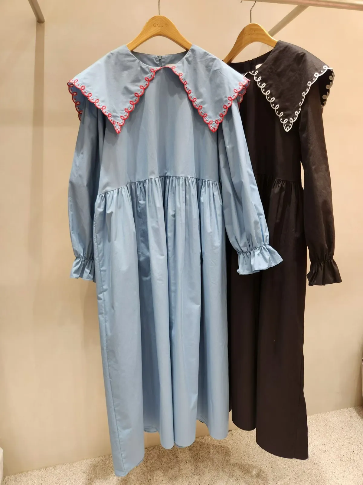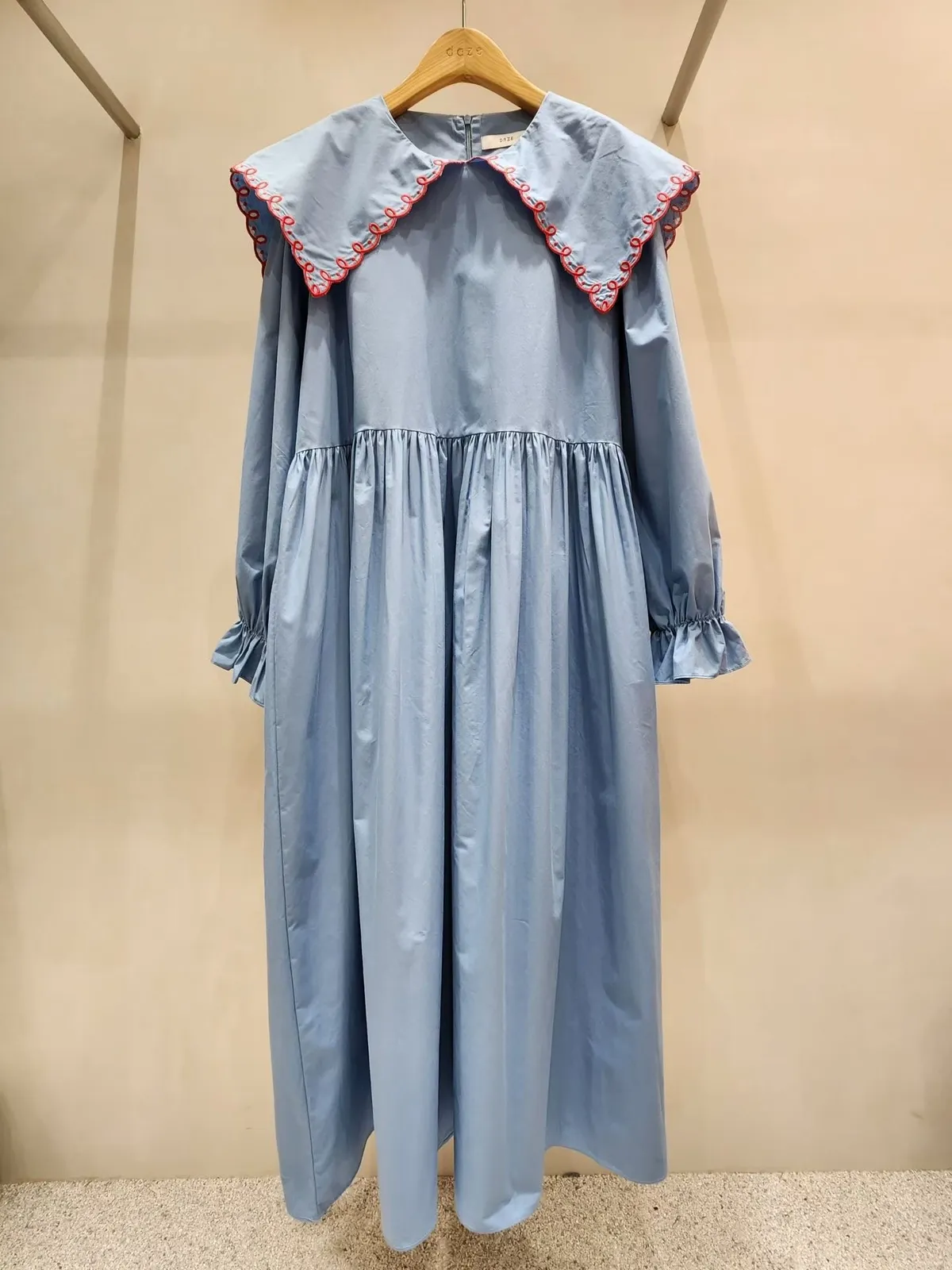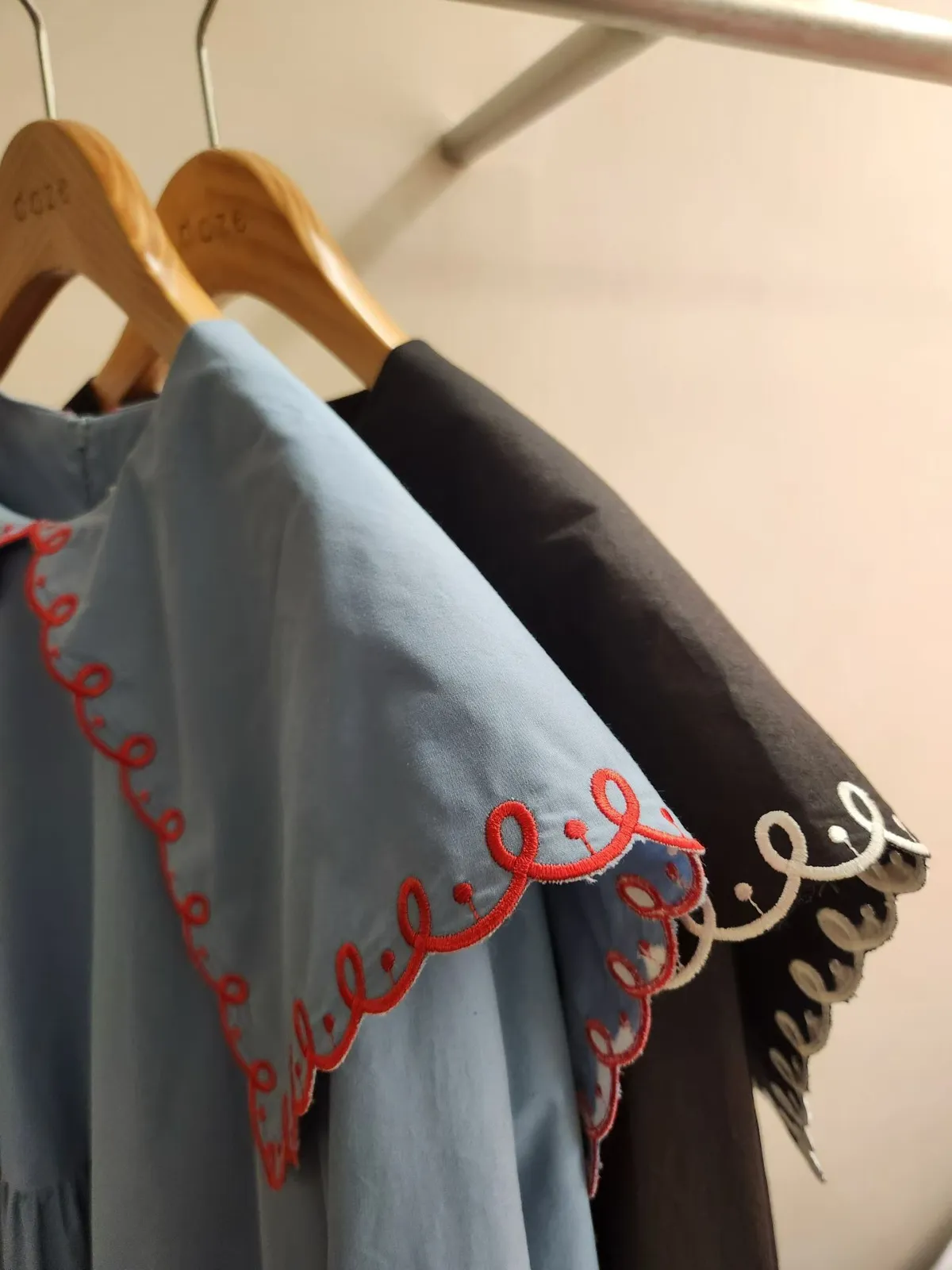 OTD10簡約甜美撞色刺繡翻領連身洋