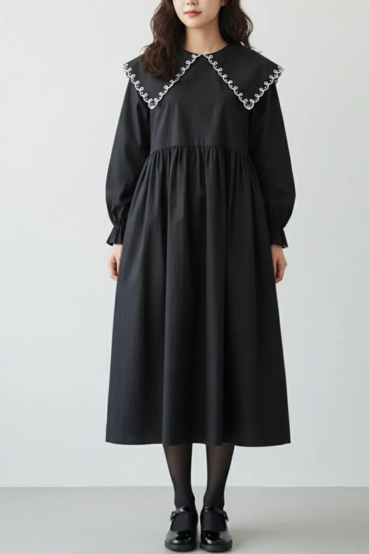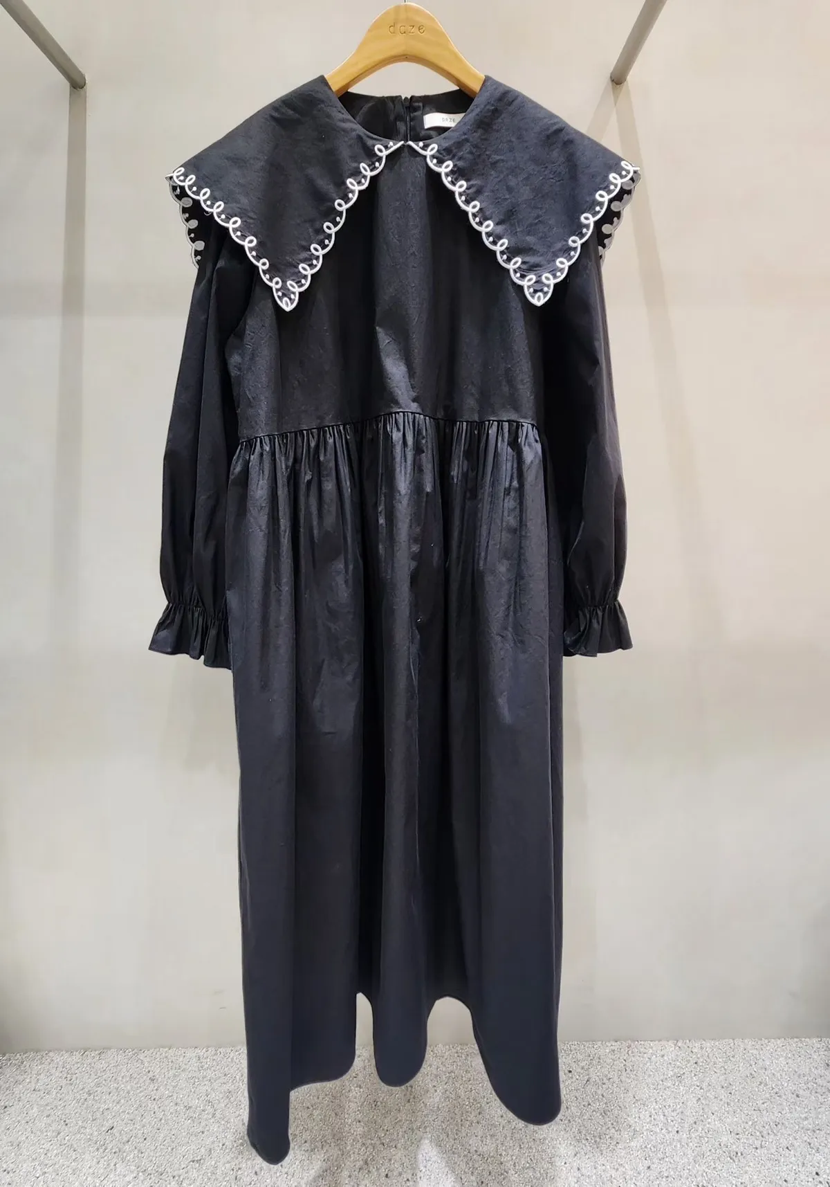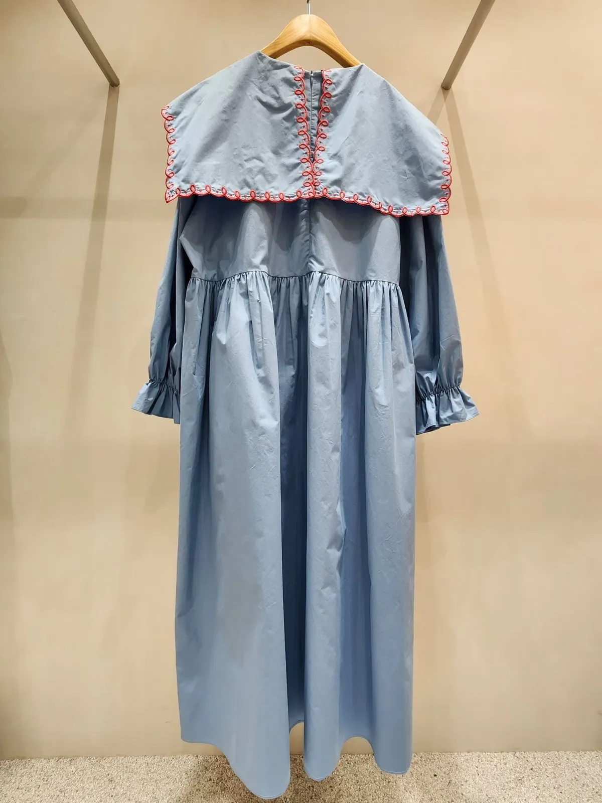 OTD10簡約甜美撞色刺繡翻領連身洋