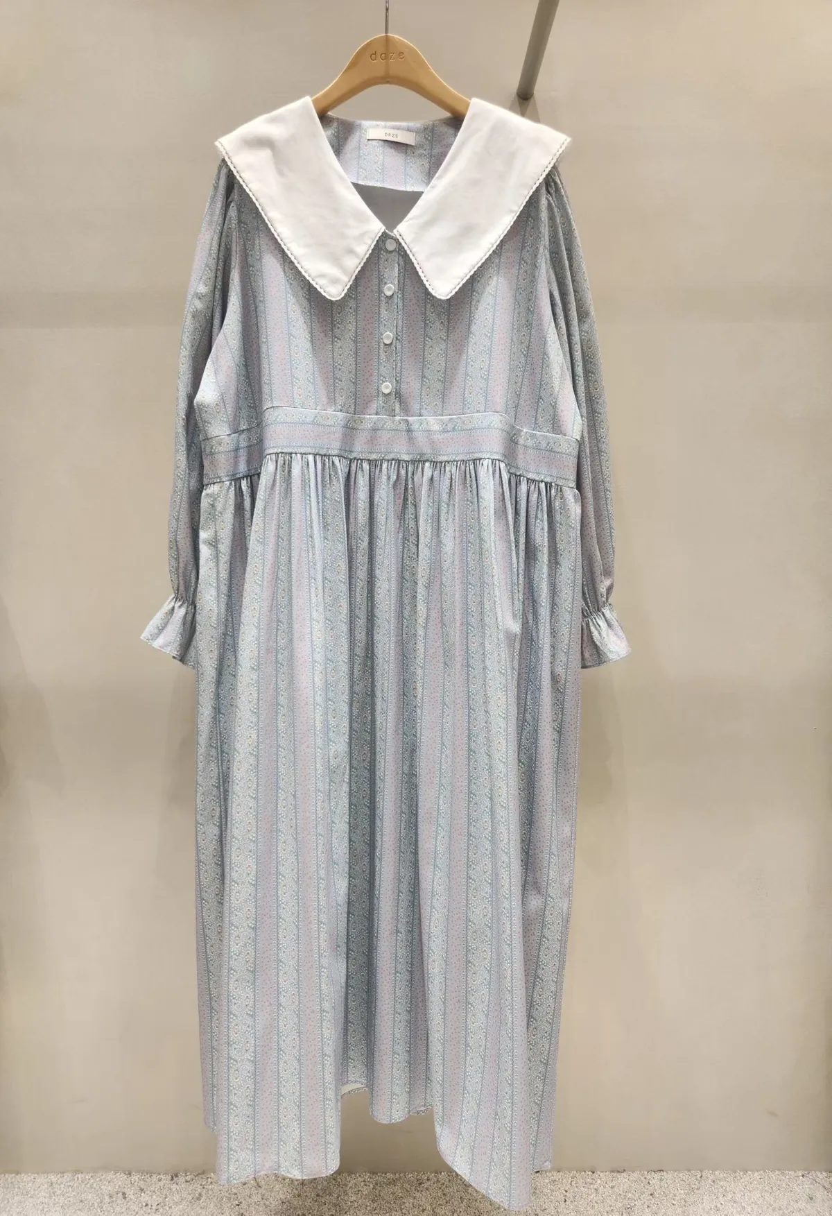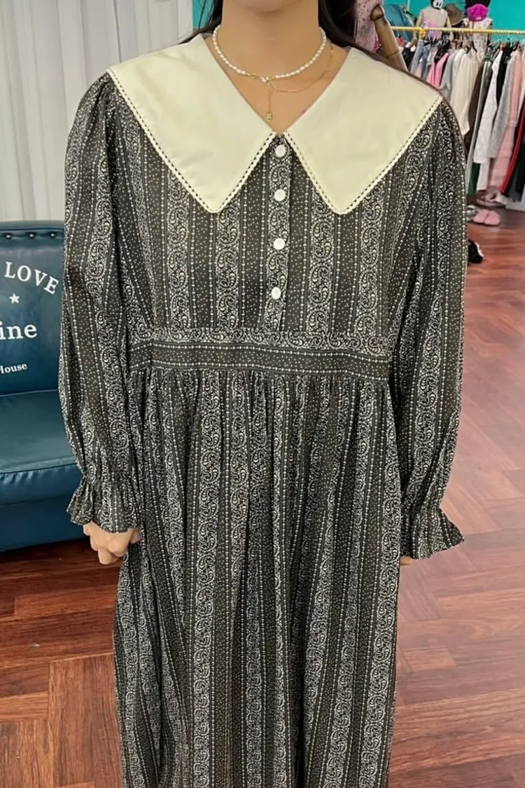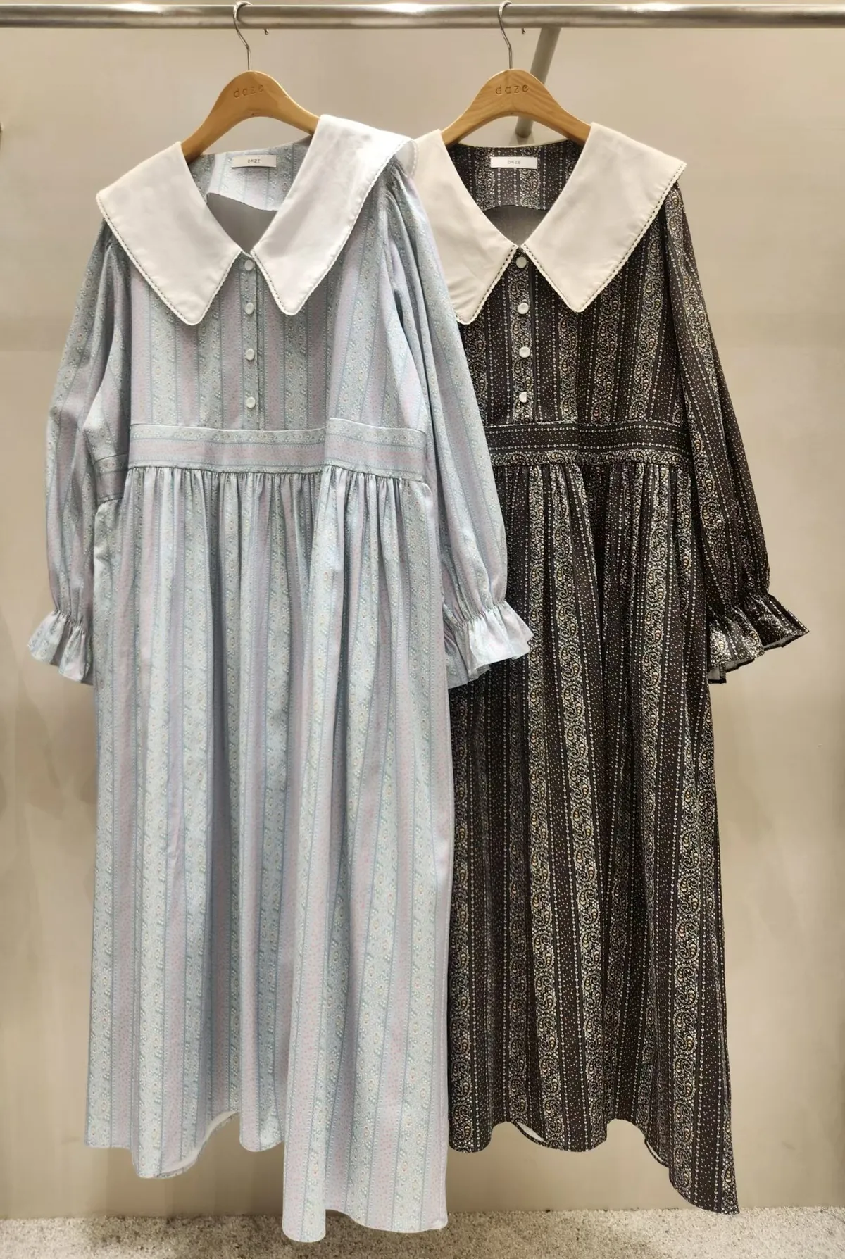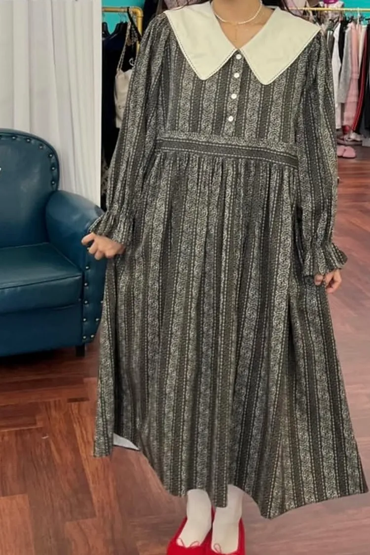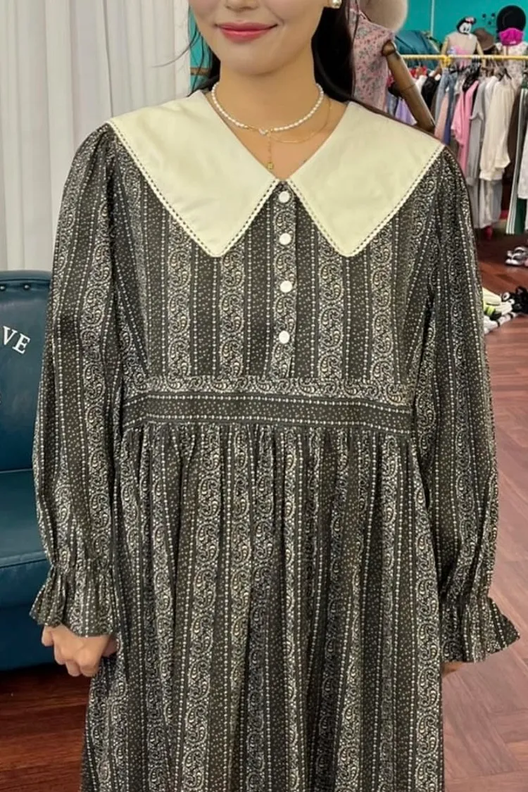 棉料材質柔軟親膚,高腰寬鬆傘狀裙襬輕盈飄逸,S-XL妞都可以穿 深淺直條紋拼接搭配內裡佩斯利印花與小點點,細節滿滿、層次感十足✨ 大翻領設計與高腰腰帶修飾比例,手袖荷葉邊彈性設計增添甜美小巧思🎀 半身扣設計方便穿脫,一件就能穿出復古優雅又帶童趣感的夢幻look