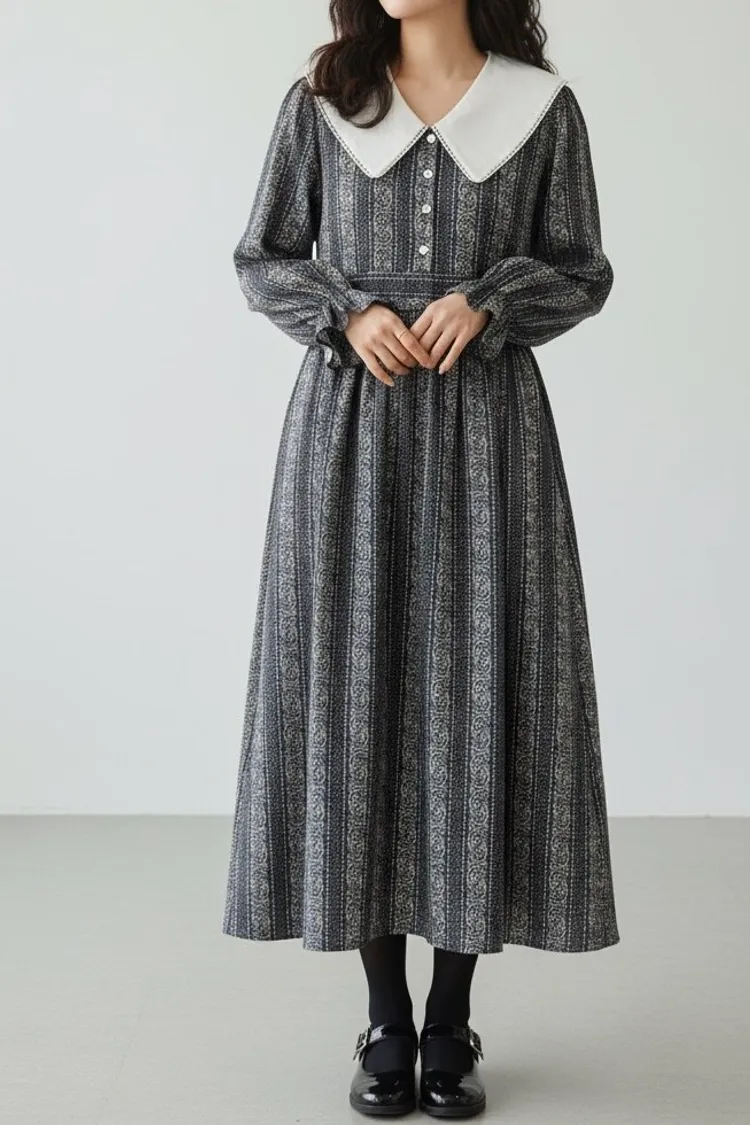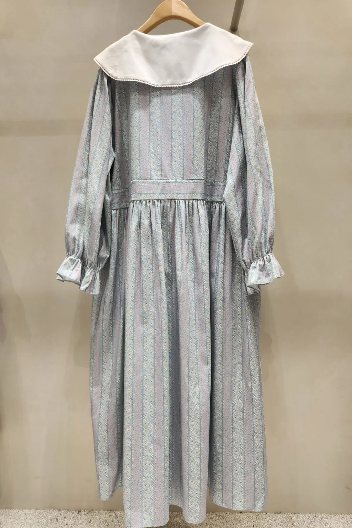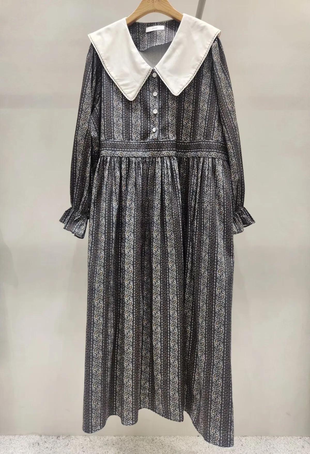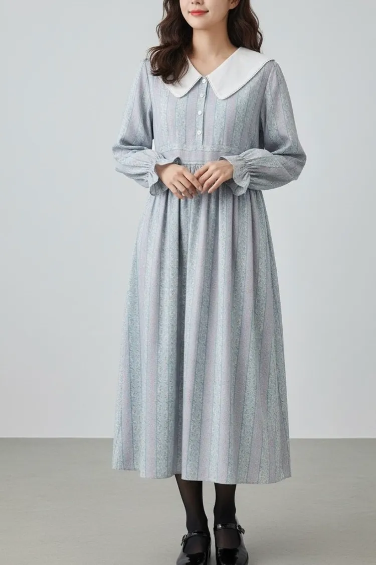 棉料材質柔軟親膚,高腰寬鬆傘狀裙襬輕盈飄逸,S-XL妞都可以穿 深淺直條紋拼接搭配內裡佩斯利印花與小點點,細節滿滿、層次感十足✨ 大翻領設計與高腰腰帶修飾比例,手袖荷葉邊彈性設計增添甜美小巧思🎀 半身扣設計方便穿脫,一件就能穿出復古優雅又帶童趣感的夢幻look