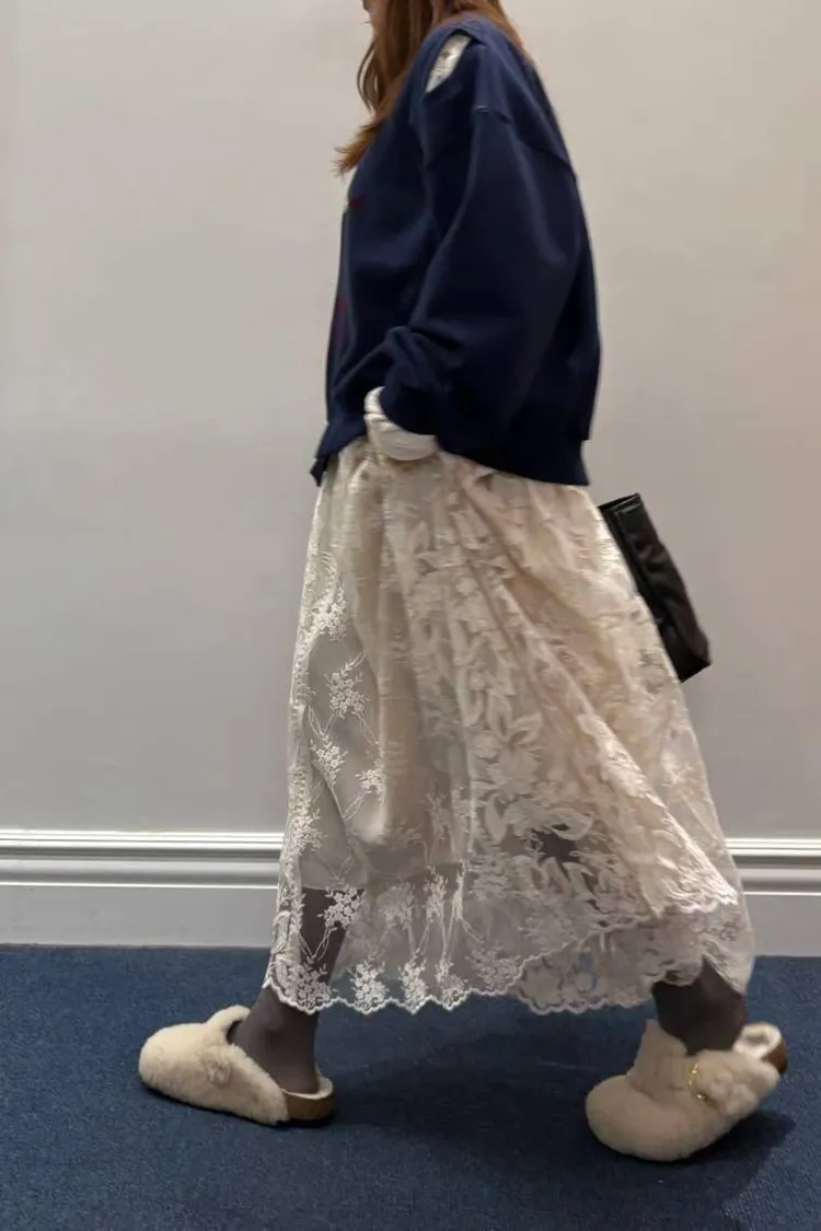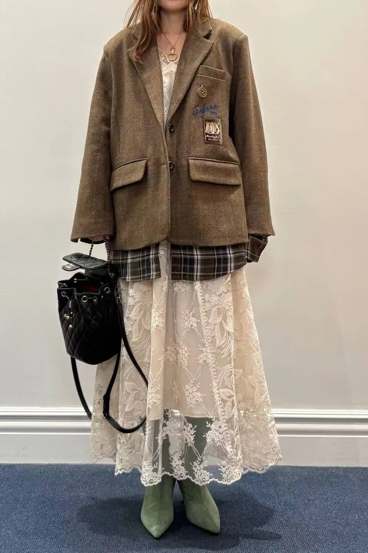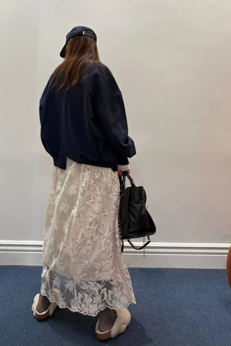 超重工三種不同的刺繡蕾絲面料拼接在一起,細節豐富又充滿手工質感