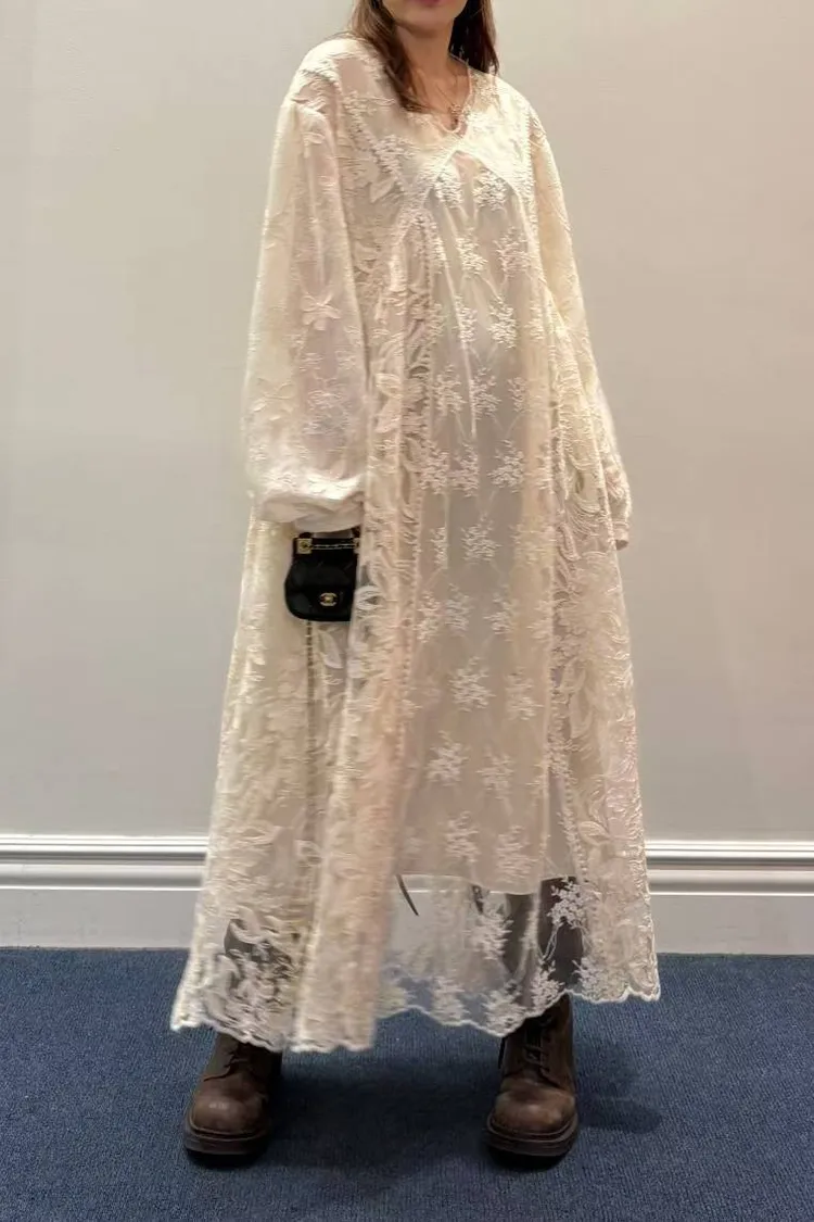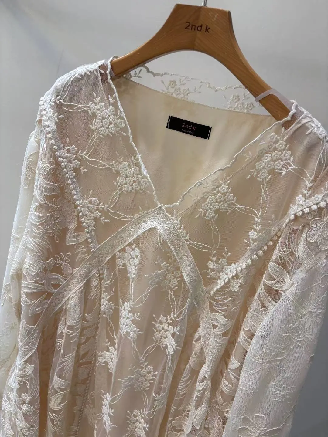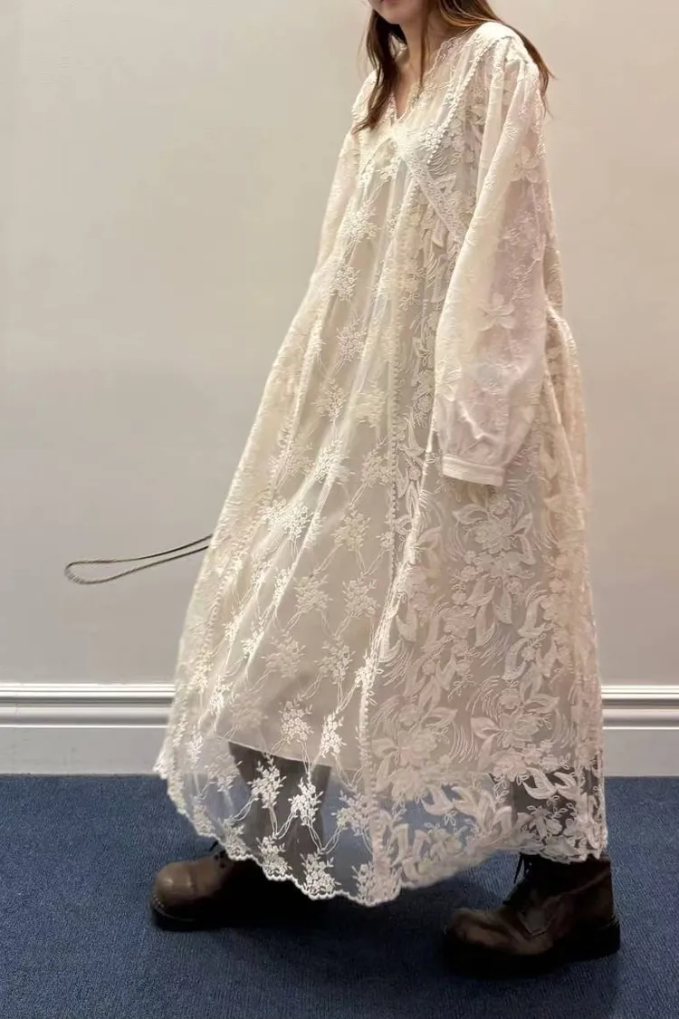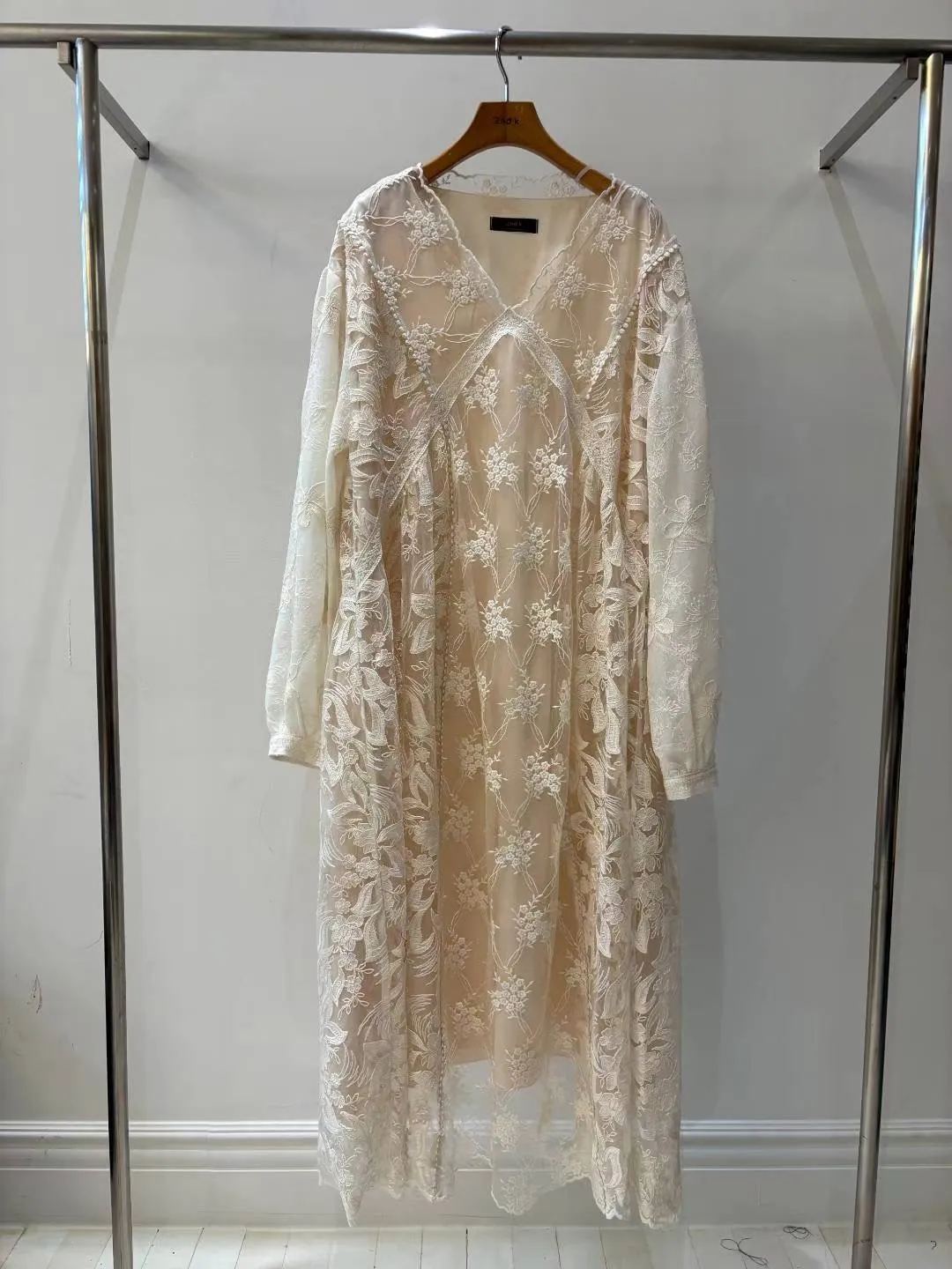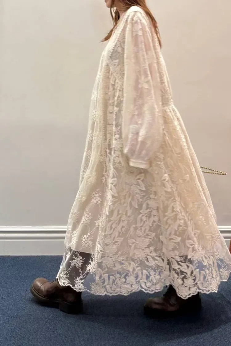 OTD24浮光花瓣刺繡蕾絲連身洋