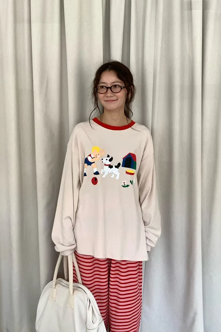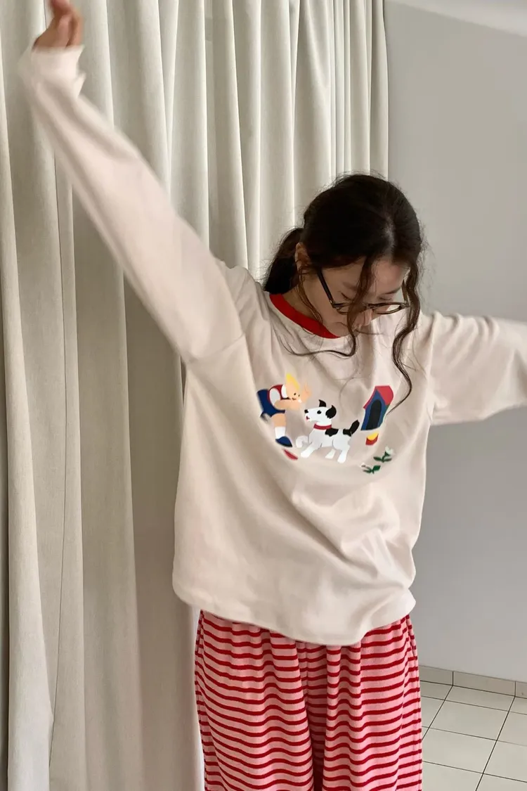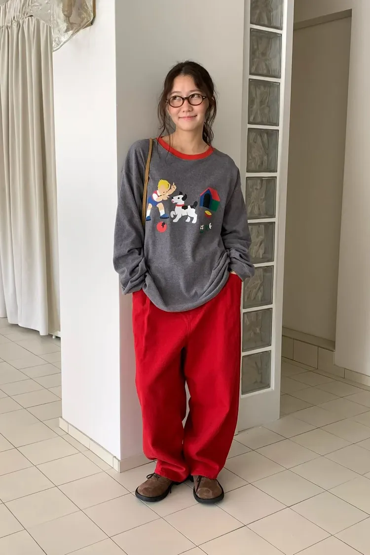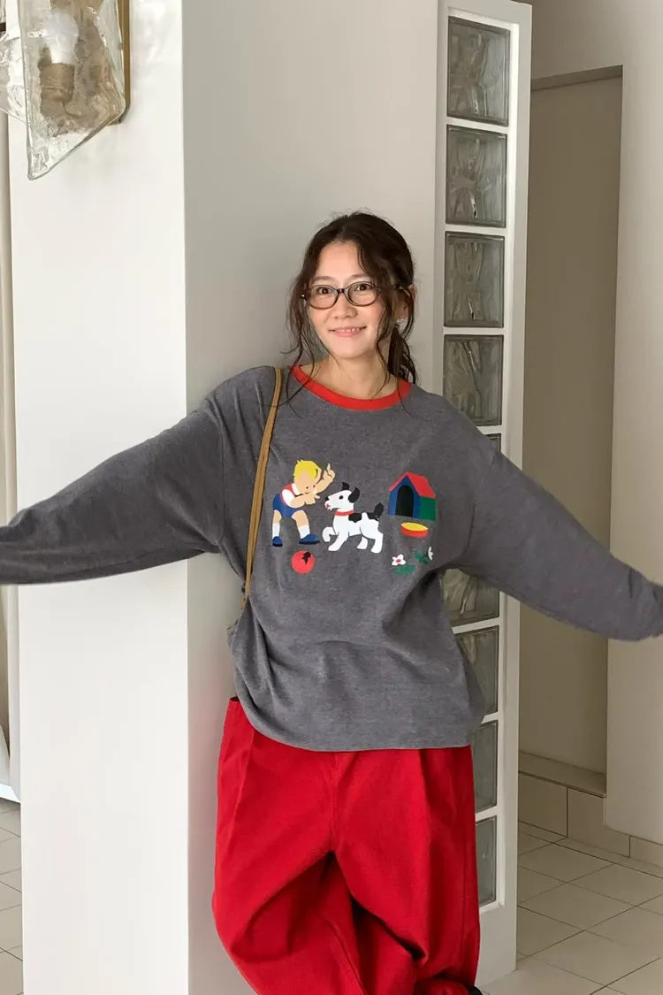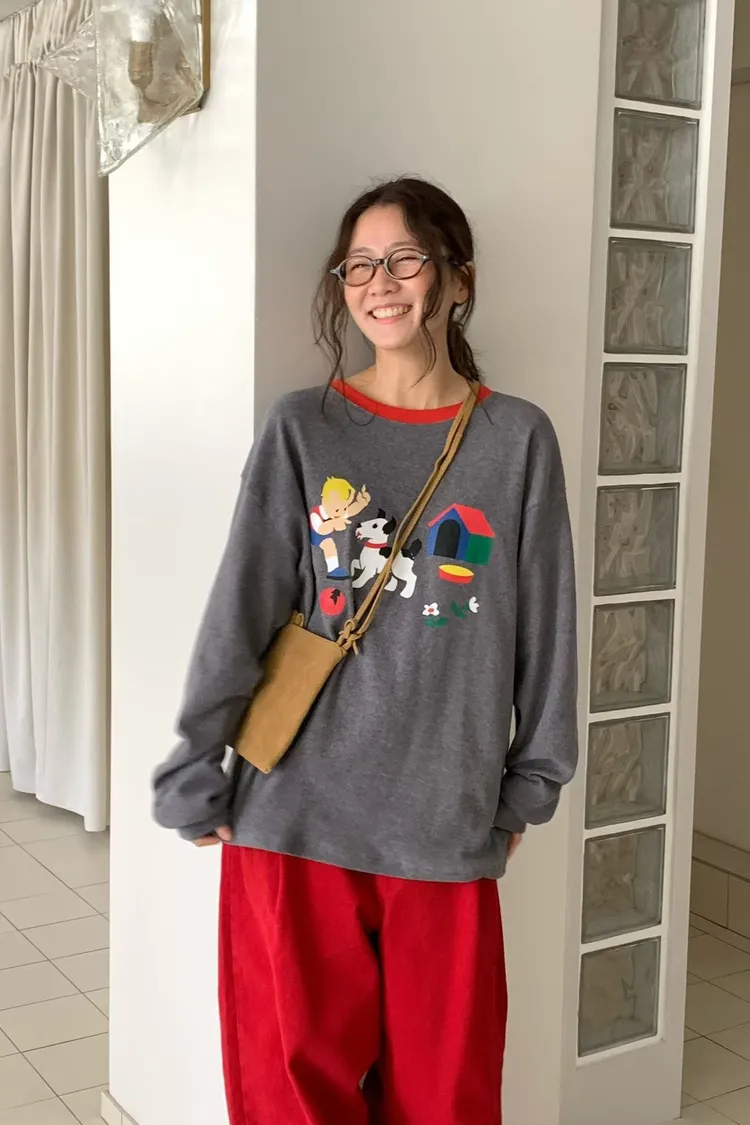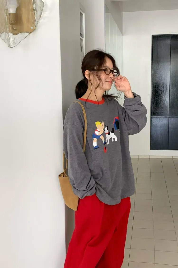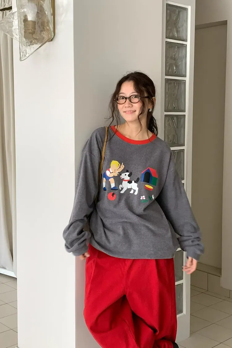 帶有磨毛感的棉料材質,領口紅色滾邊點綴俏皮感