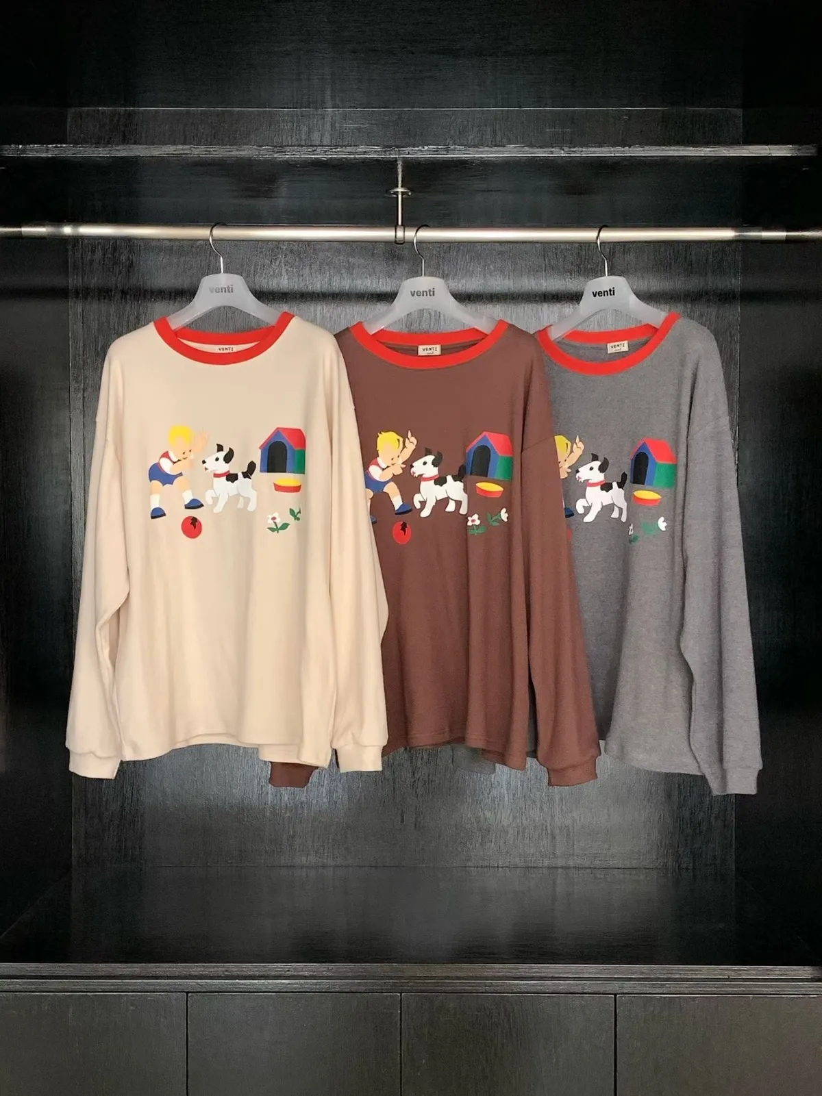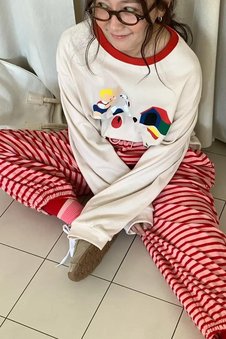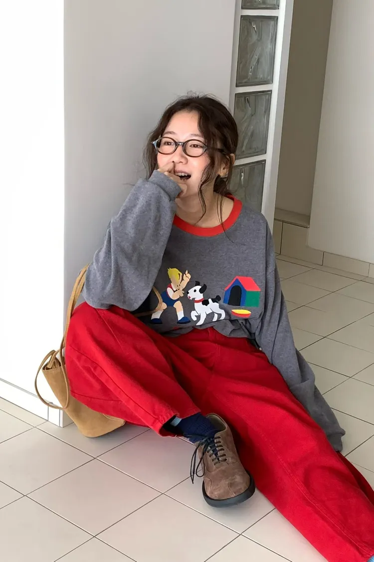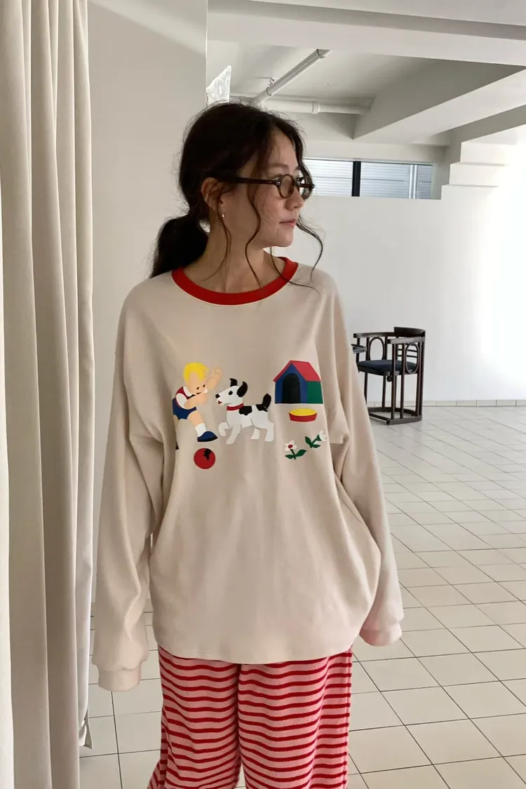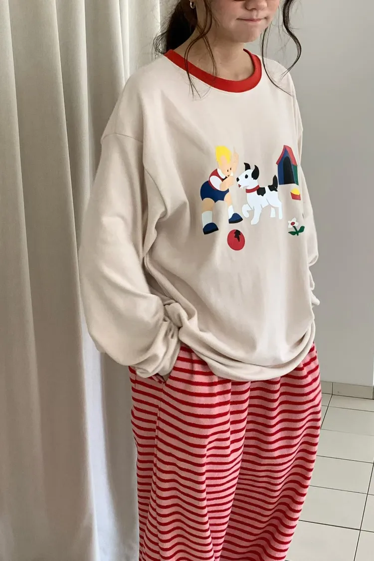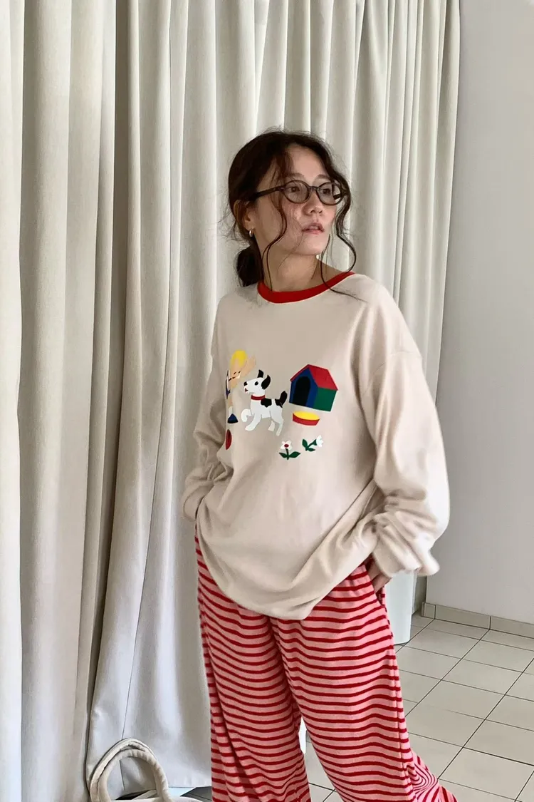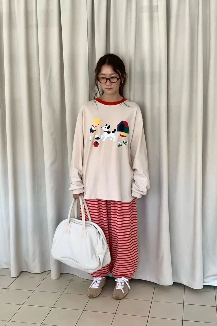 帶有磨毛感的棉料材質,領口紅色滾邊點綴俏皮感