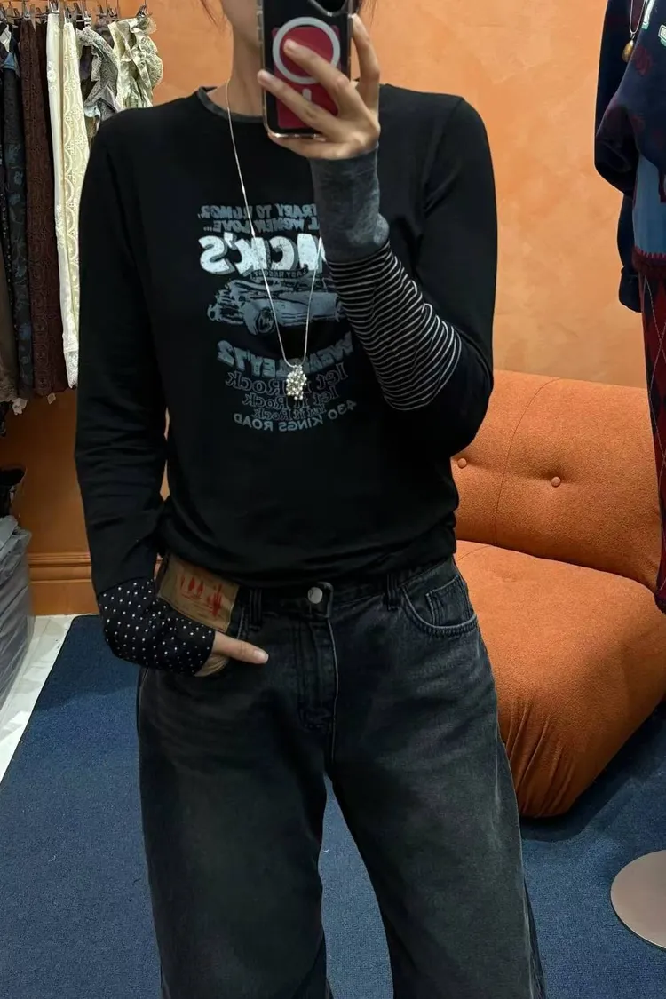 不對稱撞色拼接手袖、領口也有層次拼色小細節