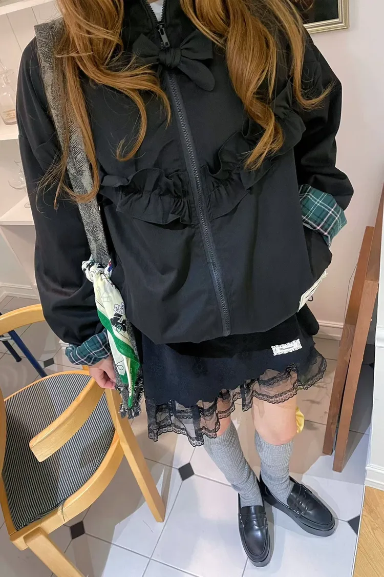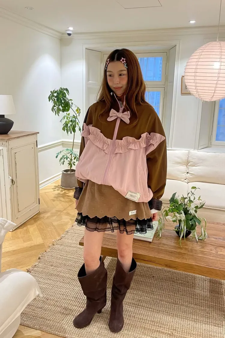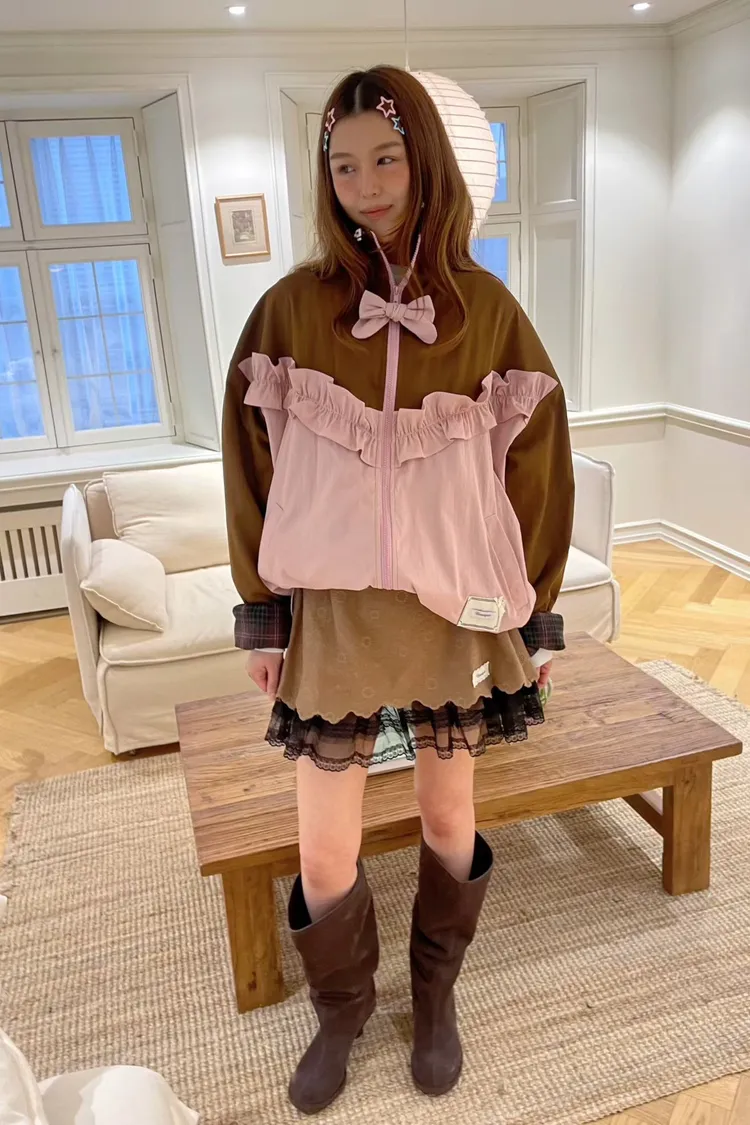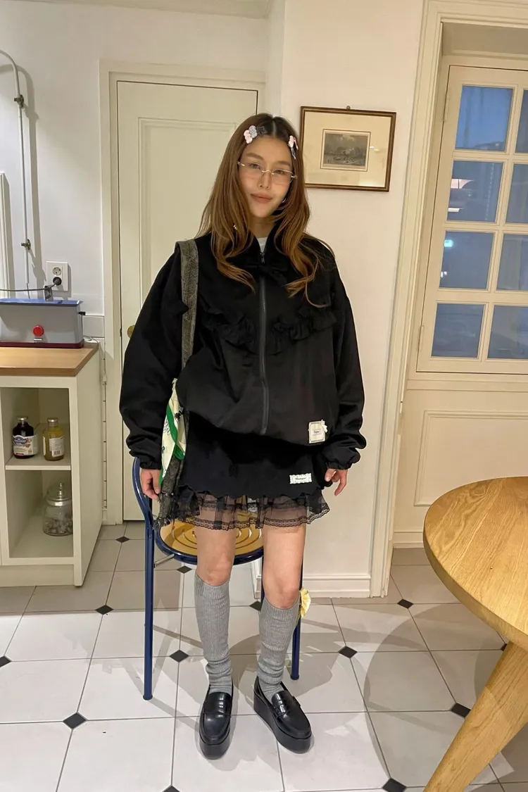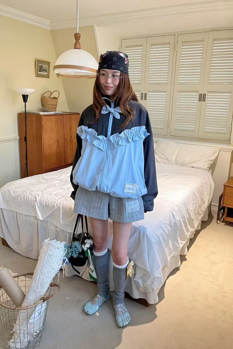 可愛與質感一次滿分登場 棉料材質柔軟舒適、寬鬆版型,S-XL妞都可以穿 上身與下身撞色設計超吸睛,純色款則更百搭有氣質 拉鍊頭有個可愛蝴蝶結細節,甜美度瞬間加分,內裡是磨毛格紋暖意滿滿 胸前寬版波浪邊抓折拼接超有層次,立領+抽繩設計增添俐落與保暖感 有口袋 內裡和OTB10褲子是相同面料,可以對應相同顏色搭配成套