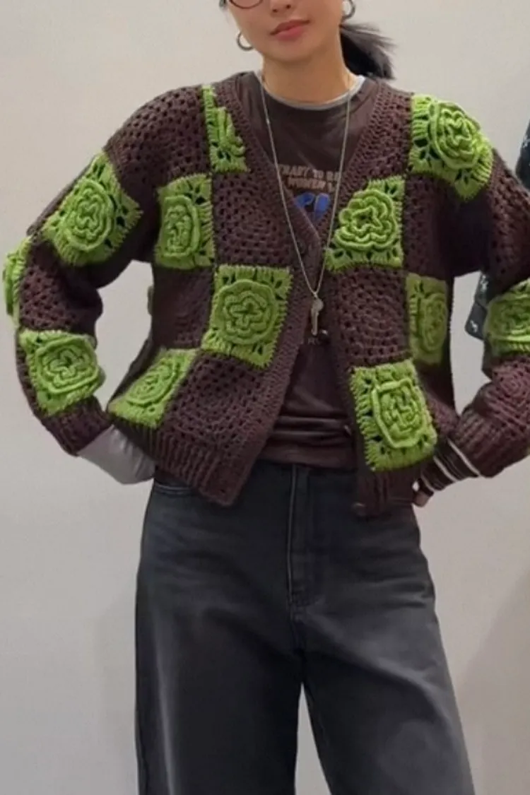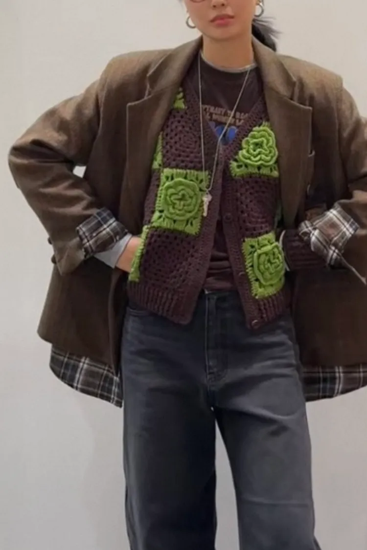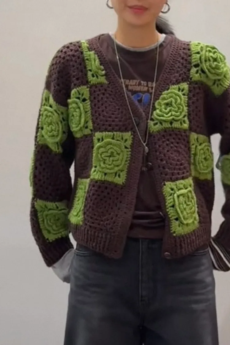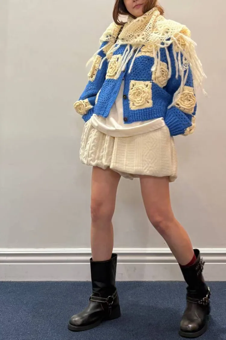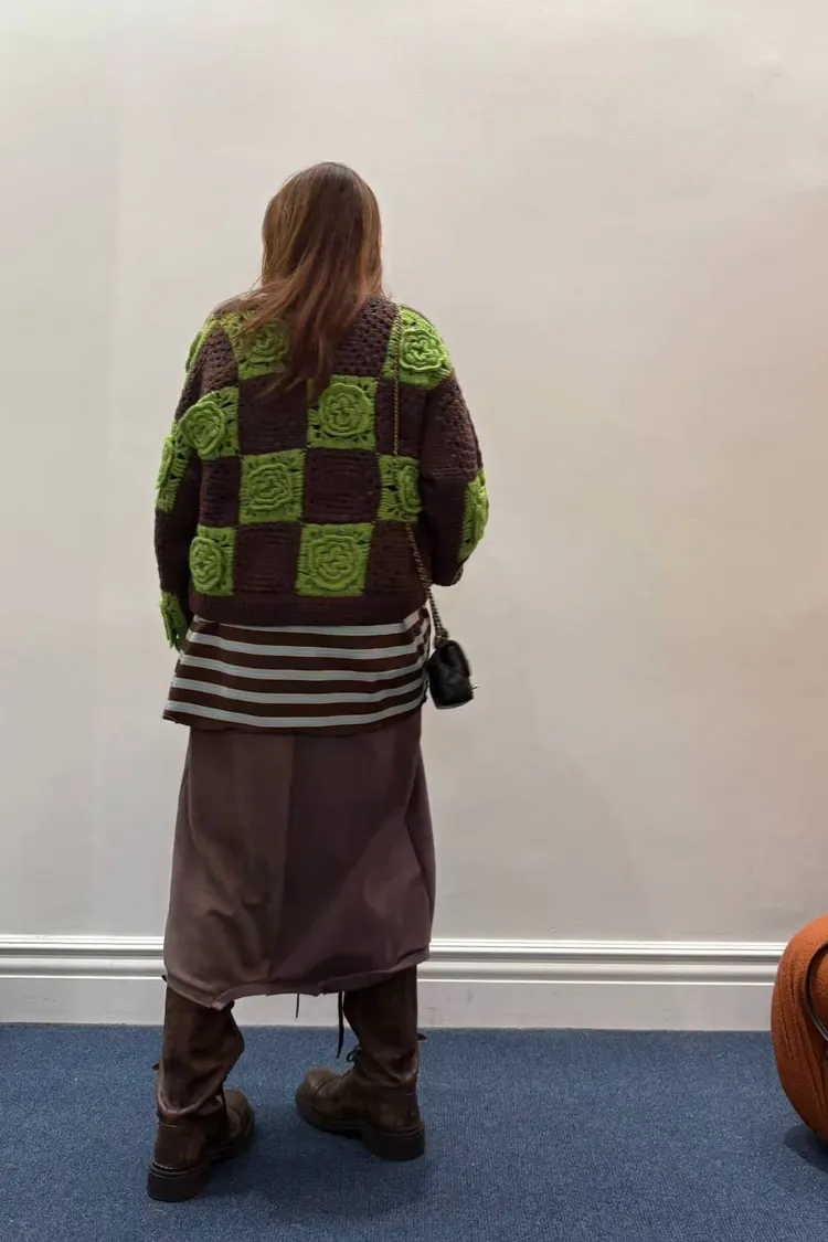 HAND MADE 手工製,精緻又有質感 羊毛50%、幼馬海毛(Kid Mohair)20%,纖維很細、柔軟保暖 棋盤格鉤織立體花朵,優雅中帶點甜美氣息 S-L妞都可以穿,無論日常出街或秋冬約會都超吸睛韓國熱銷色是黑、紅