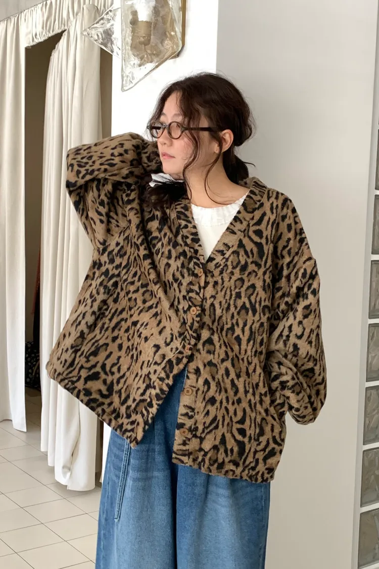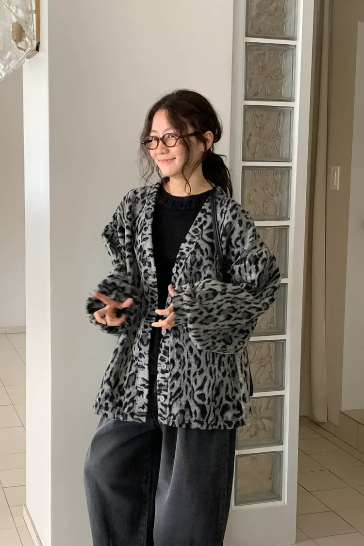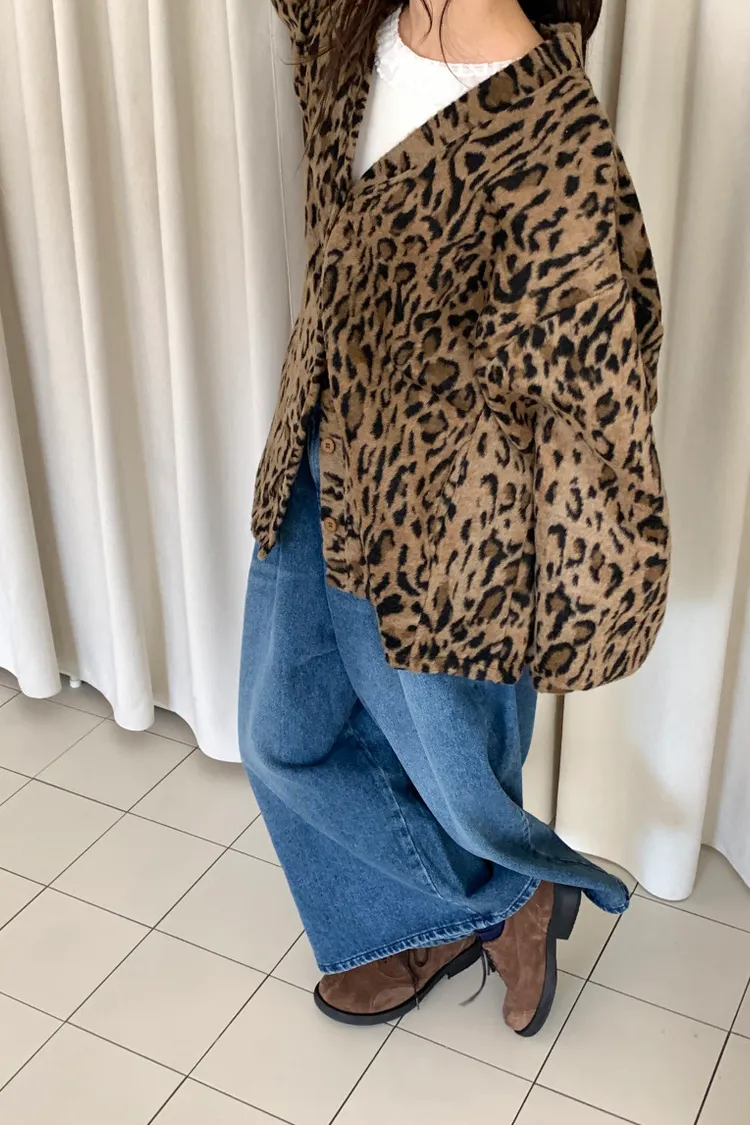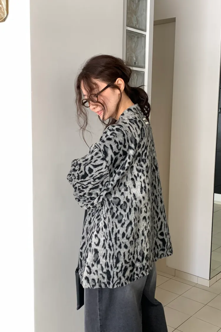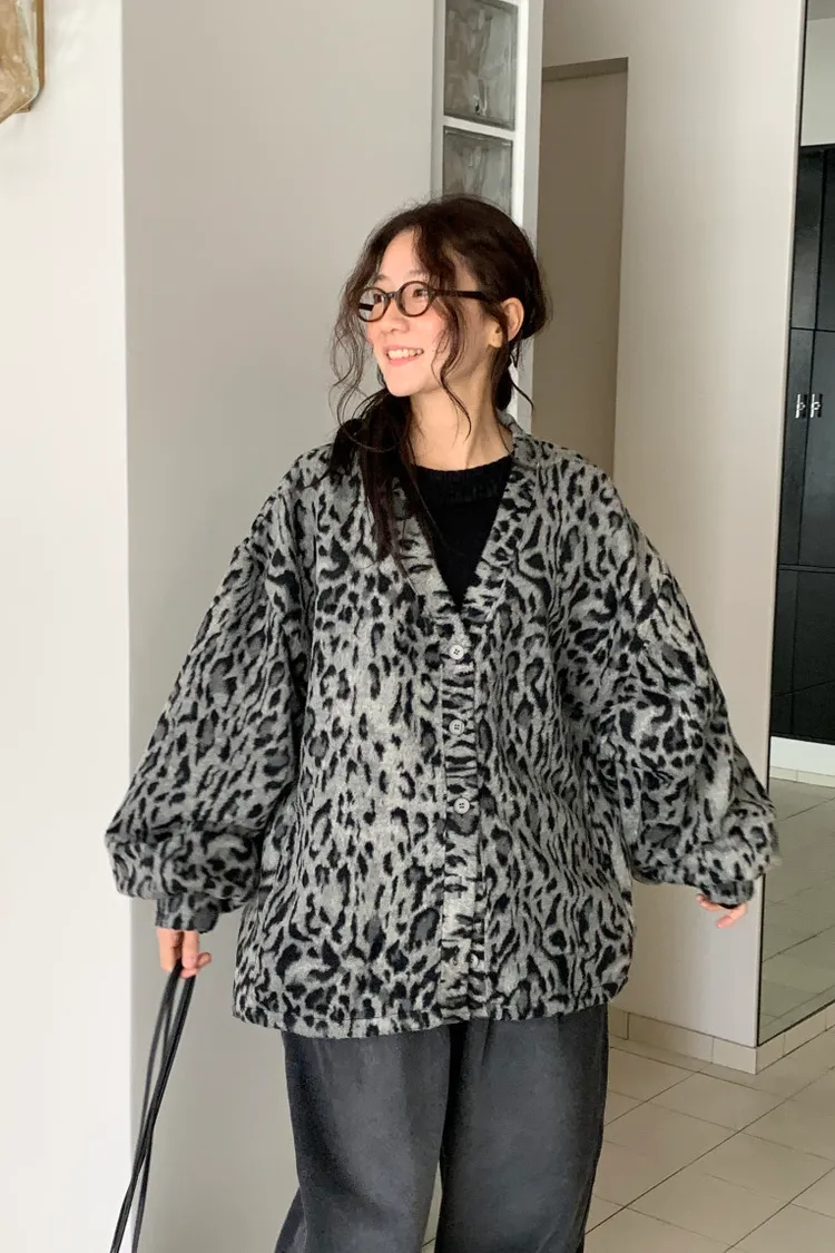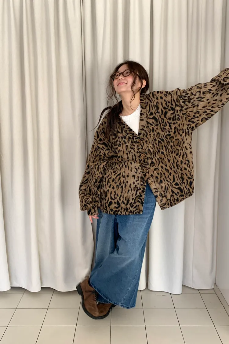 OTU16豹紋慵懶.落肩寬鬆毛料外套