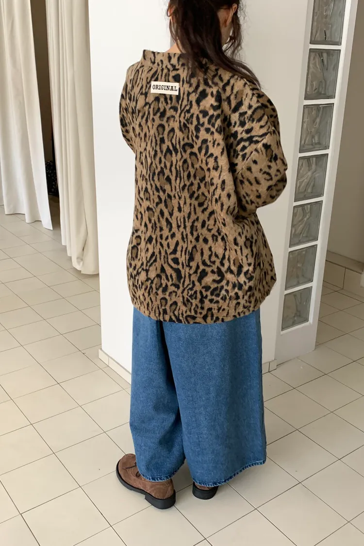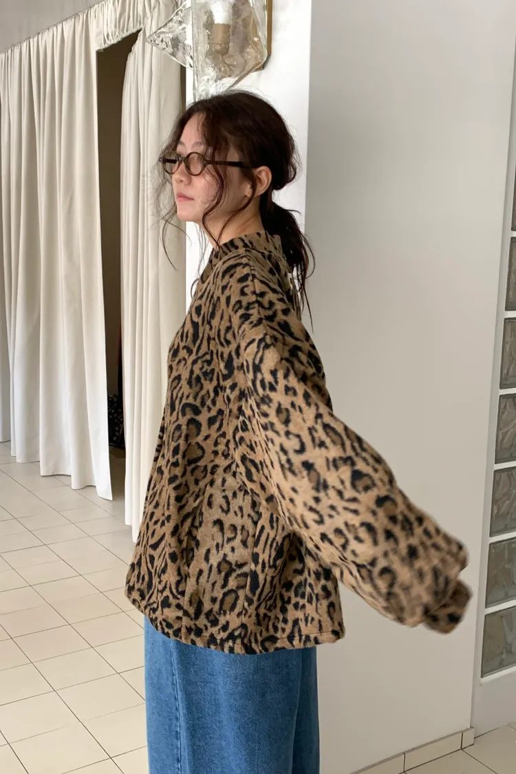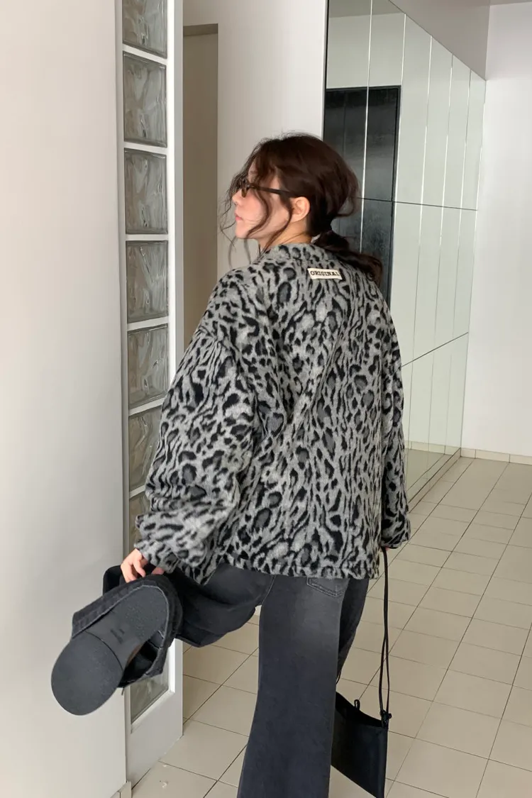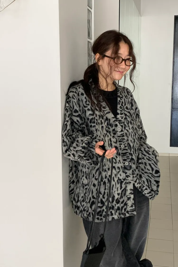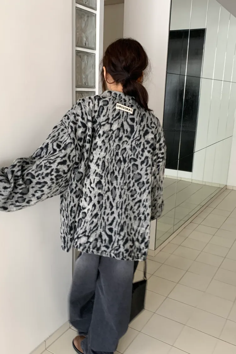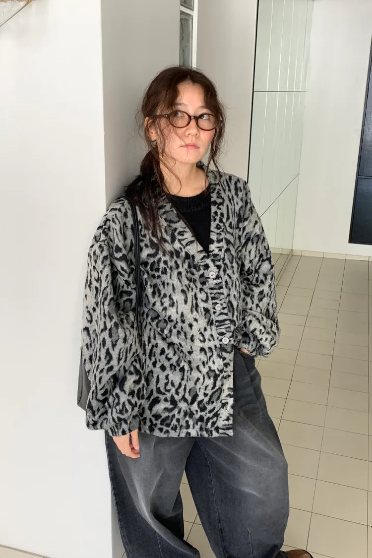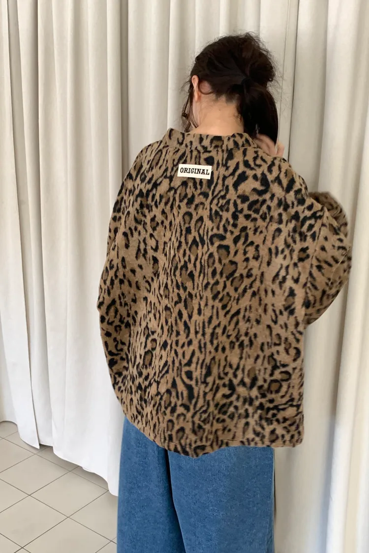 OTU16豹紋慵懶.落肩寬鬆毛料外套