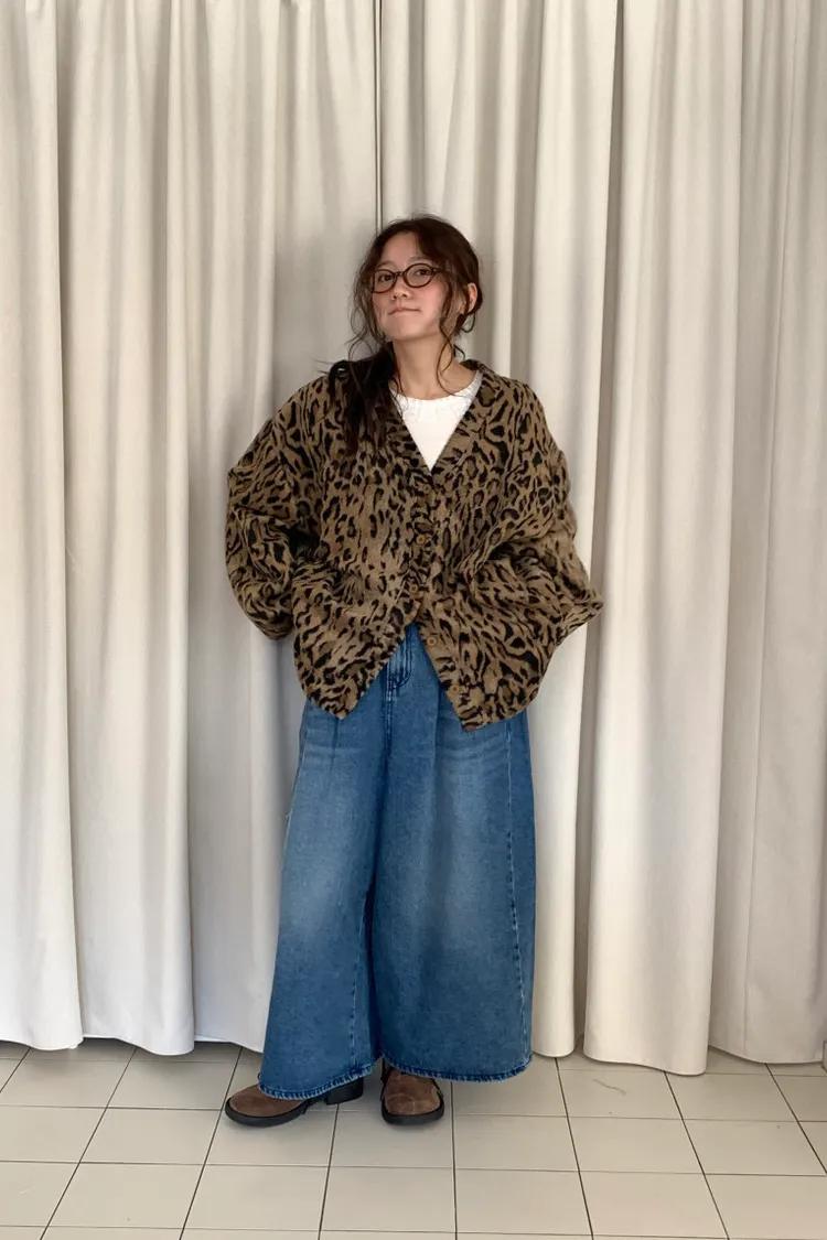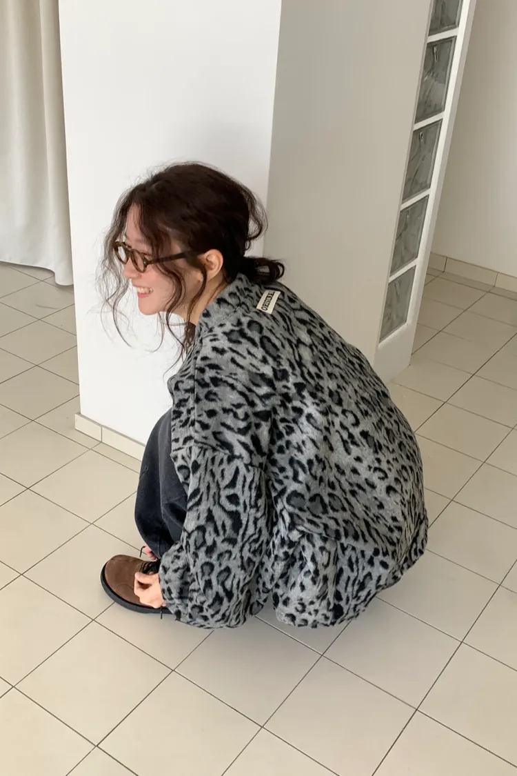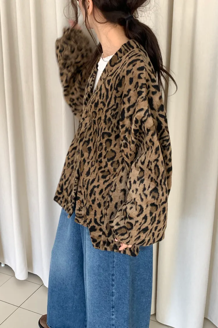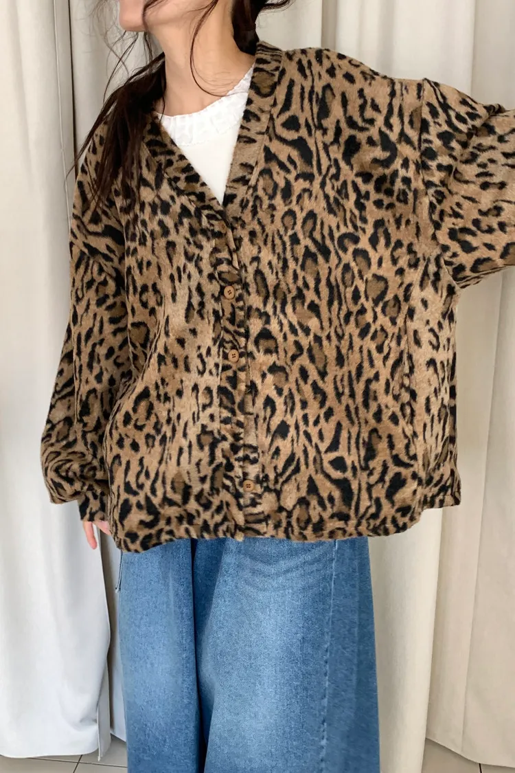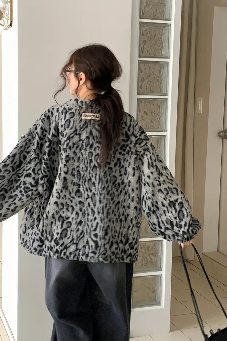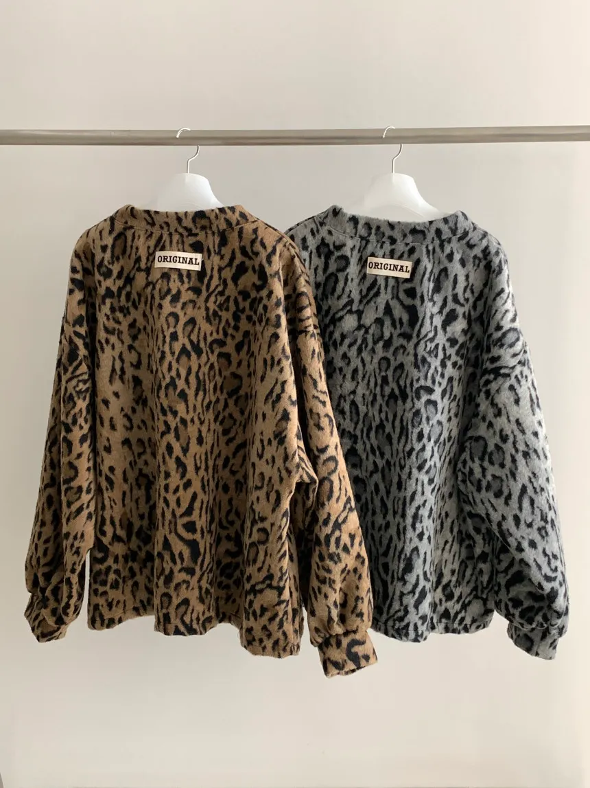 OTU16豹紋慵懶.落肩寬鬆毛料外套