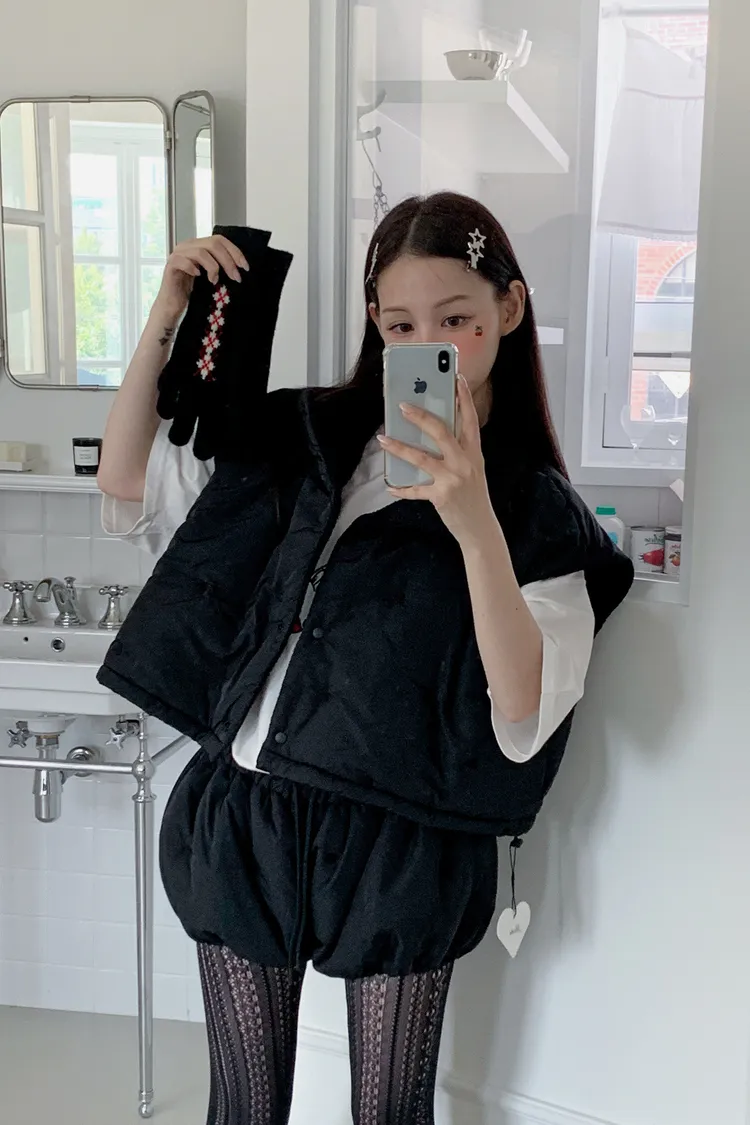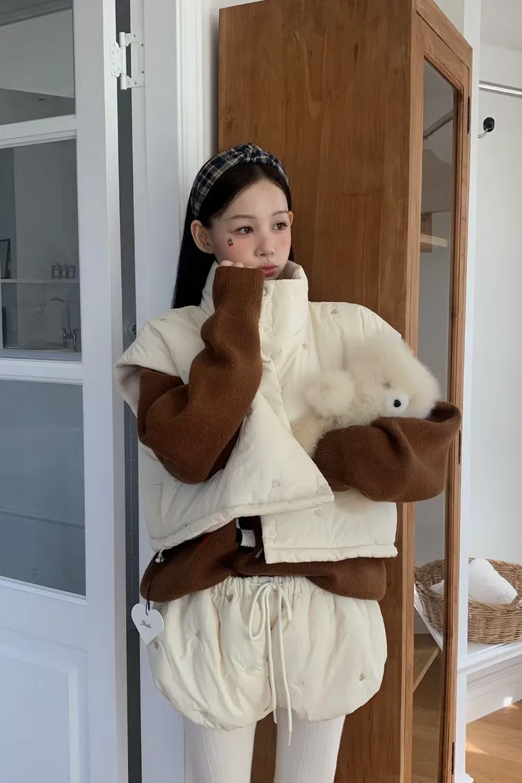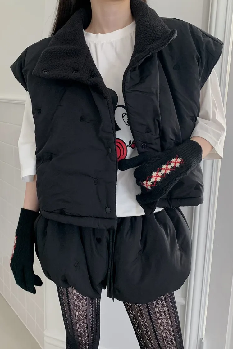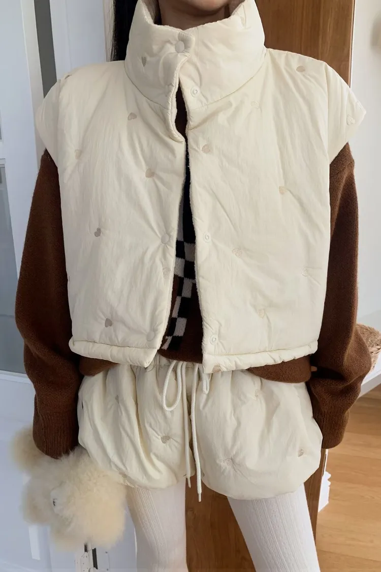 OTU21雙面暖暖愛心刺繡鋪棉背心外套