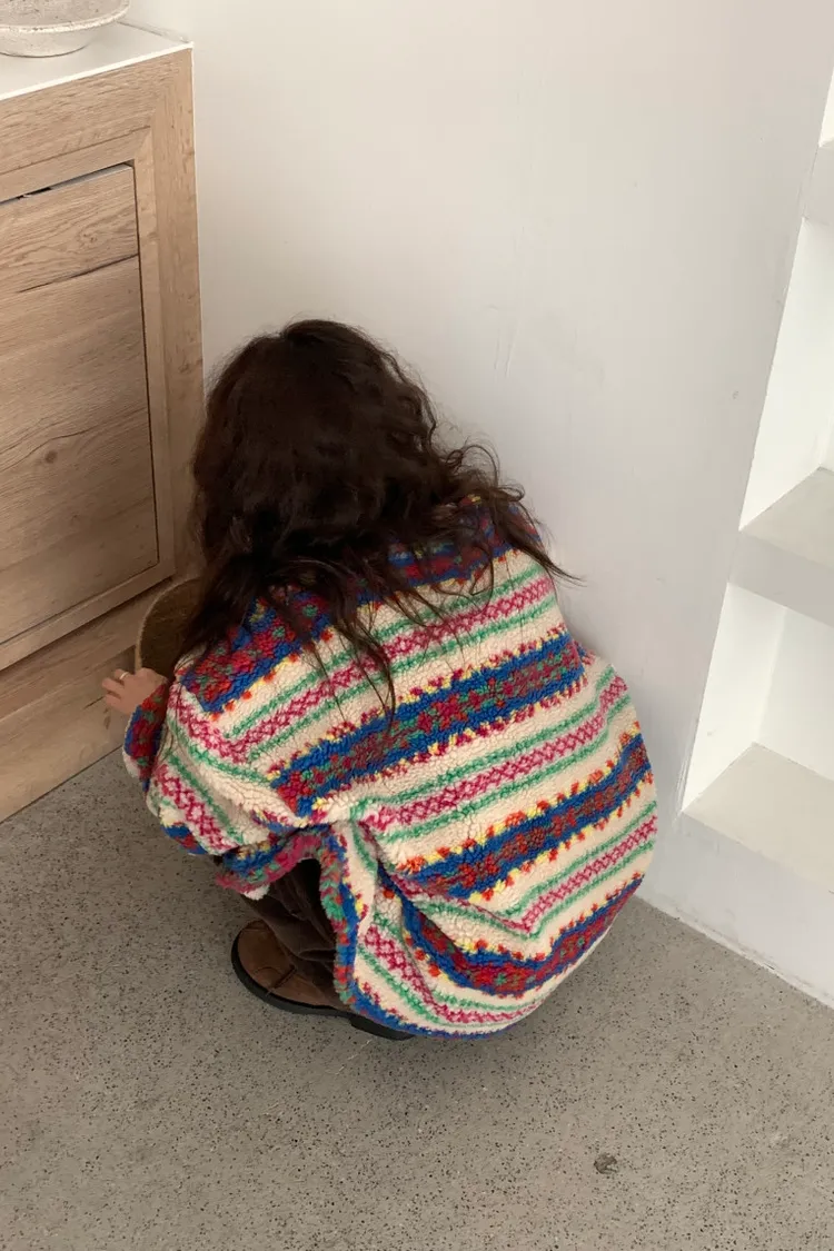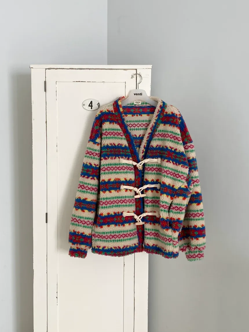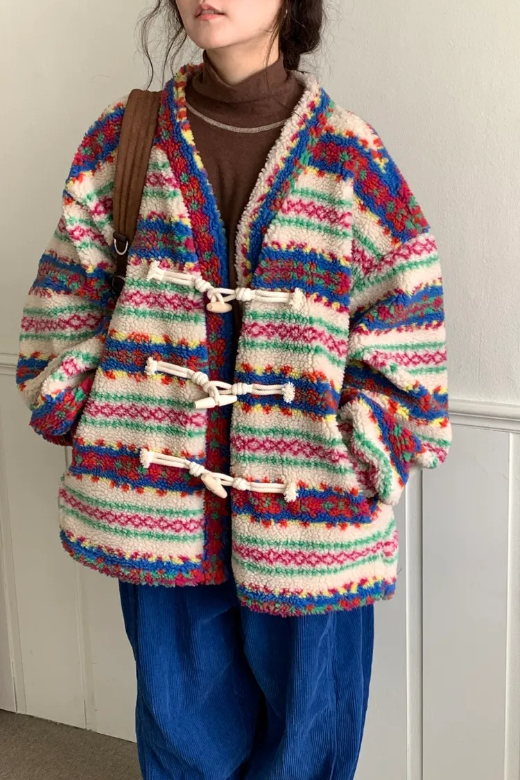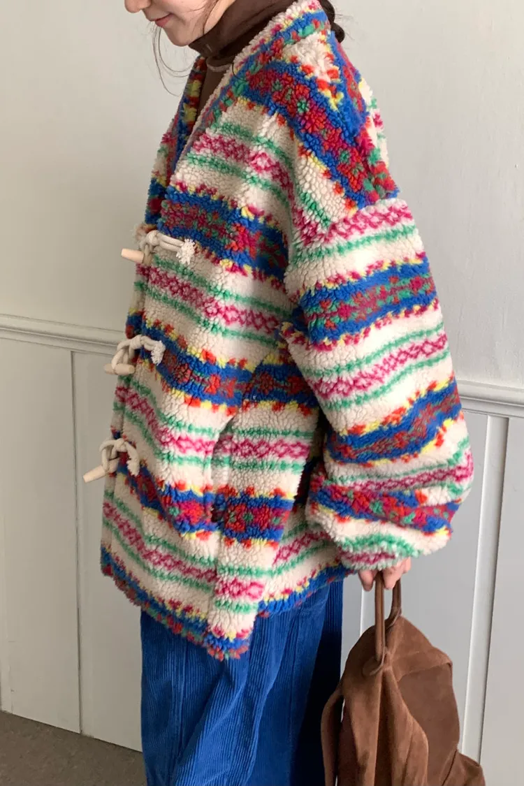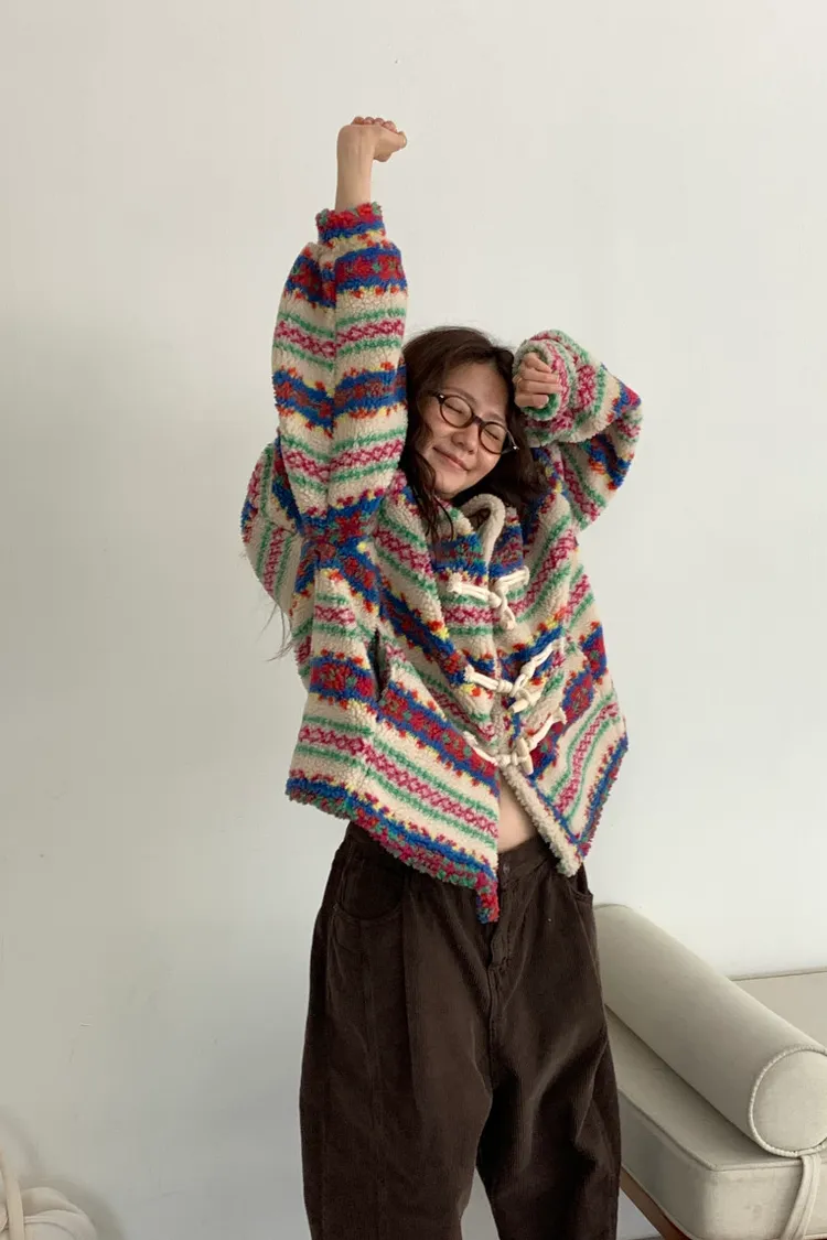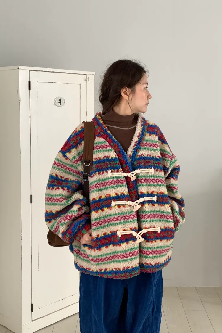 費爾島圖騰搭配牛角扣設計,甜美又帶小巧思