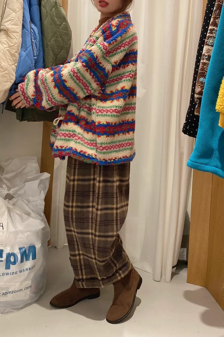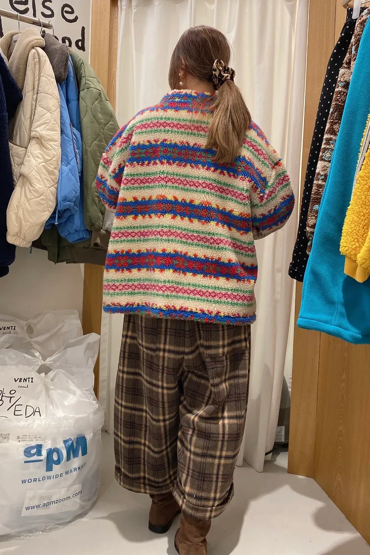 配色超級可愛~有厚度的搖粒絨羊羔毛面料,柔軟保暖又舒適