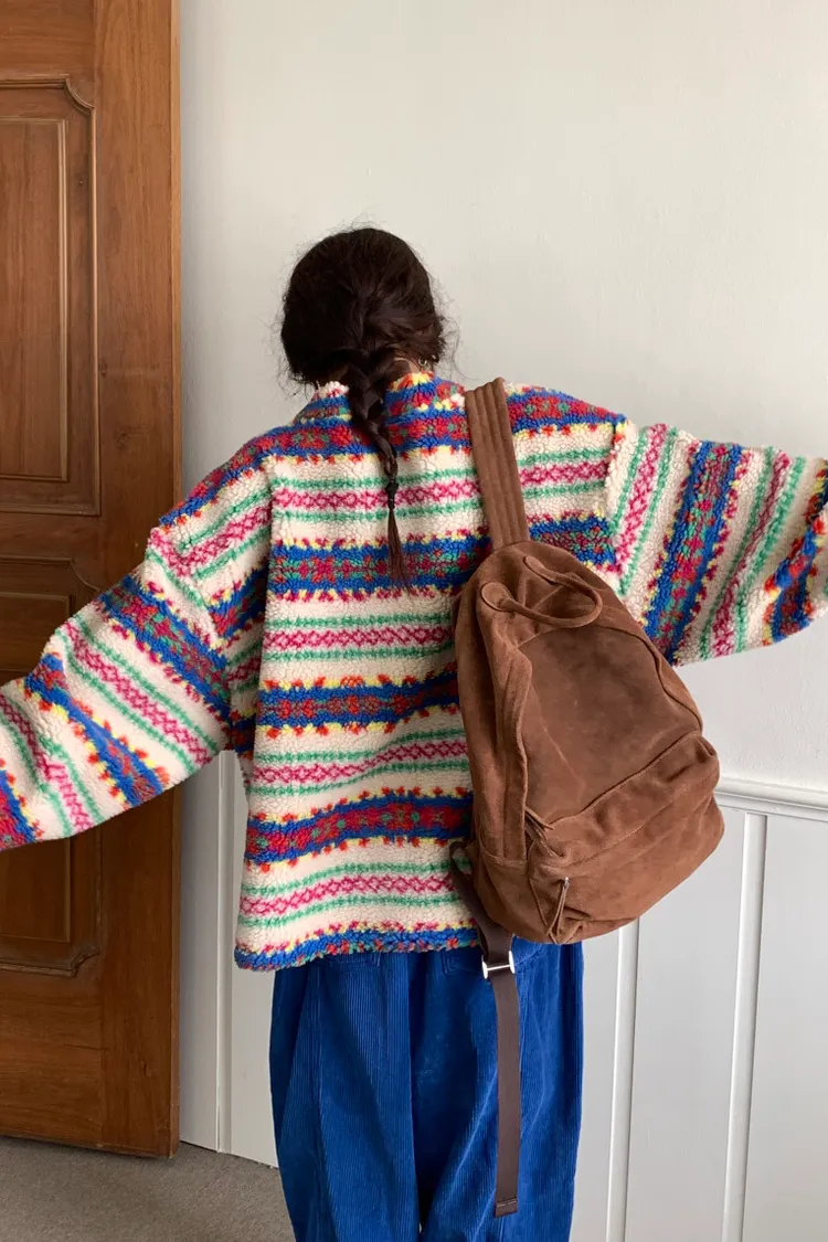 OTU27費爾島圖騰羊毛10%搖粒絨外套