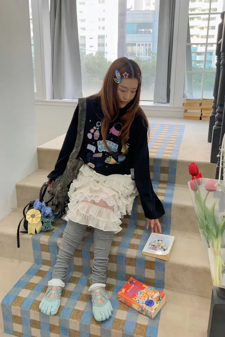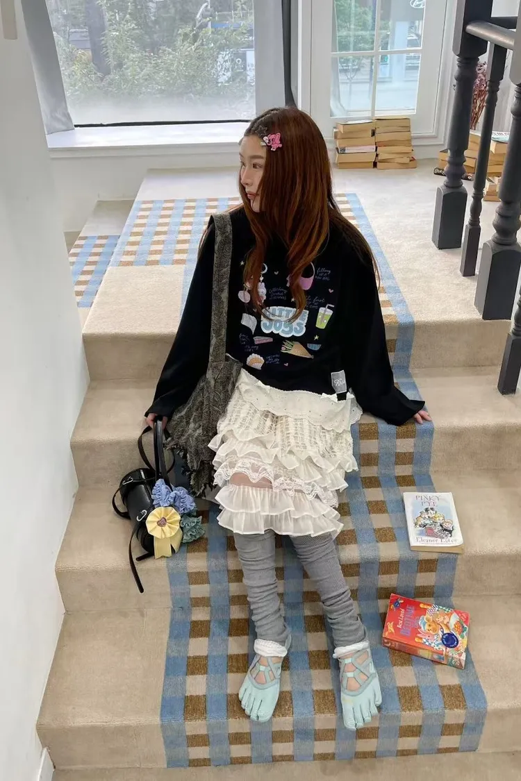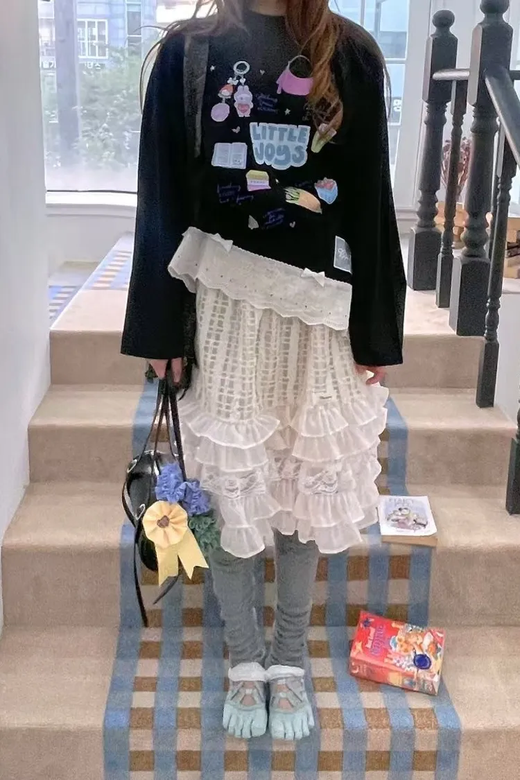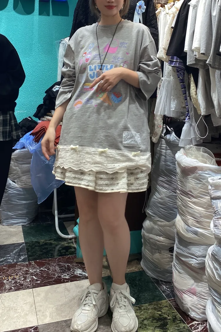 下擺有蝴蝶結緞帶和熊熊布蕾絲拼接~很精緻可愛
