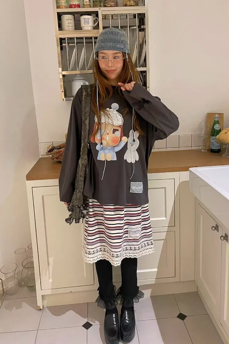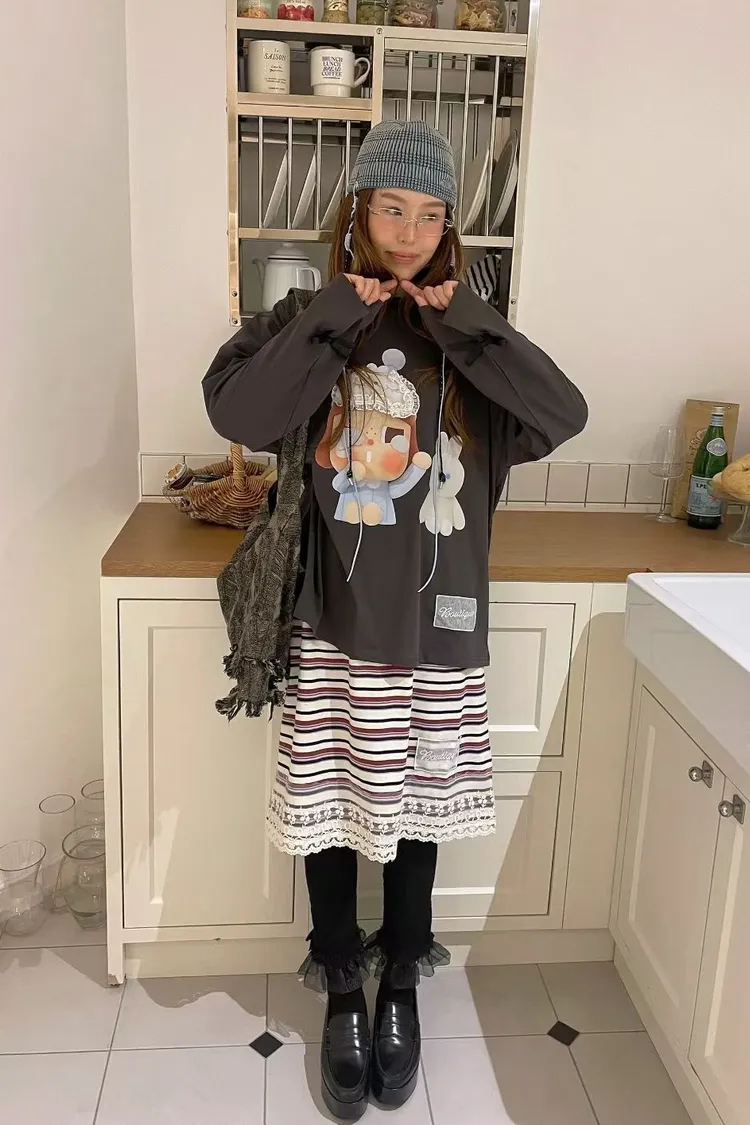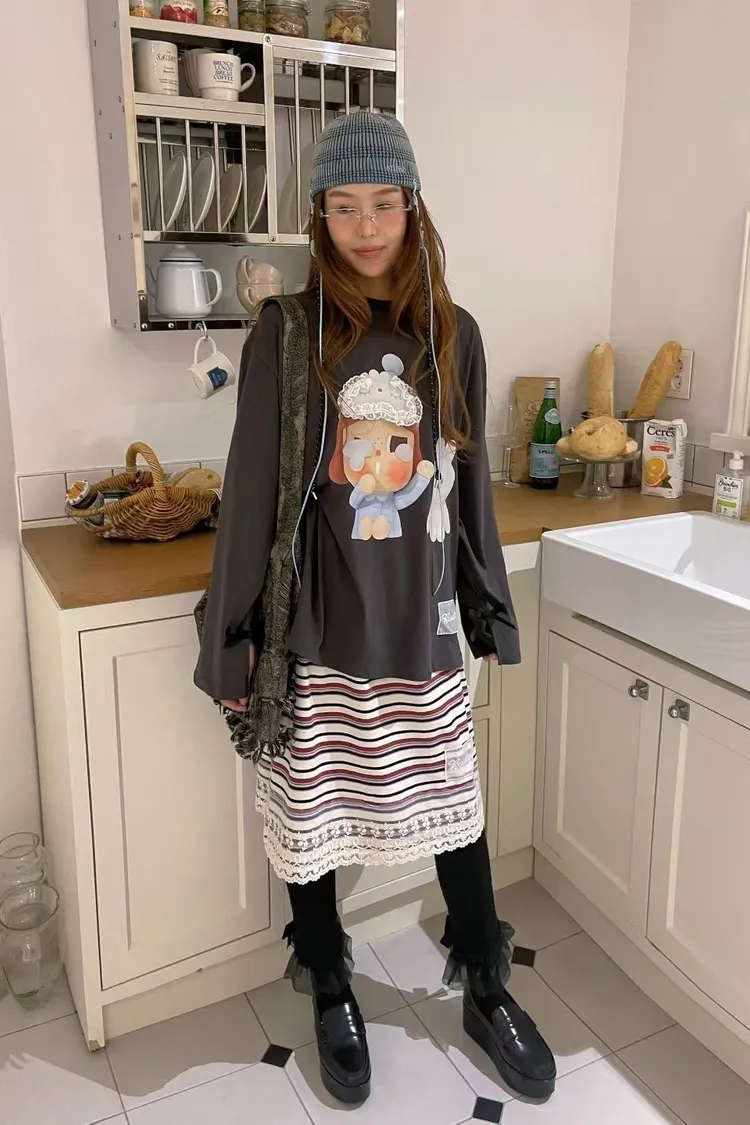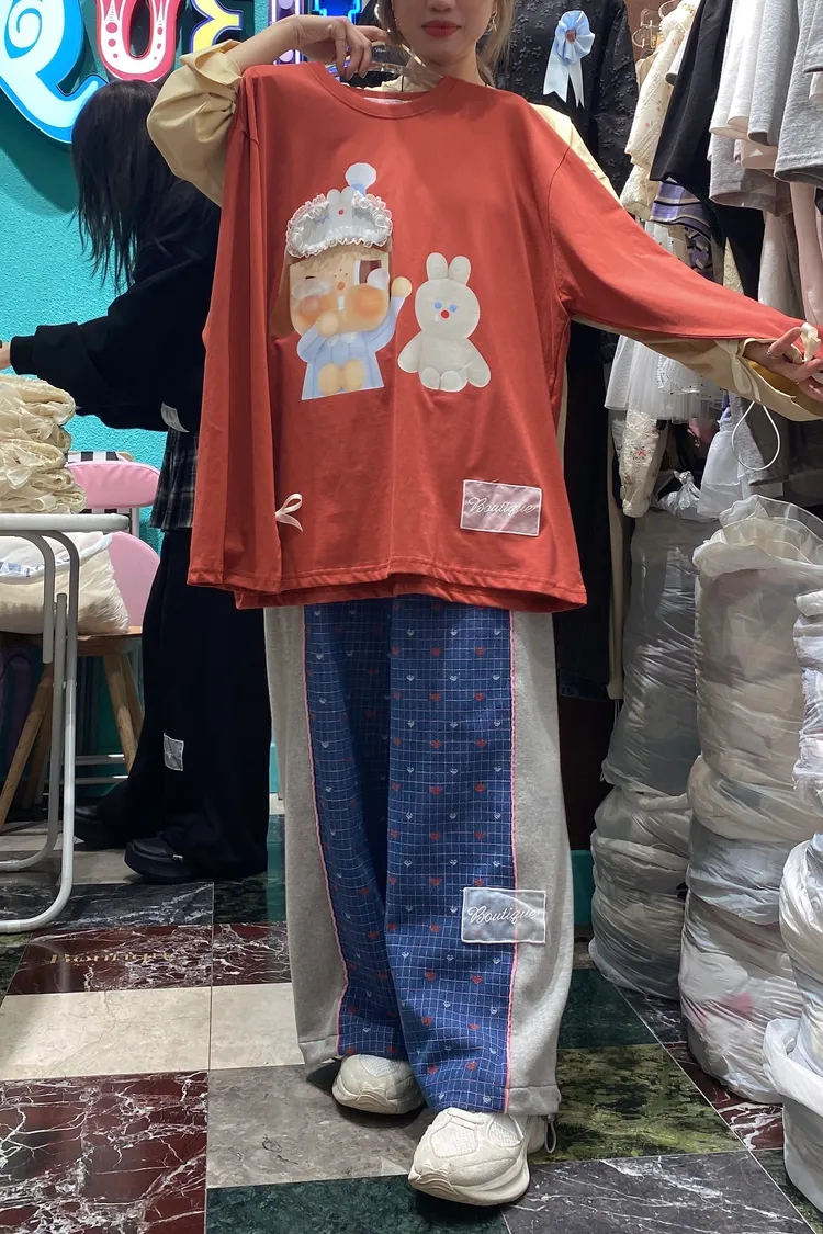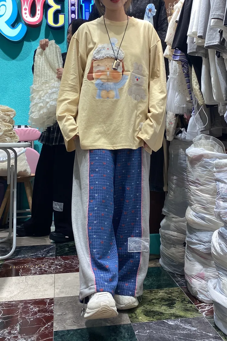 棉料材質、落肩寬鬆蓋臀版型機修飾身形,S-XL妞都可以穿 手袖有開衩和蝴蝶結緞帶點綴,舉手投足都甜甜的 最可愛的是哭娃穿著睡衣、戴著蕾絲緞帶眼罩 身旁還有萌萌兔兔相伴,光看就覺得療癒到心尖 穿上它絕對成為大家目光的焦點