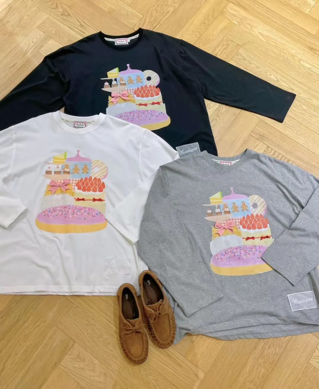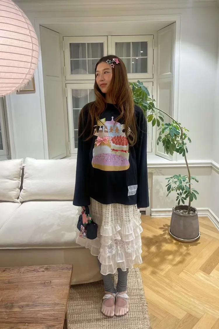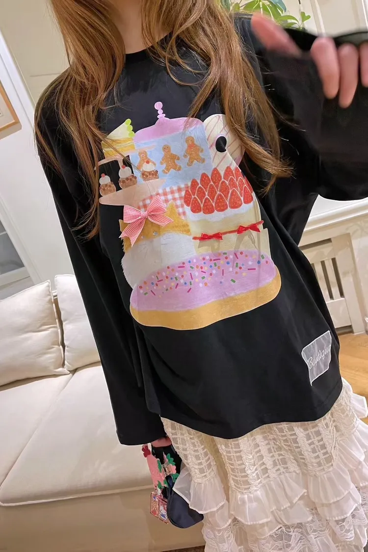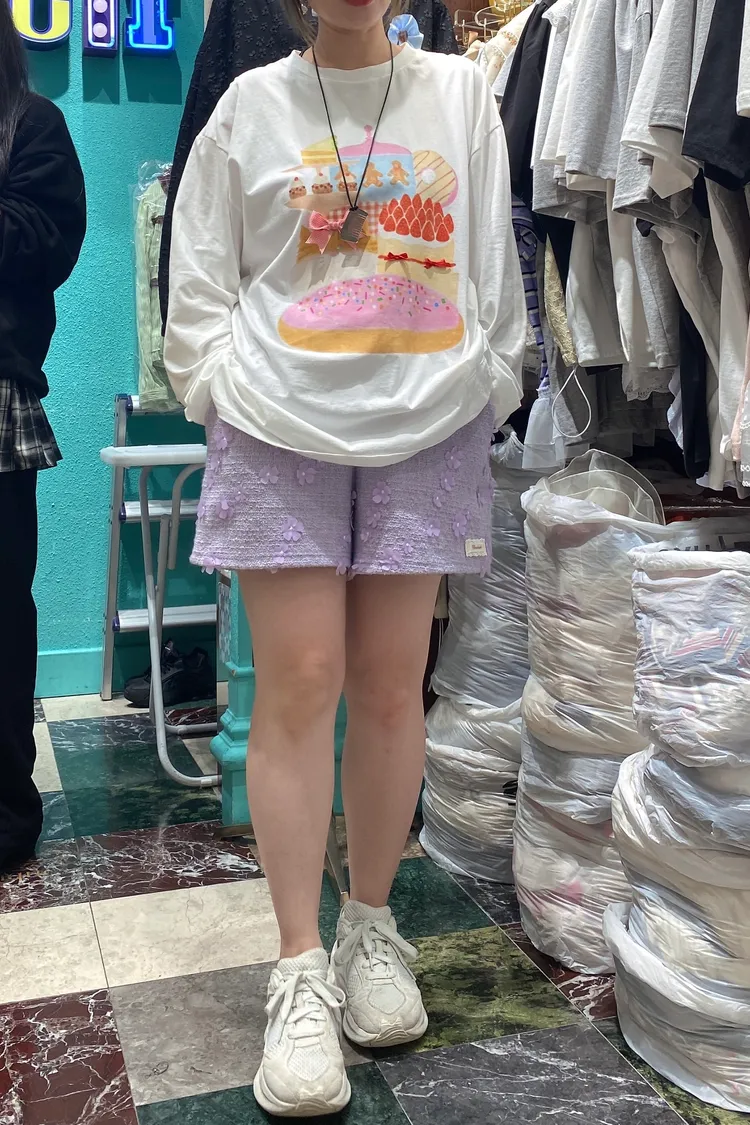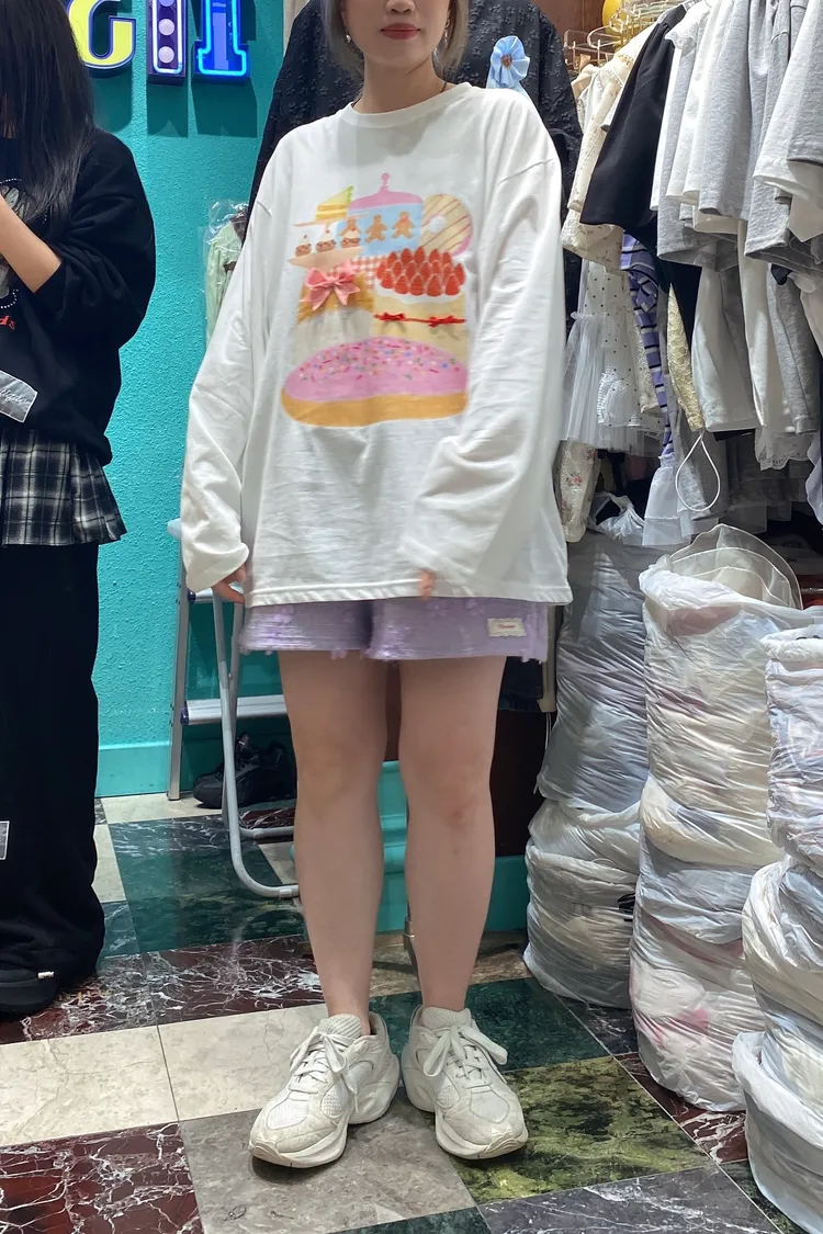 薄棉料材質、落肩寬鬆蓋臀版型,S-XL妞都 衣服上印的圖案就像進入少女的童趣下午茶時光 滿滿可愛甜點小物陪伴,讓人看了心情都好好~ 再搭配立體蝴蝶結緞帶裝飾,更添俏皮小巧思🎀 怎麼穿都超夢幻,讓日常也能像派對一樣繽紛