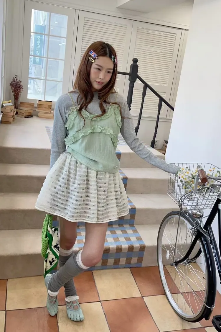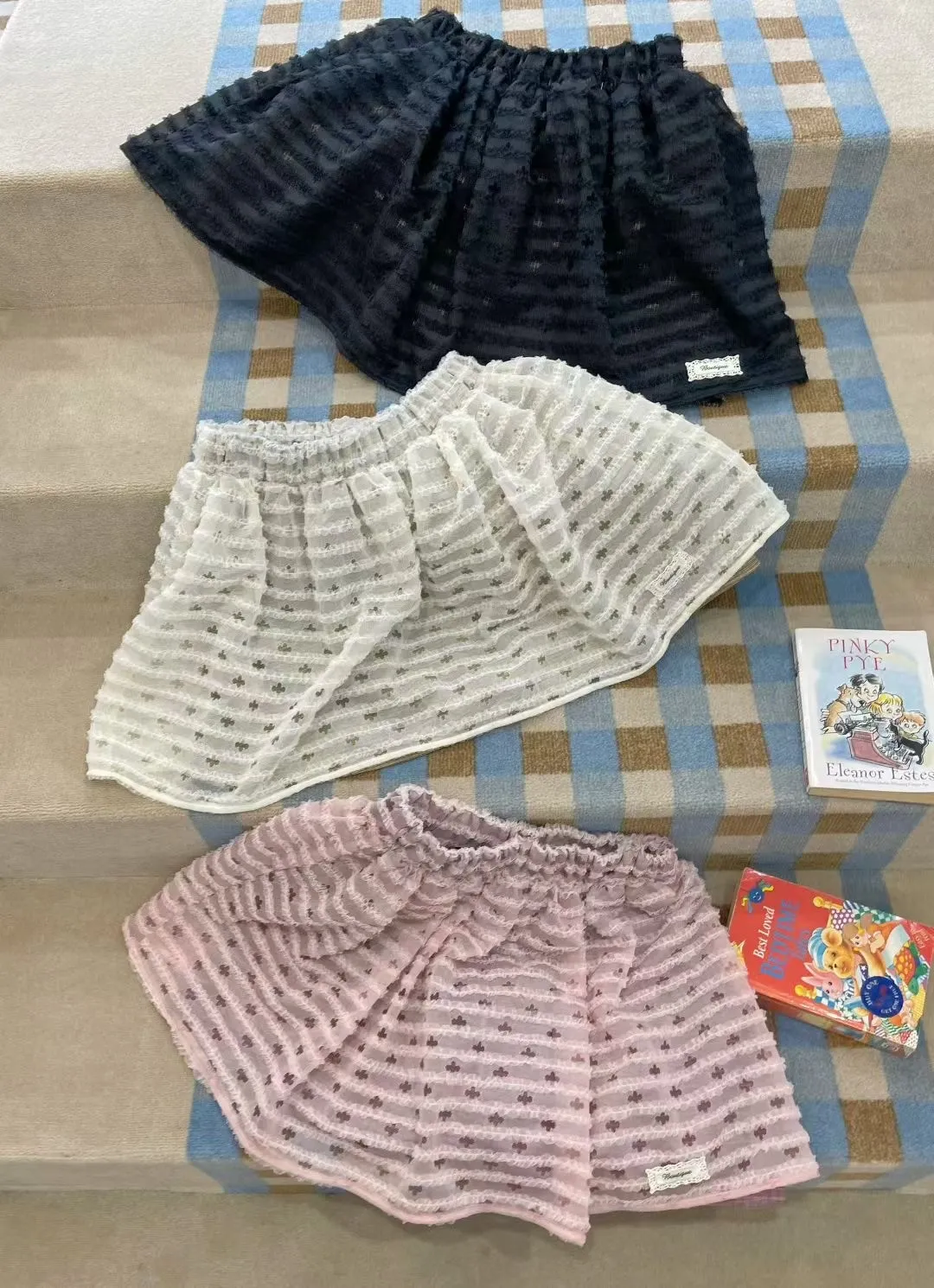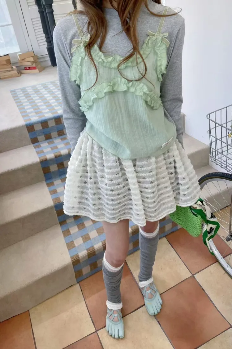 三層面料拼接設計感滿滿,細節讓人一眼愛上! 最外層是透膚抓折花朵網紗帶點飄逸浪漫 第二層是格紋,甜美感瞬間提升 第三層是內襯小褲子,活動自在又不怕曝光 腰部整圈彈性鬆緊,S-L妞都可以穿 無論是日常休閒還是小約會,都能穿出俏皮又可愛的氛圍