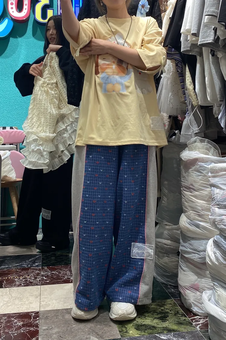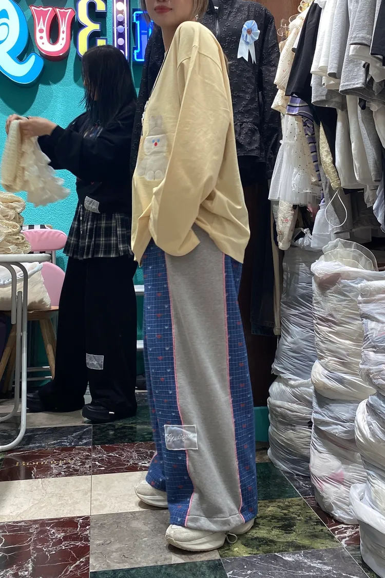愛心刺繡牛仔拼接棉料,讓簡單的長褲瞬間萌度爆表 腰部整圈彈性鬆緊,S-XL妞都可以穿 藍色滾邊是粉色、深藍滾邊是黑色 褲腳有抽繩收縮不拖地,活動自在又俏皮 甜美又有個性,日常穿搭輕鬆吸睛 韓國熱銷色是深藍