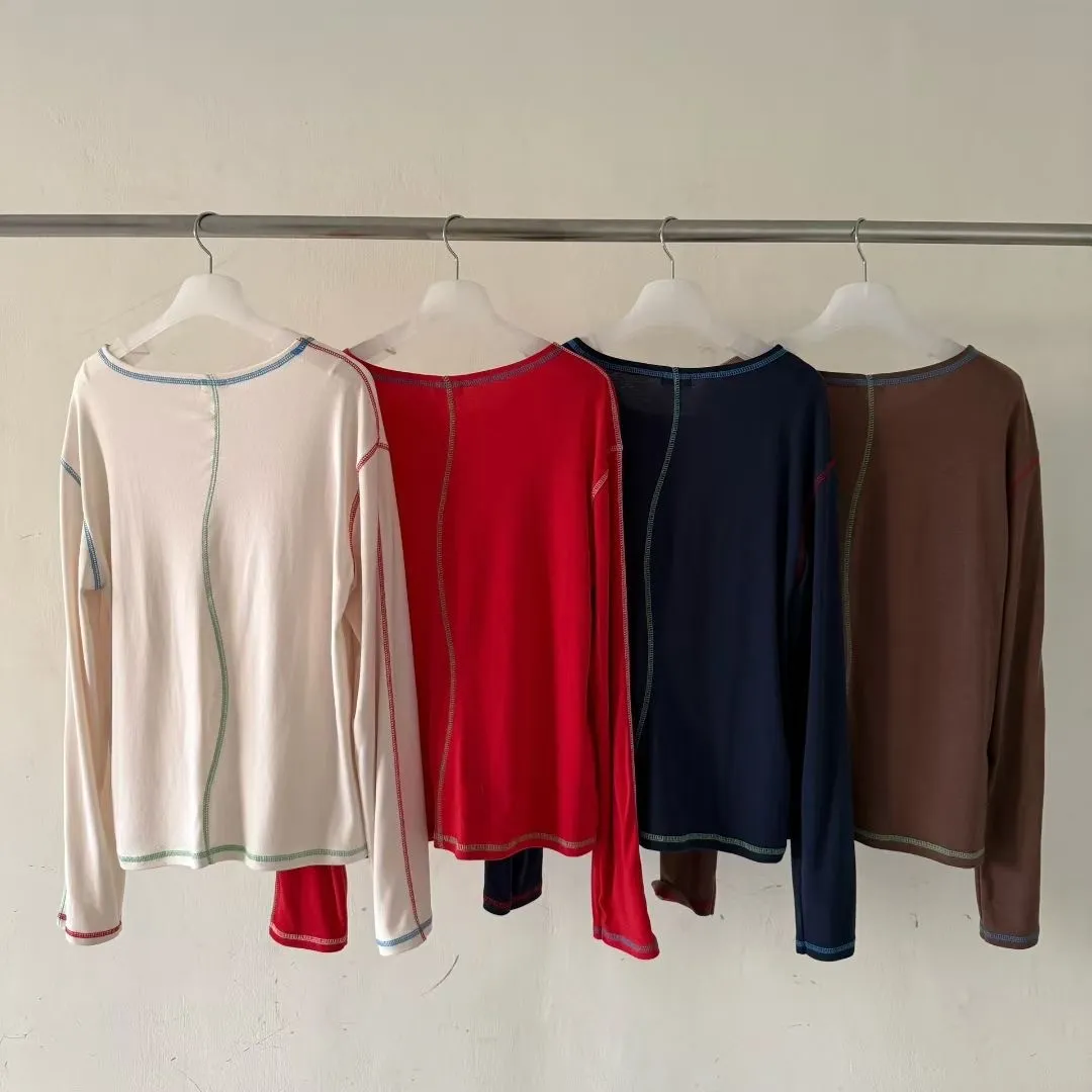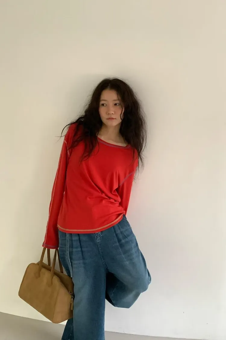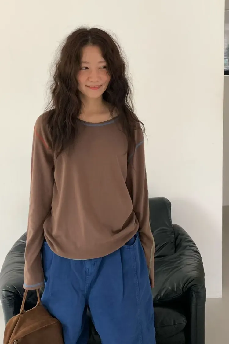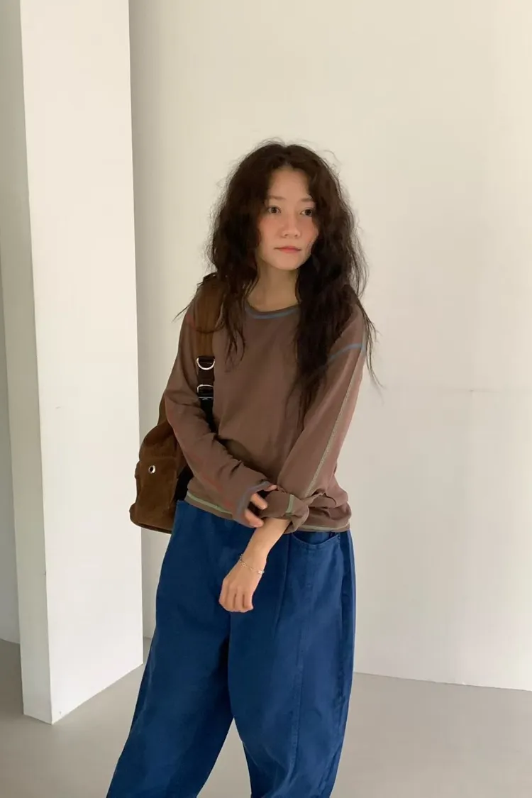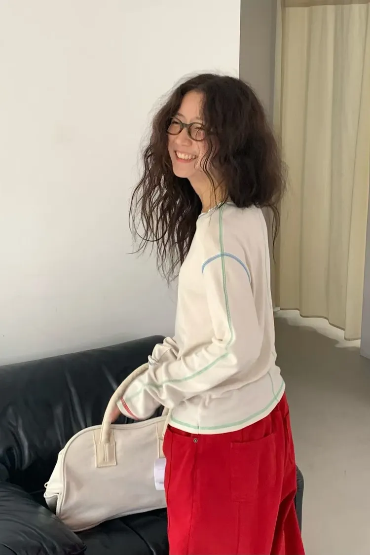 純色底搭配撞色三種不同顏色的滾邊縫線,簡單卻超有設計感~