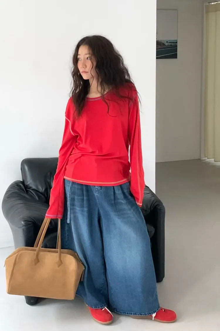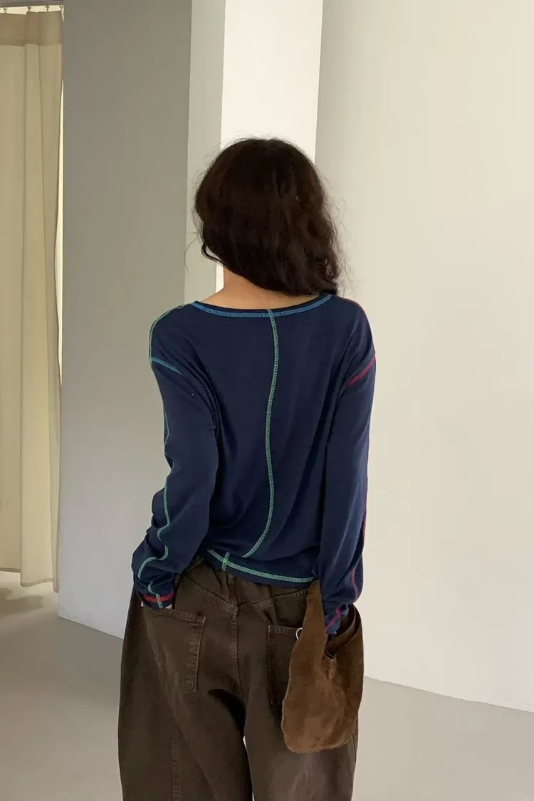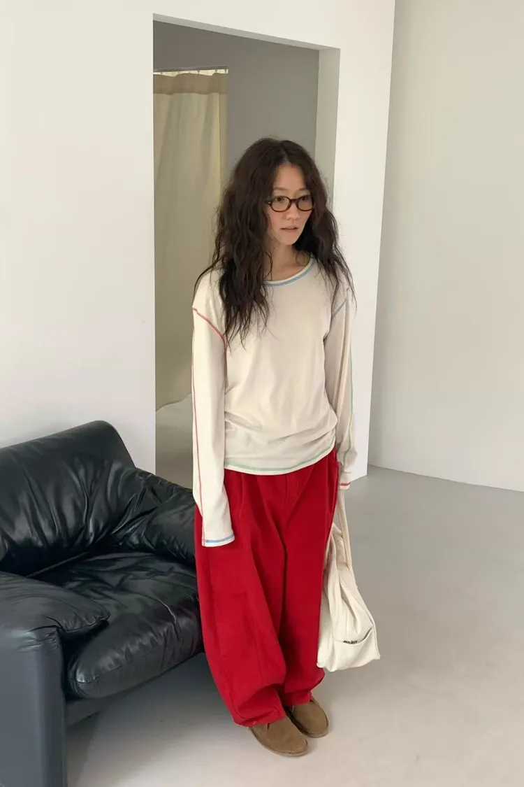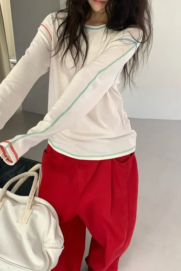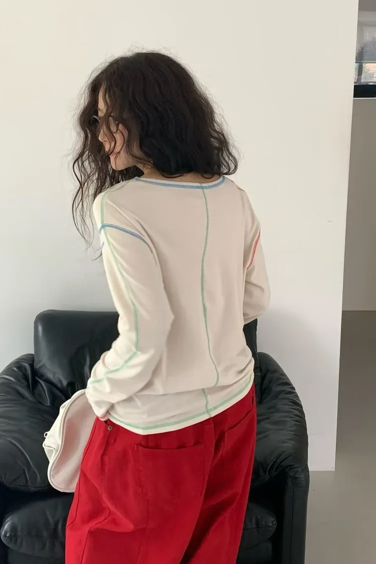 純色底搭配撞色三種不同顏色的滾邊縫線,簡單卻超有設計感~