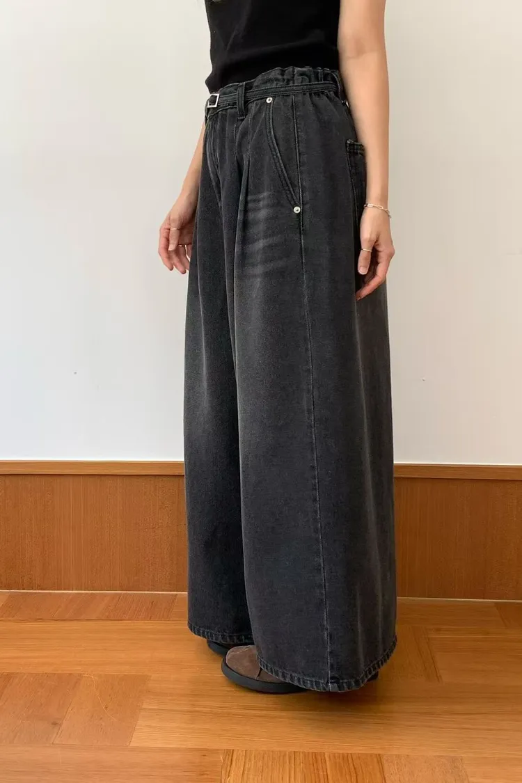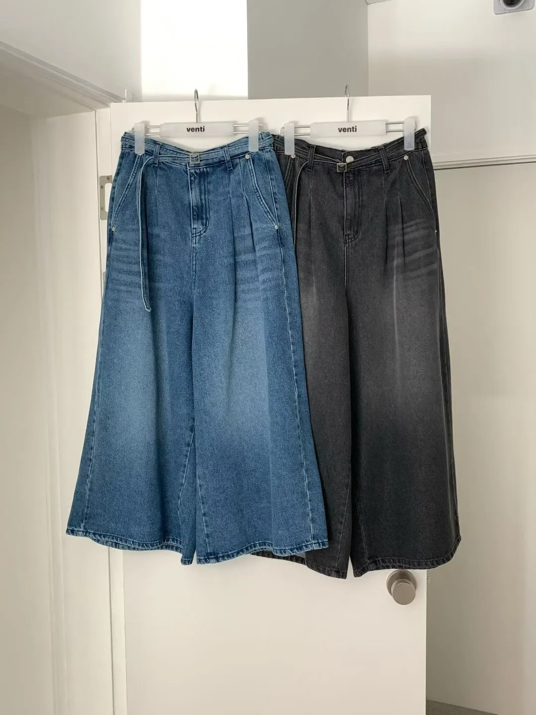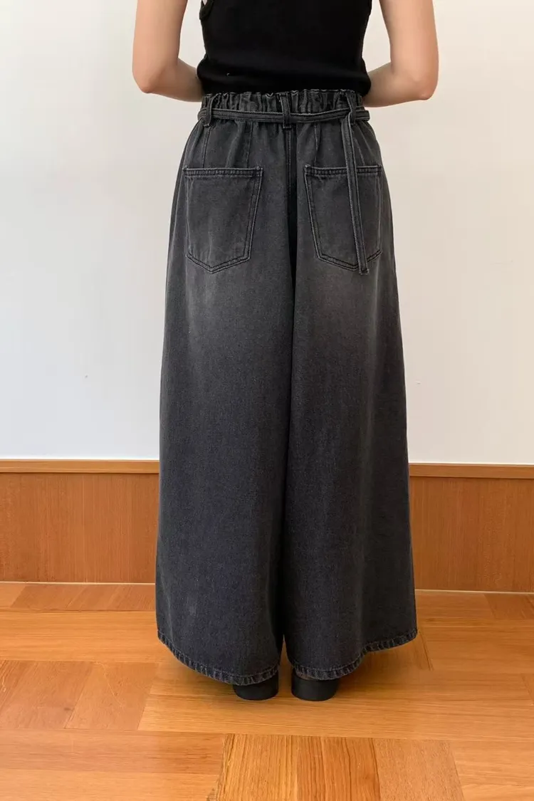 PLV03貓抓刷色牛仔A字裙褲*附腰帶ML