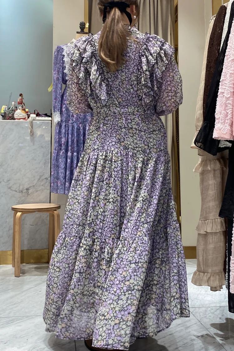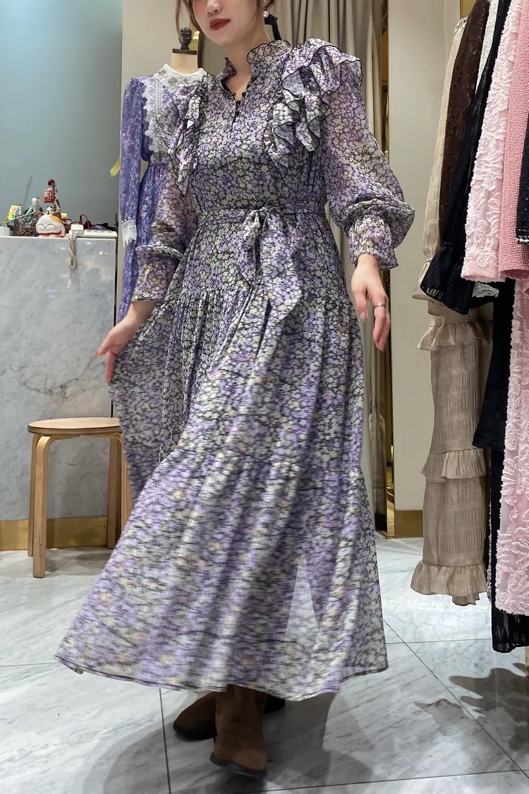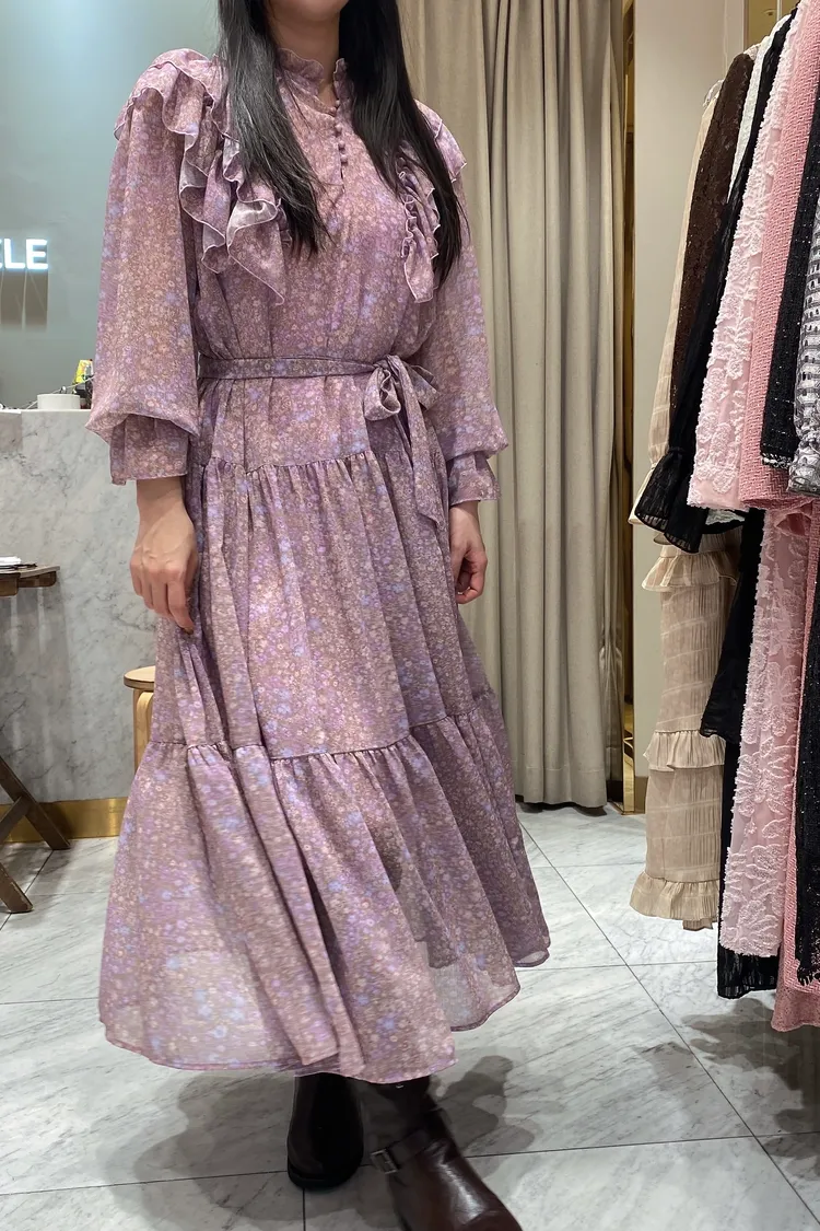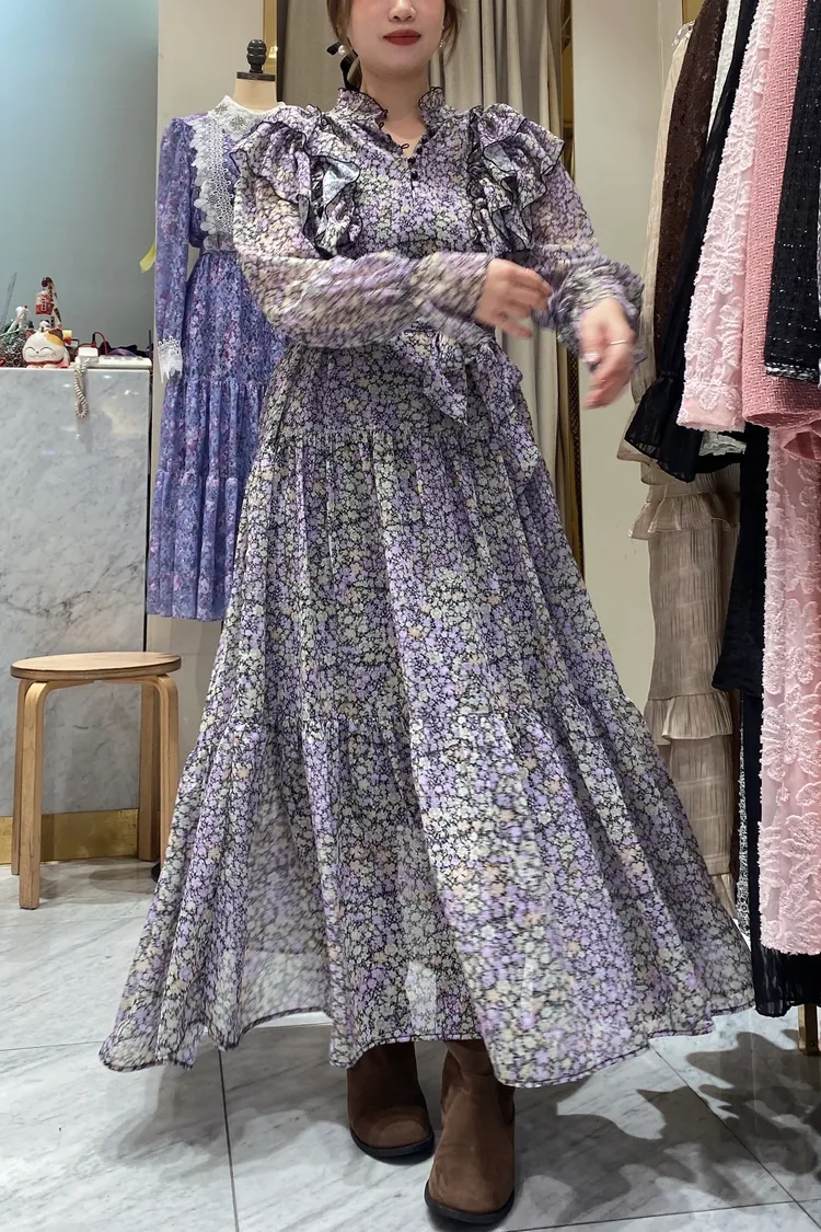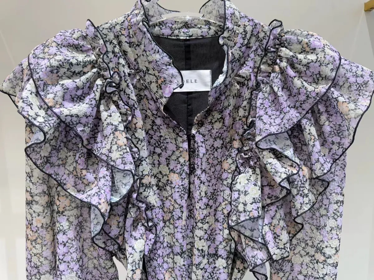 碎花圖紋輕飄飄雪紡料子,隨著走動輕盈搖曳,浪漫感滿分 寬鬆版型,S-L妞、孕媽咪都可以穿 領口排扣,全扣上就是荷葉立領、不全扣開幾個就變成小V領 胸到肩後拼接雙層波浪花邊加上袖口彈性鬆緊,細節甜美又不單調 有內襯艾蜜160公分穿到腳踝小幫手166公分穿到蓋小腿