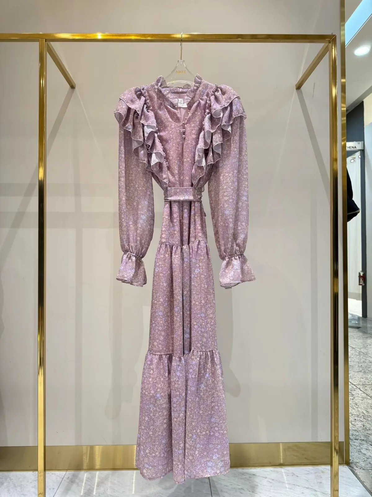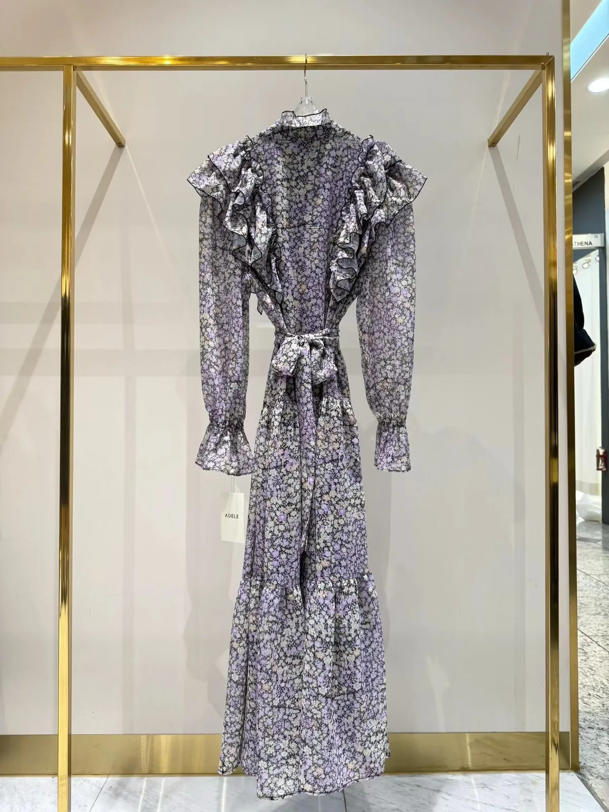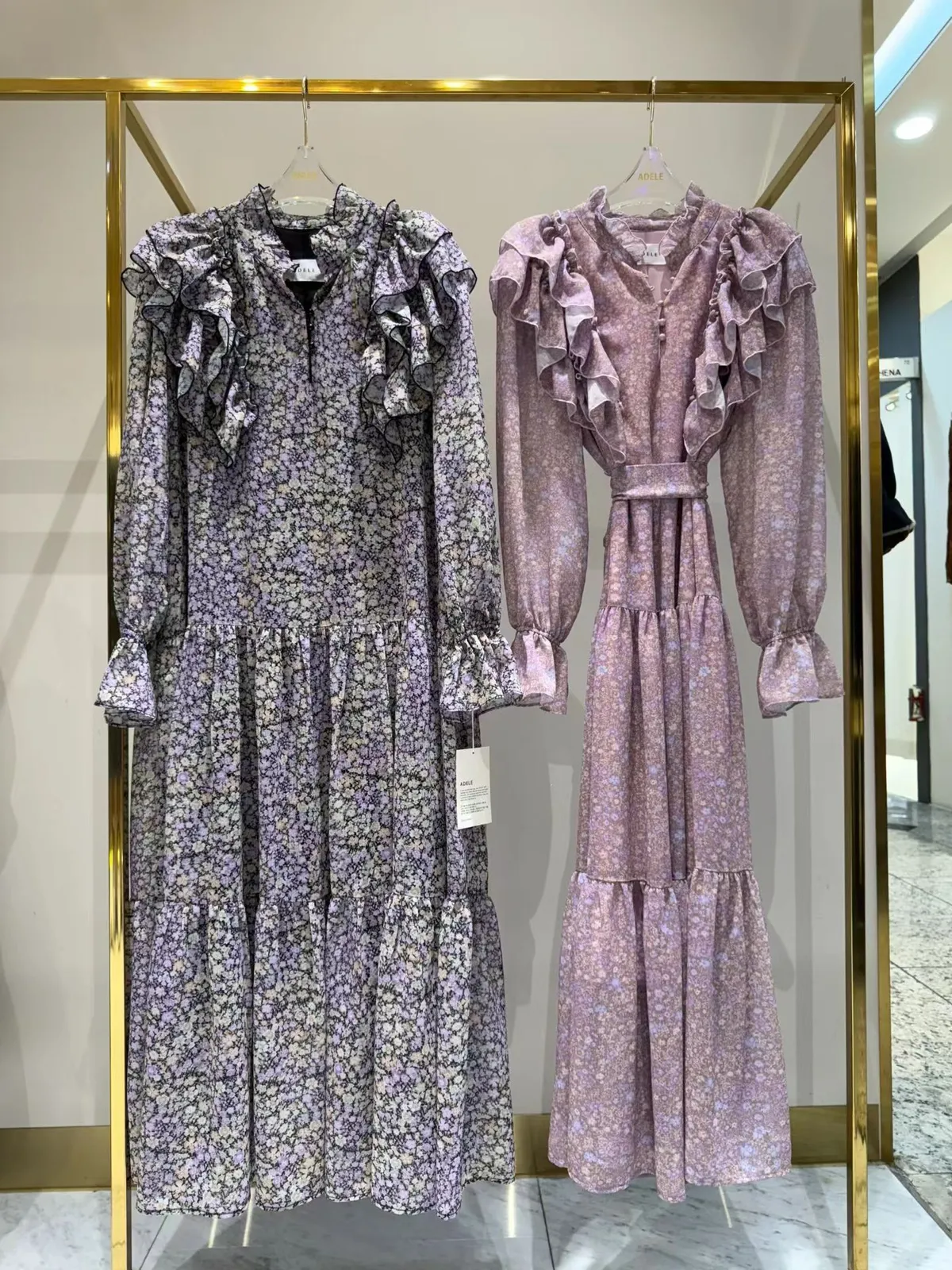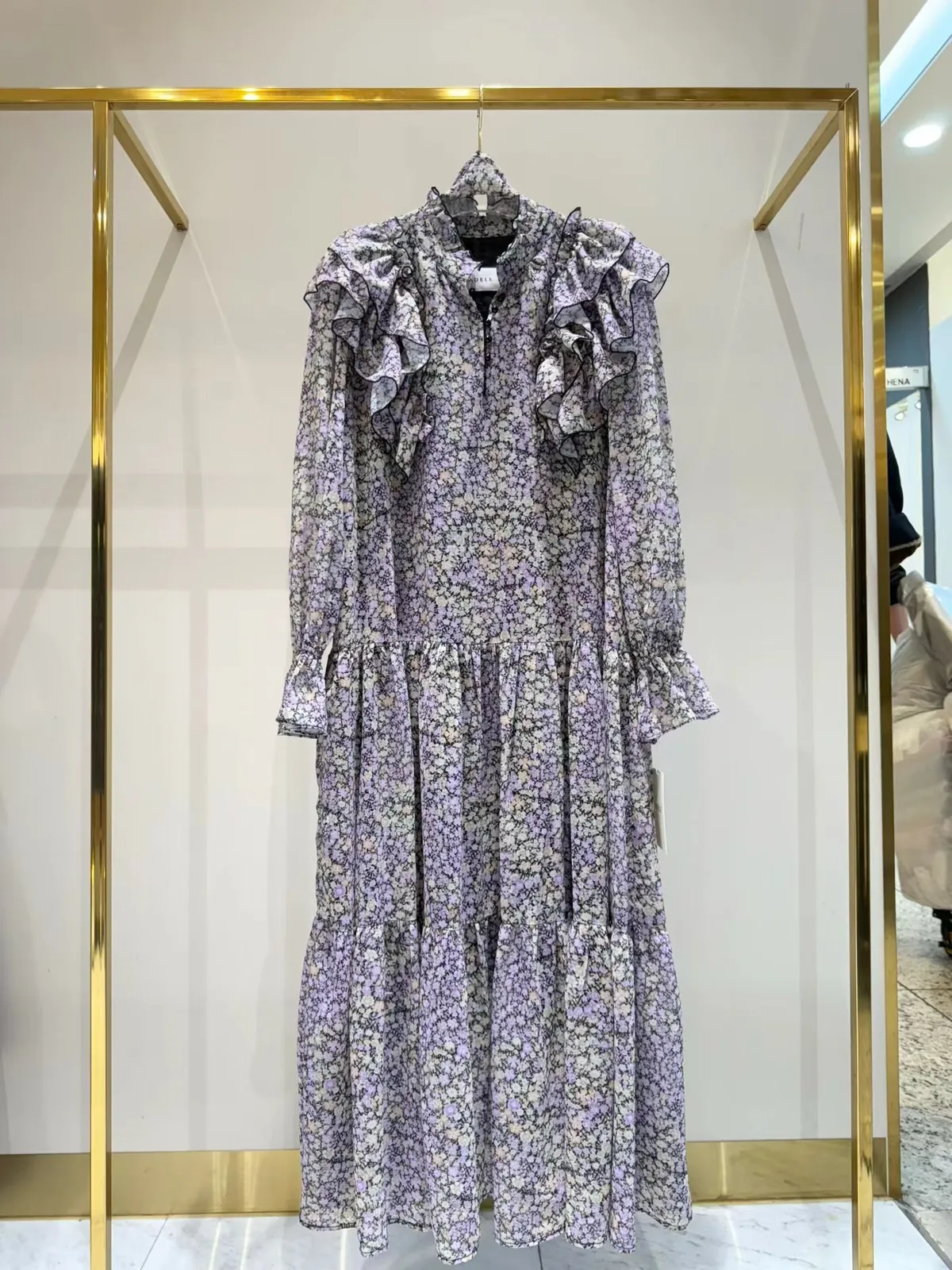 碎花圖紋輕飄飄雪紡料子,隨著走動輕盈搖曳,浪漫感滿分 寬鬆版型,S-L妞、孕媽咪都可以穿 領口排扣,全扣上就是荷葉立領、不全扣開幾個就變成小V領 胸到肩後拼接雙層波浪花邊加上袖口彈性鬆緊,細節甜美又不單調 有內襯艾蜜160公分穿到腳踝小幫手166公分穿到蓋小腿