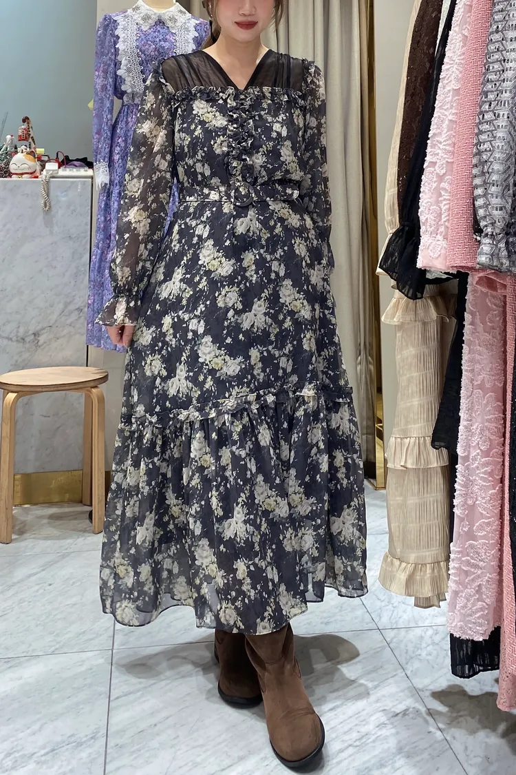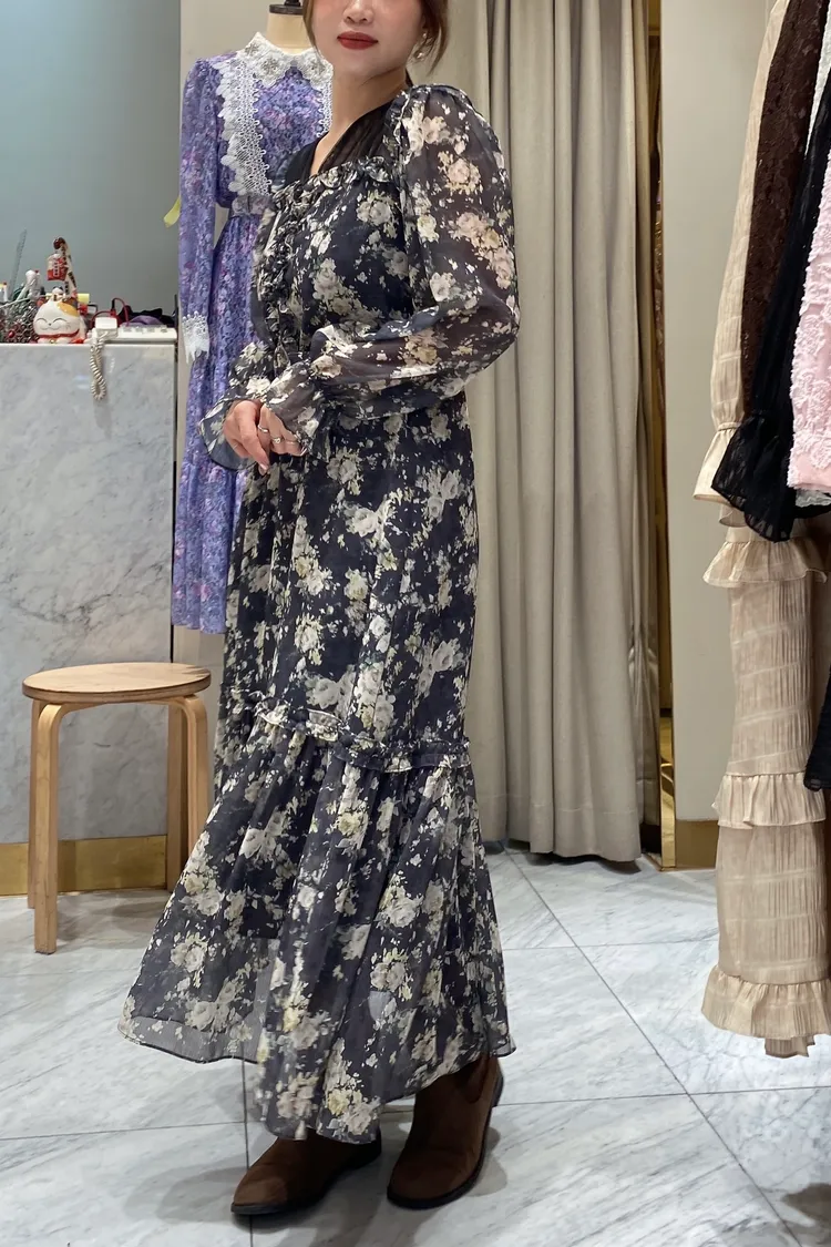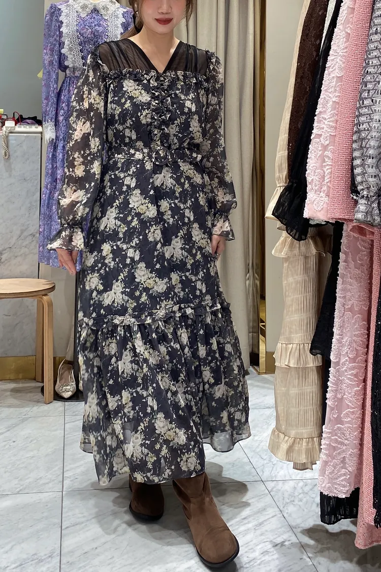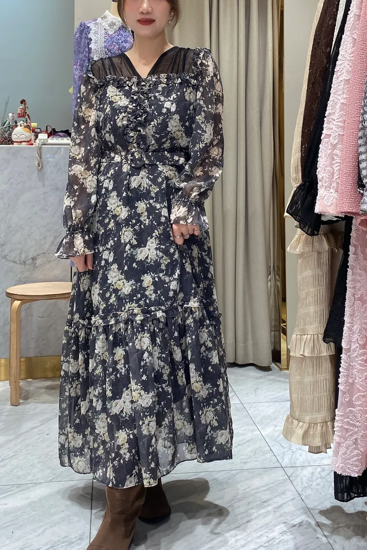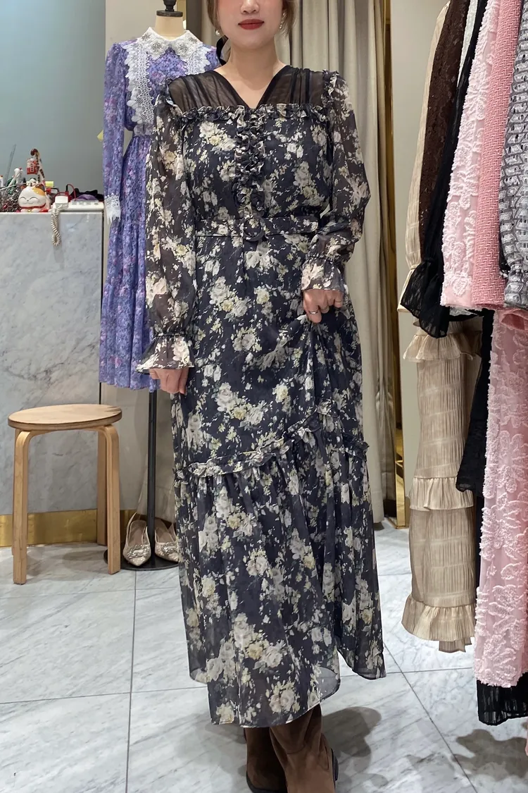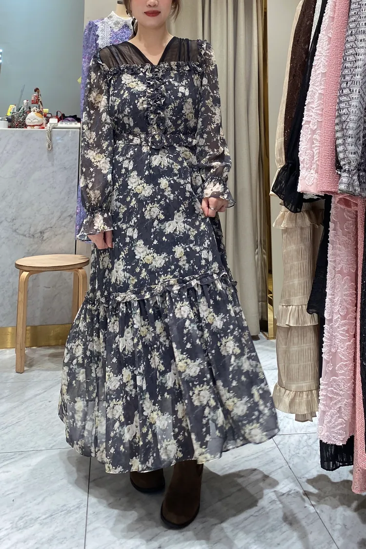 帶有紋理的輕飄飄雪紡面料,搭配滿版花卉印花