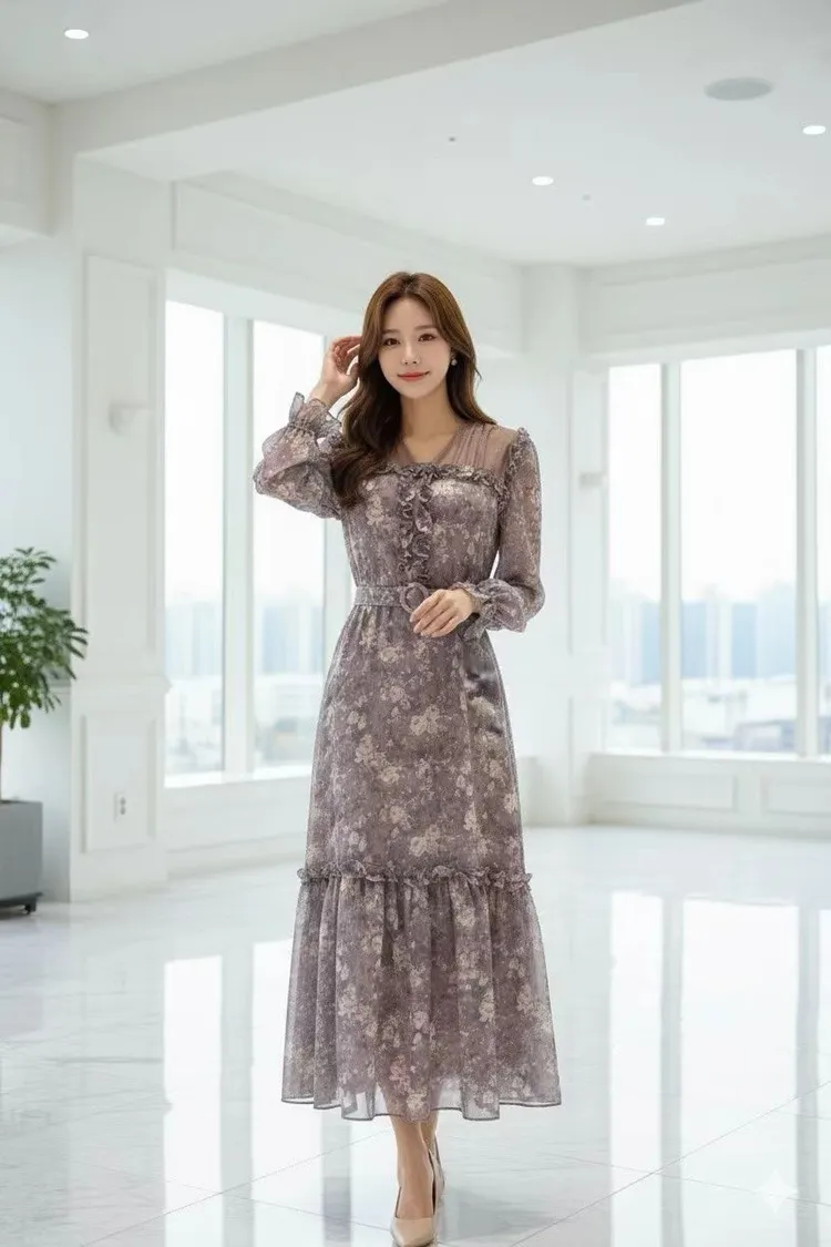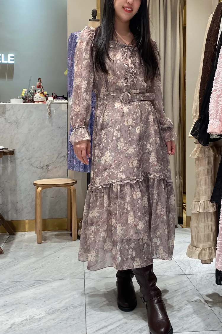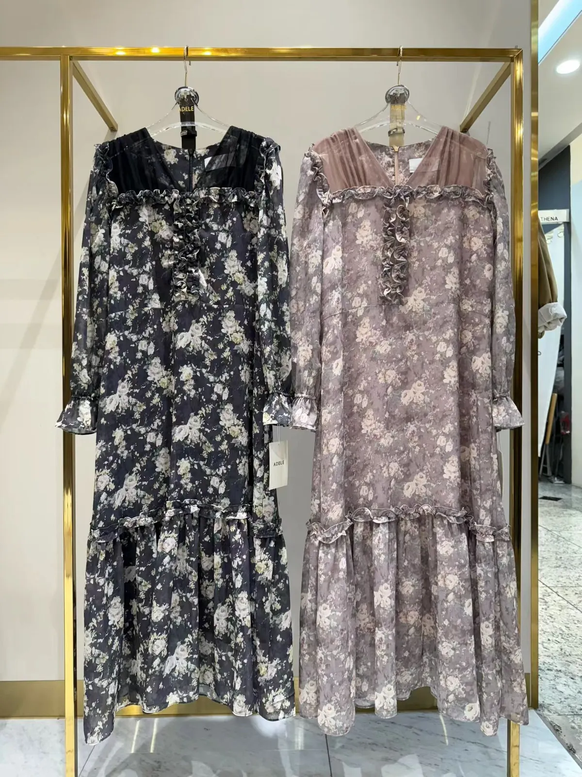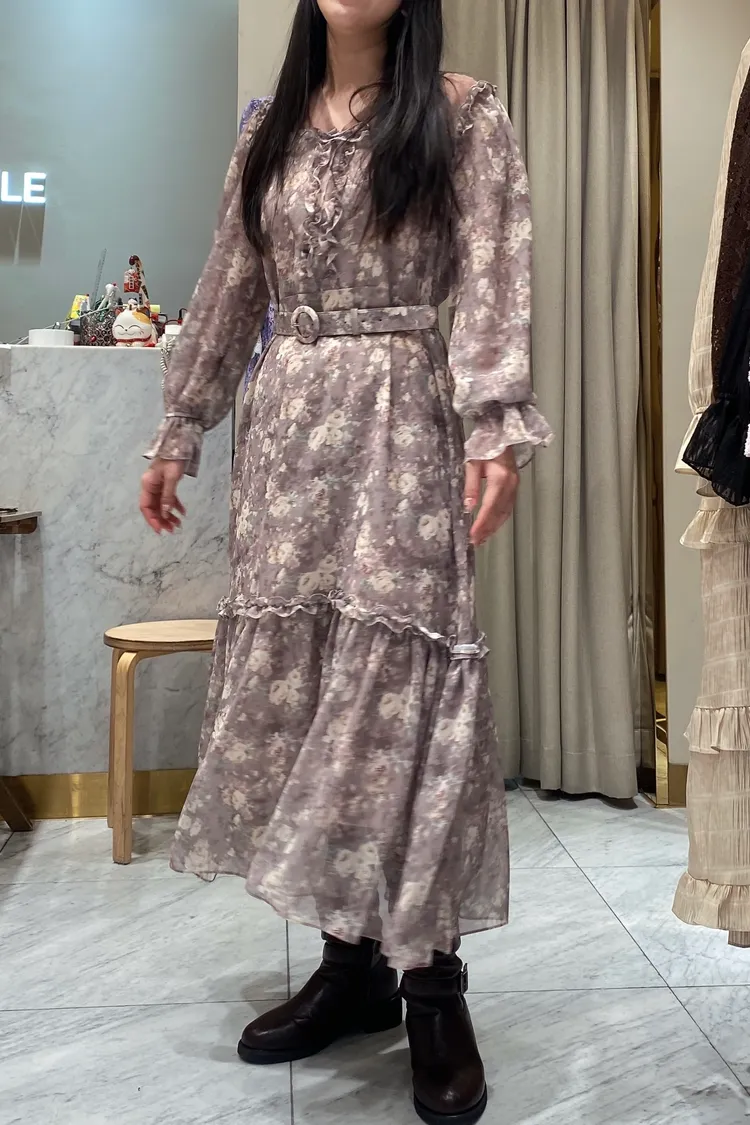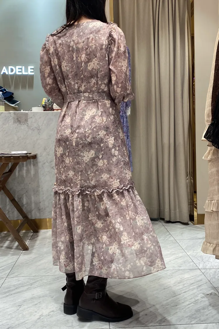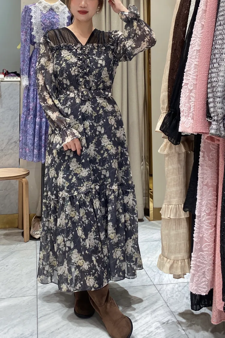 帶有紋理的輕飄飄雪紡面料,搭配滿版花卉印花