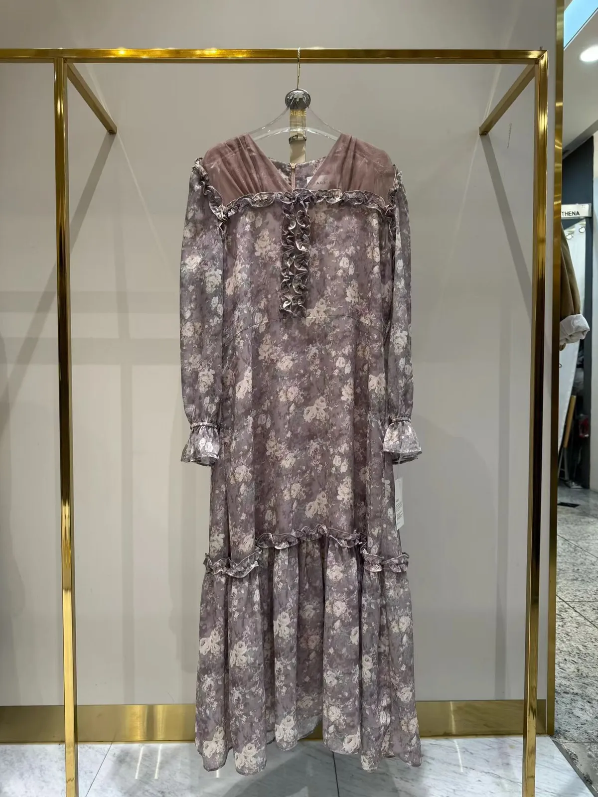 胸前、領口到裙擺的抓皺花邊拼接,細節感滿滿