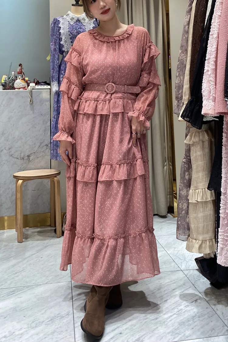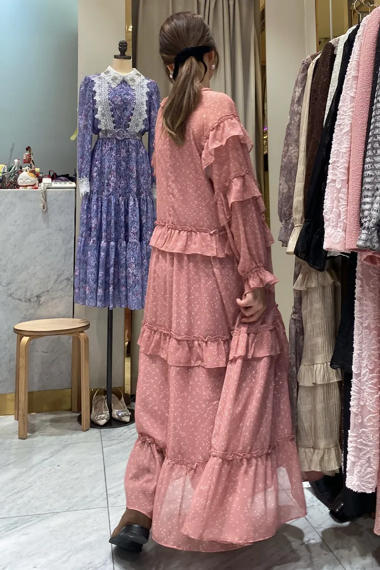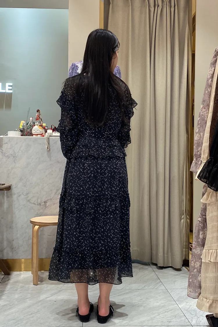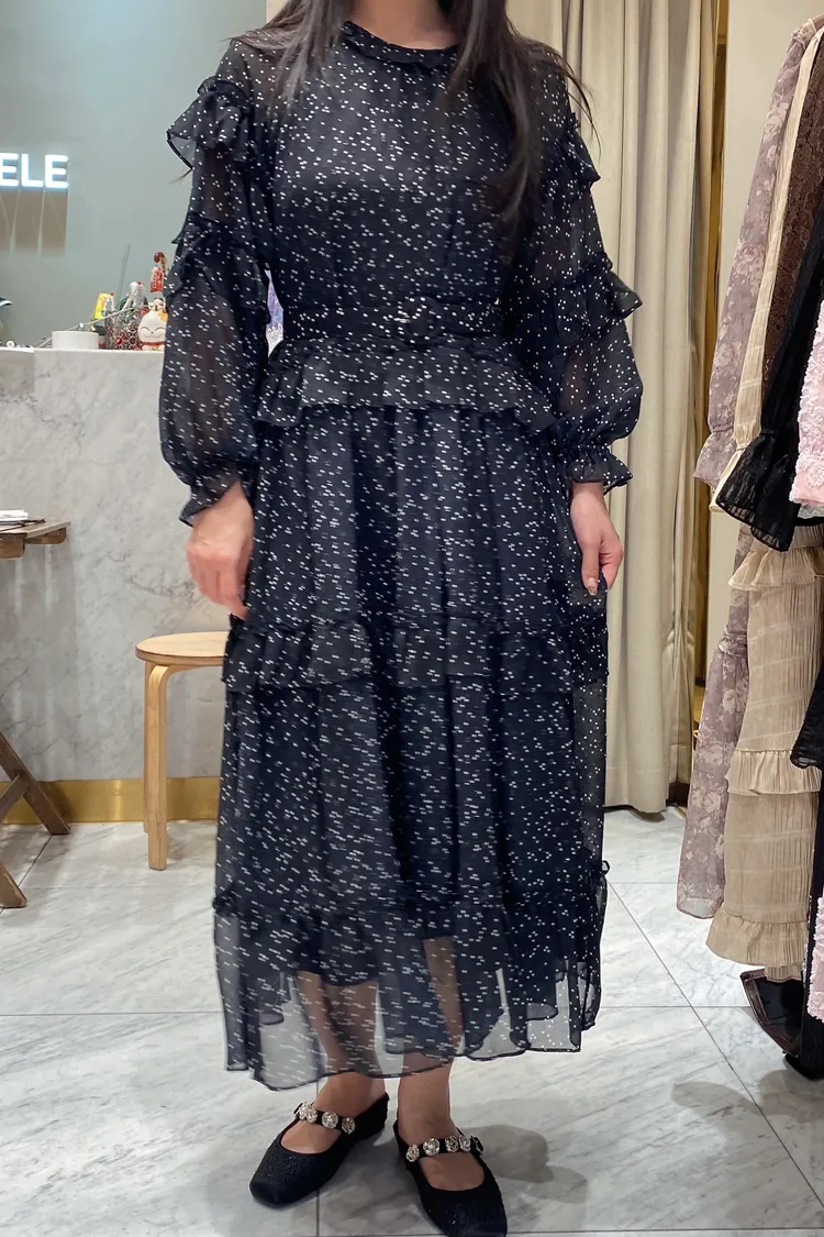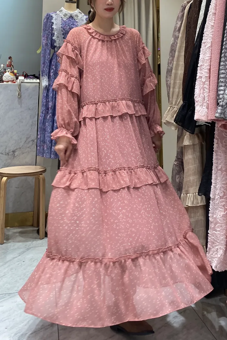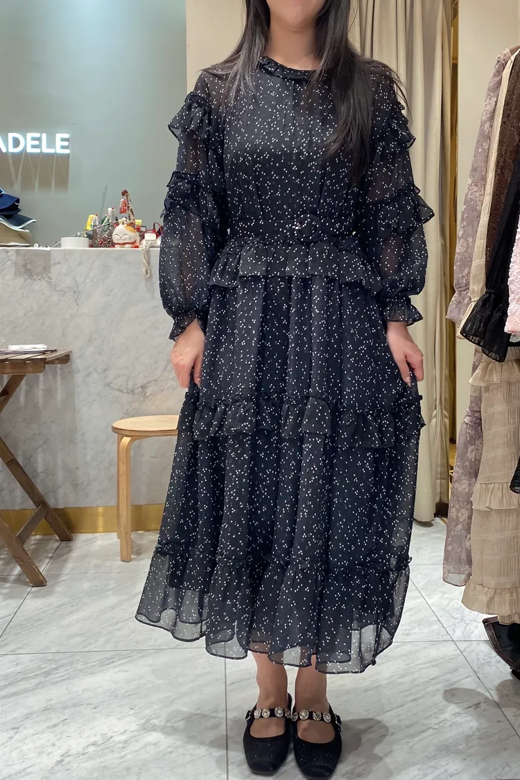 帶有閃閃繡線、水玉點點的雪紡料子,細節滿滿超有質感 領口、裙擺與袖口都拼接荷葉花邊 走動時微微晃動,仙氣滿分 娃娃洋寬鬆版型,S-L妞、孕媽咪都可以穿正常腰身設計 背面有拉鍊好穿脫、袖口彈性鬆緊、有內襯 穿上就像被小星光和花邊包圍的夢幻仙女艾蜜160公分穿到腳踝小幫手166公分穿到蓋小腿