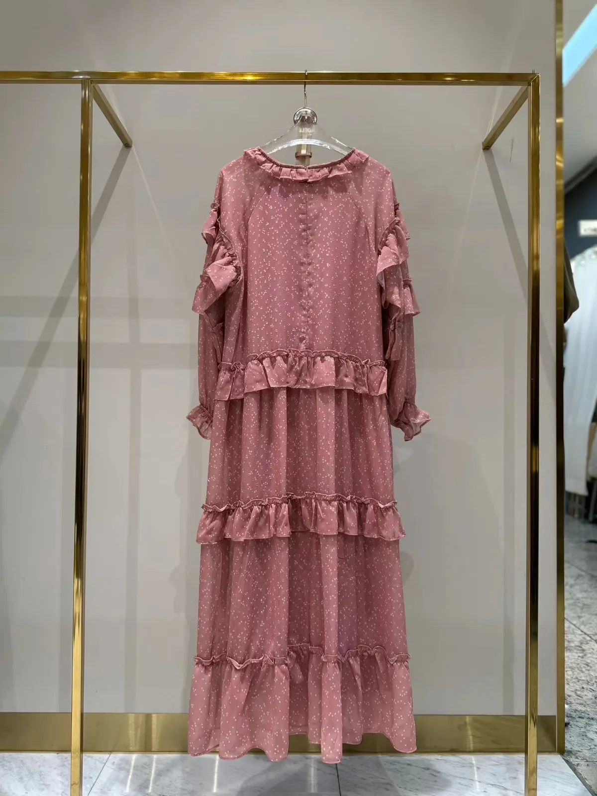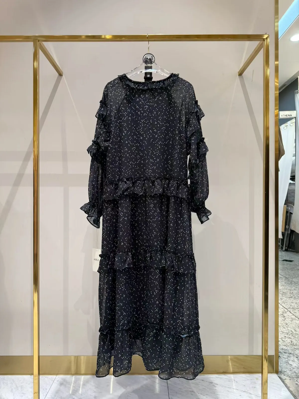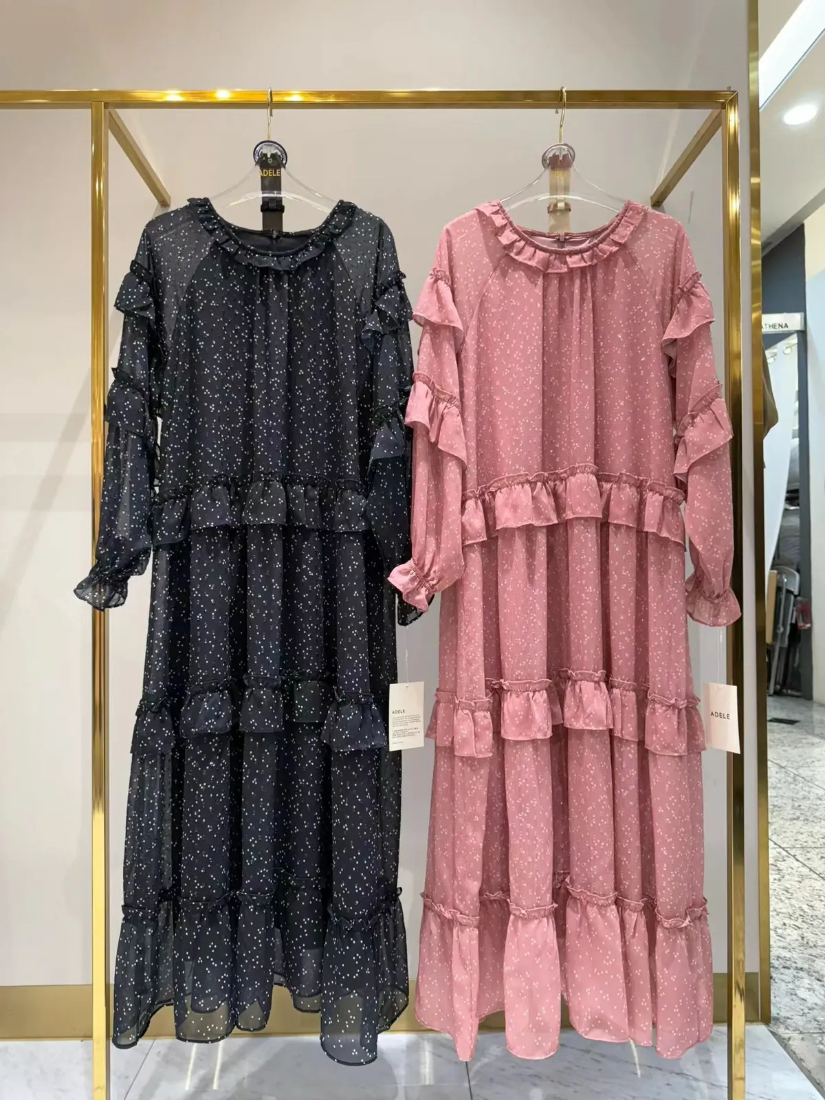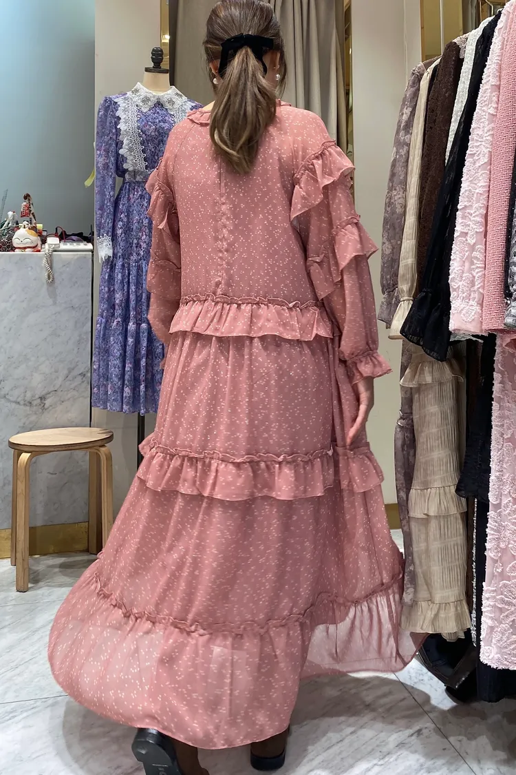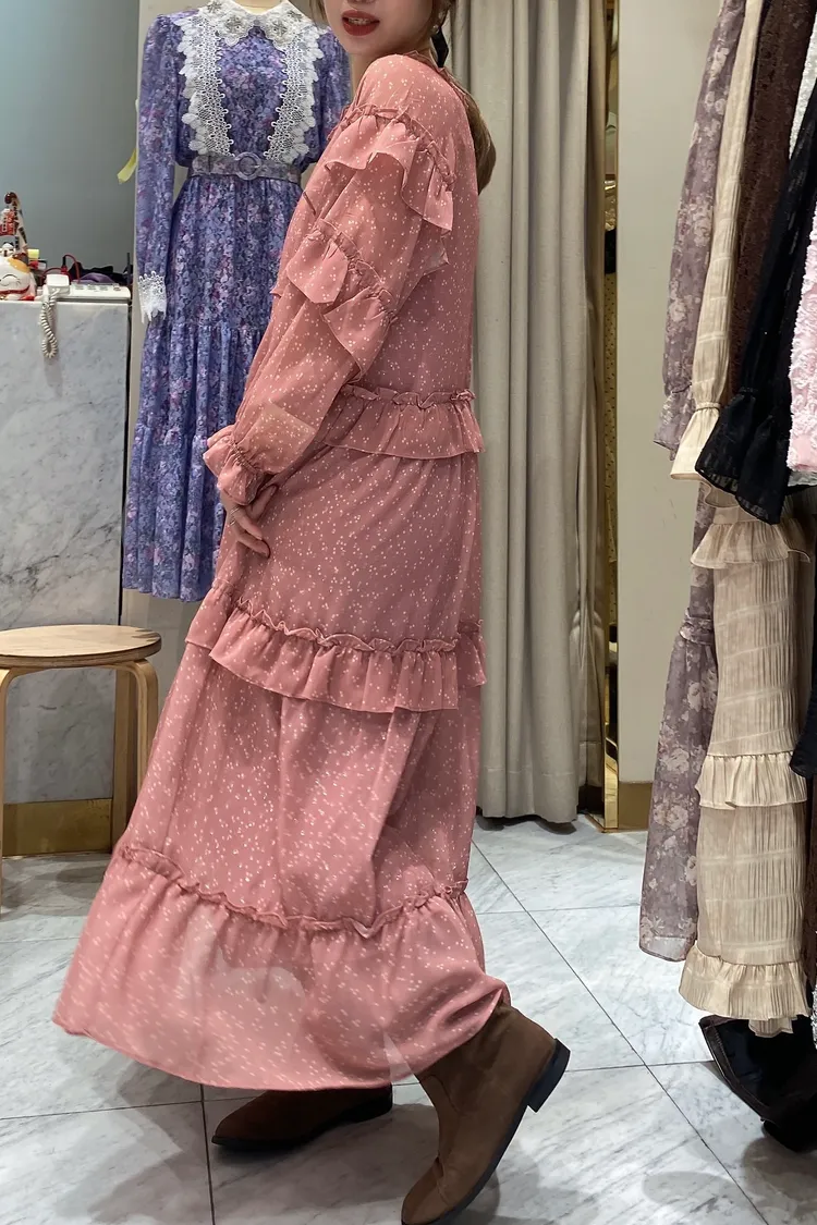 帶有閃閃繡線、水玉點點的雪紡料子,細節滿滿超有質感 領口、裙擺與袖口都拼接荷葉花邊 走動時微微晃動,仙氣滿分 娃娃洋寬鬆版型,S-L妞、孕媽咪都可以穿正常腰身設計 背面有拉鍊好穿脫、袖口彈性鬆緊、有內襯 穿上就像被小星光和花邊包圍的夢幻仙女艾蜜160公分穿到腳踝小幫手166公分穿到蓋小腿