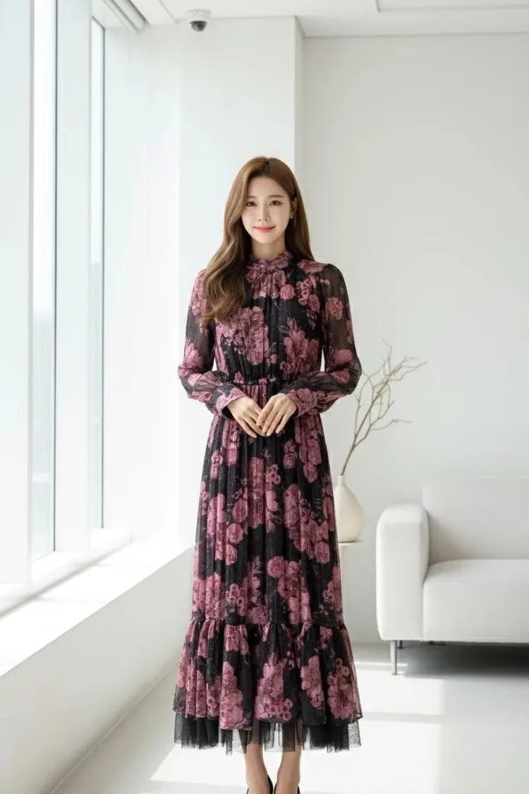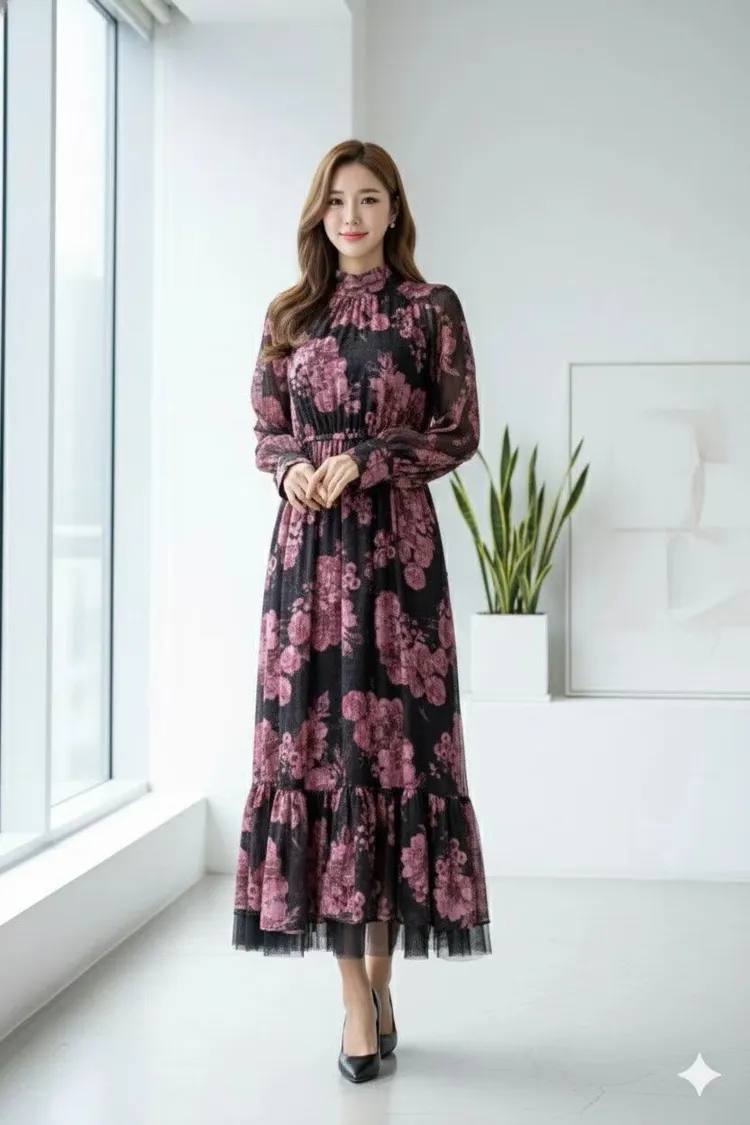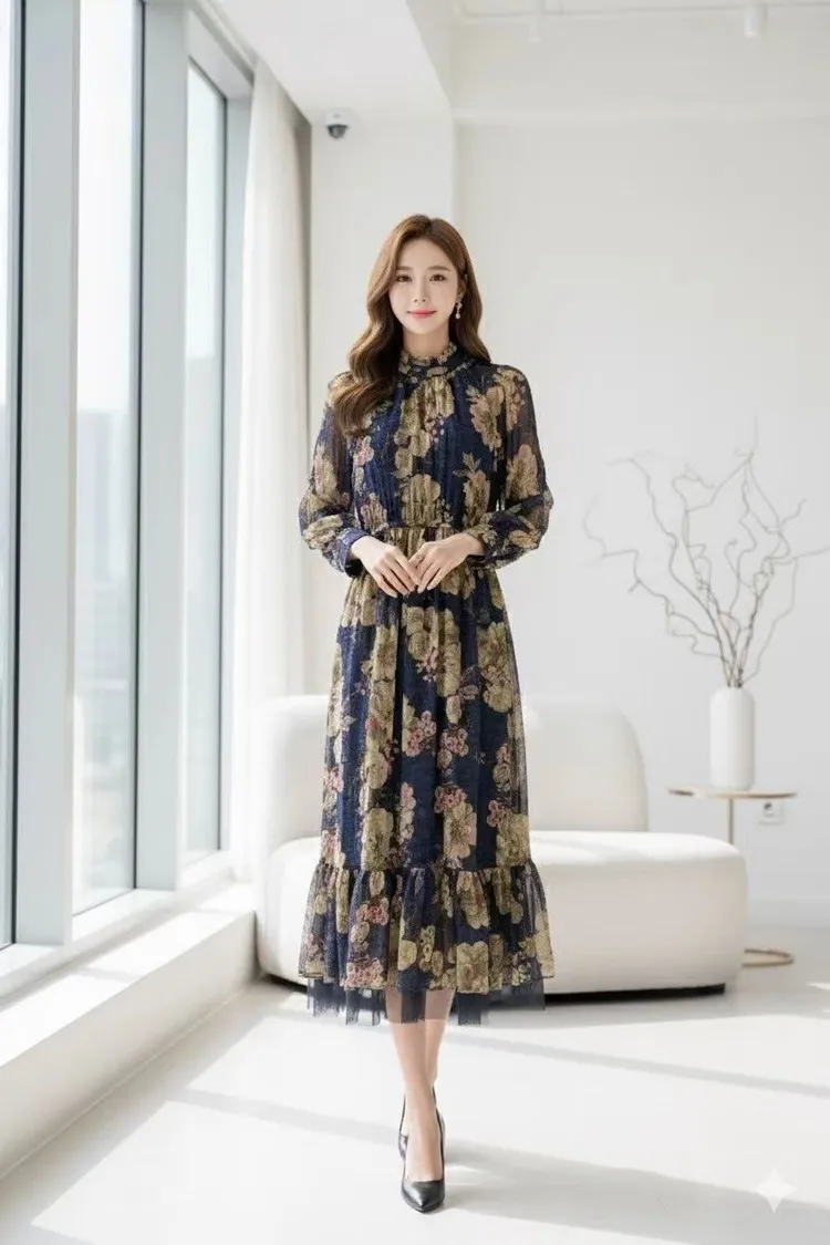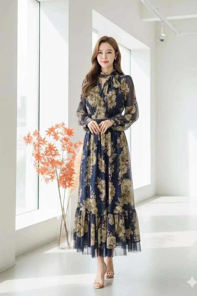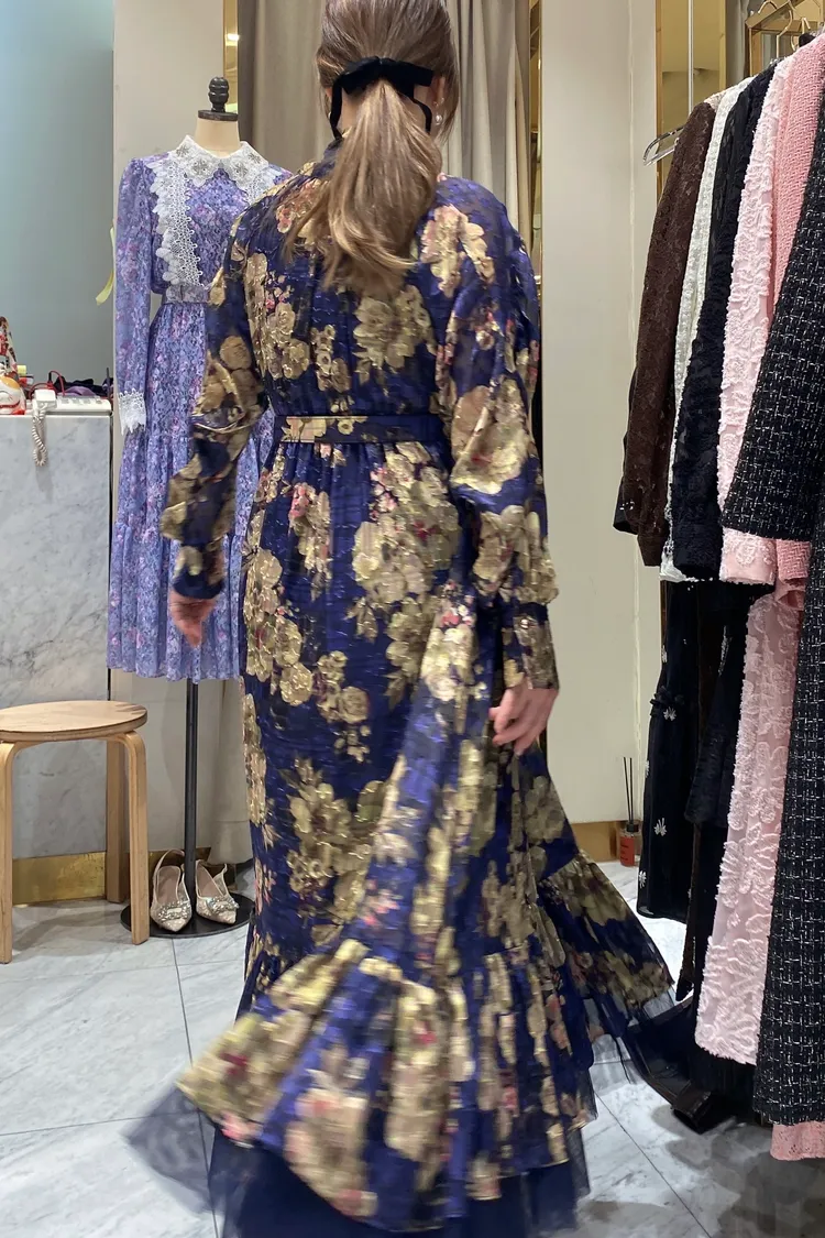 帶珠光感的重工緹花絲質面料高級又有質感 正反兩穿,蝴蝶結穿在正面OK、穿在背面也很優雅 胸下高腰設計、腰部整圈彈性鬆緊,S-L妞都可以穿手袖有珍珠釦 裙擺有網紗層次拼接增添浪漫飄逸感、有內襯艾蜜160公分穿到腳踝小幫手166公分穿到小腿