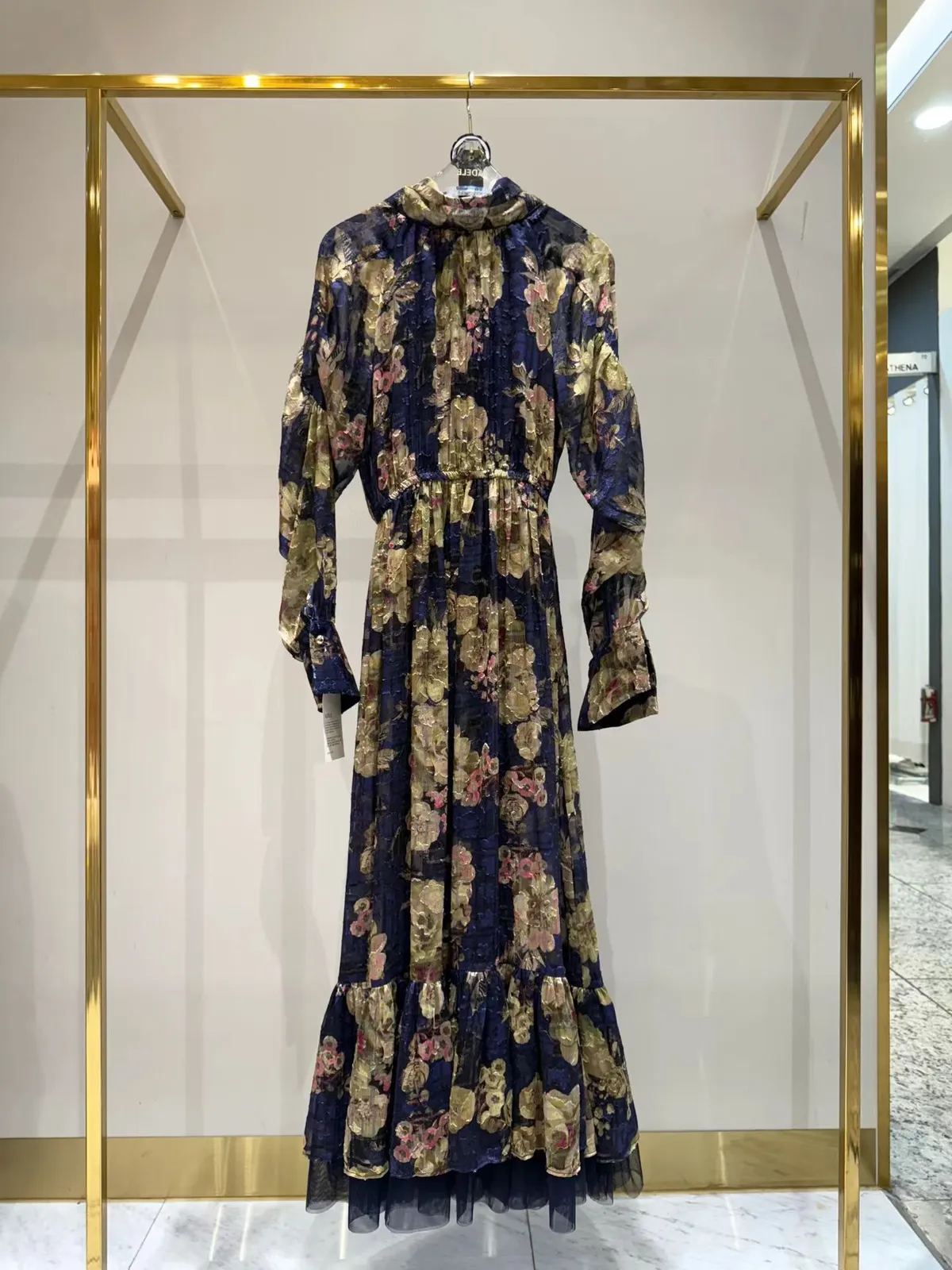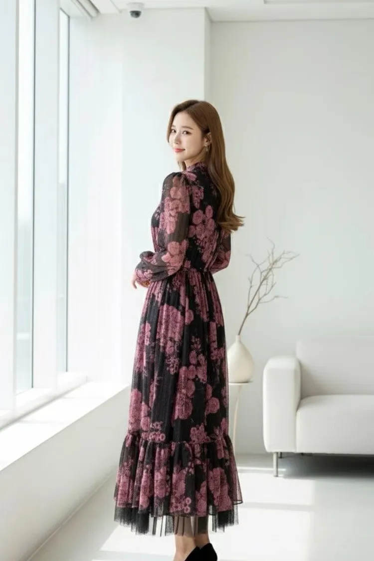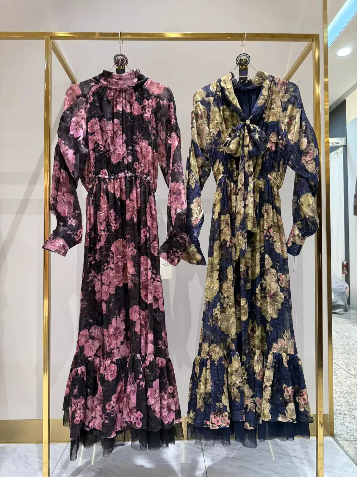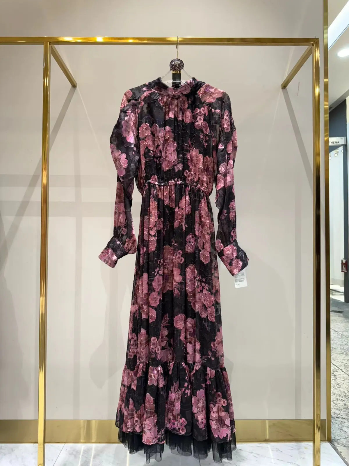 帶珠光感的重工緹花絲質面料高級又有質感 正反兩穿,蝴蝶結穿在正面OK、穿在背面也很優雅 胸下高腰設計、腰部整圈彈性鬆緊,S-L妞都可以穿手袖有珍珠釦 裙擺有網紗層次拼接增添浪漫飄逸感、有內襯艾蜜160公分穿到腳踝小幫手166公分穿到小腿